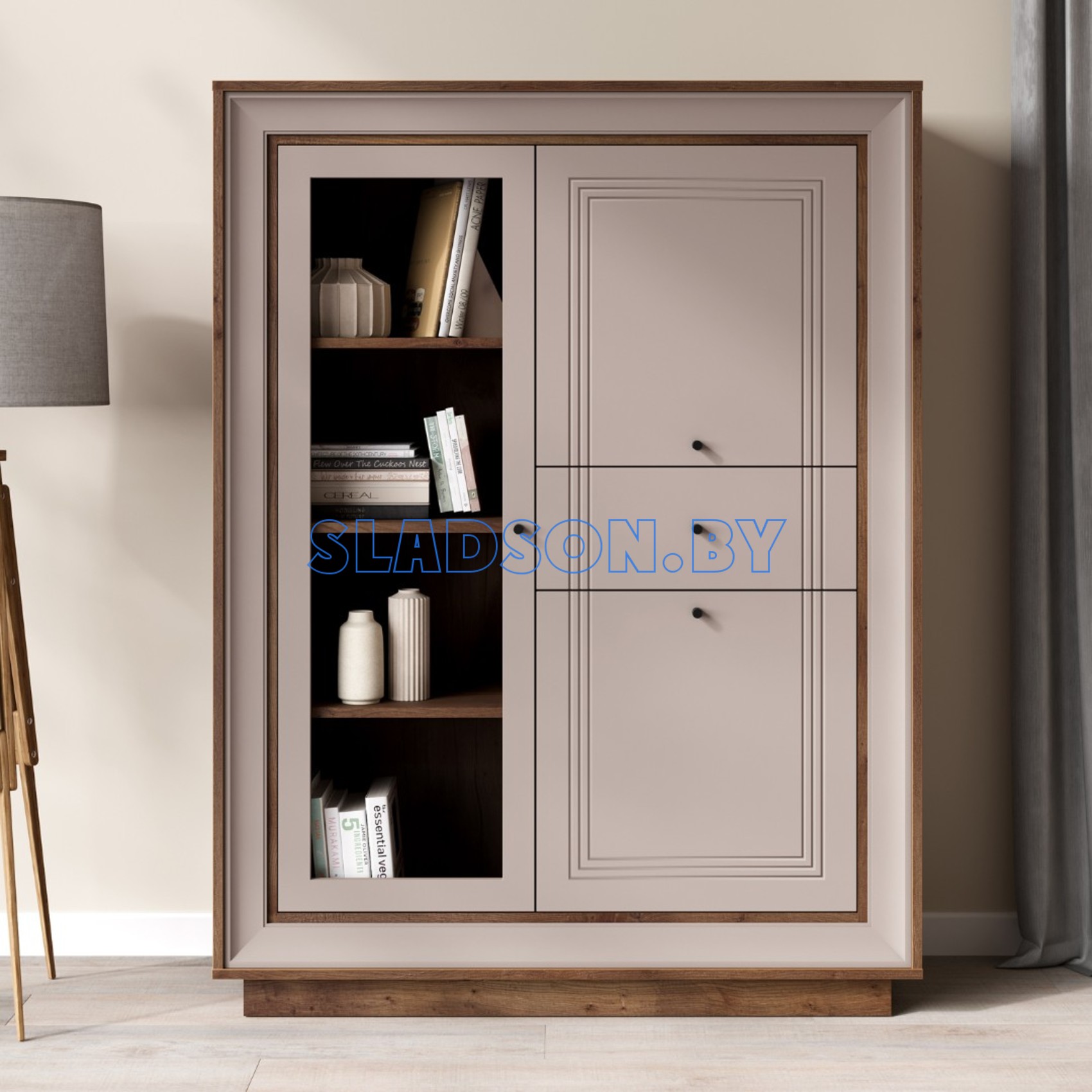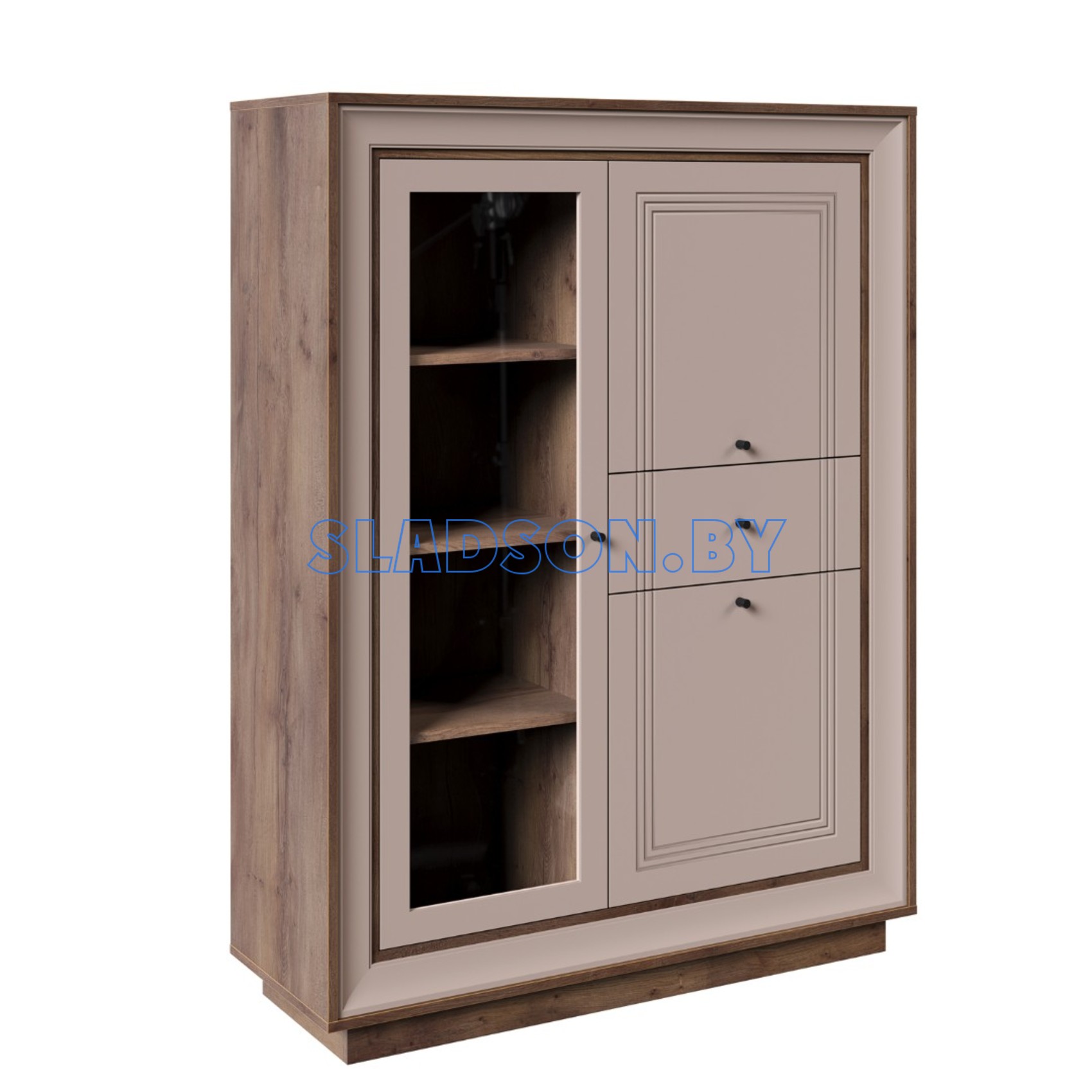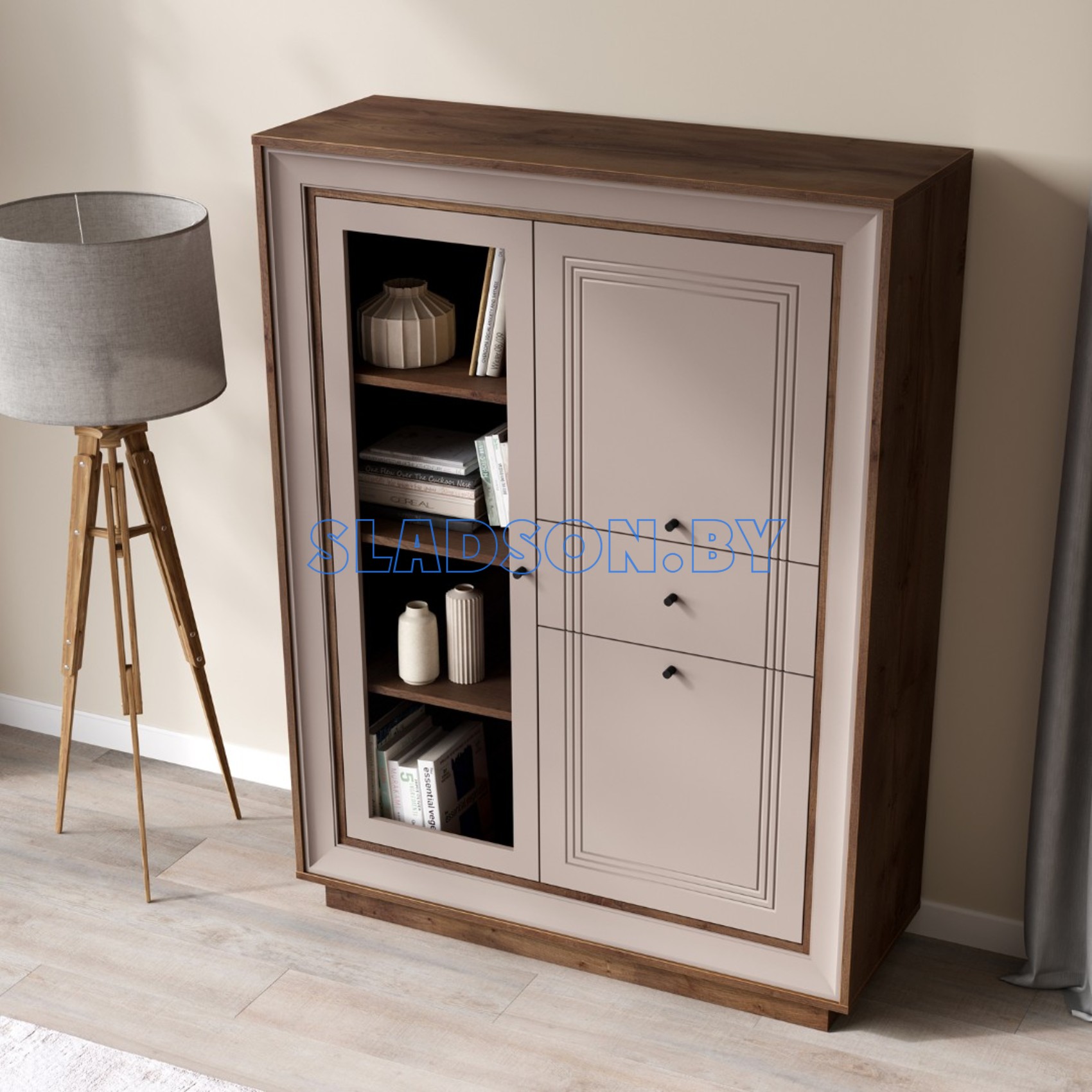 ПРАТО гостиная Пенал низкий (1 стеклодверь) Таксония шоколадная, Кофе с молоком