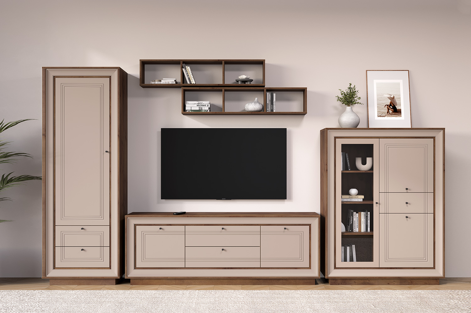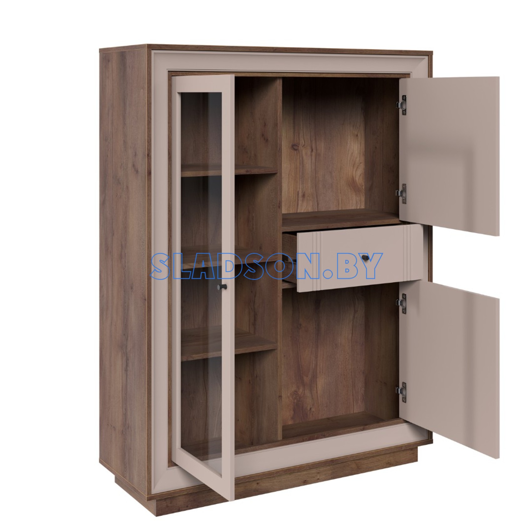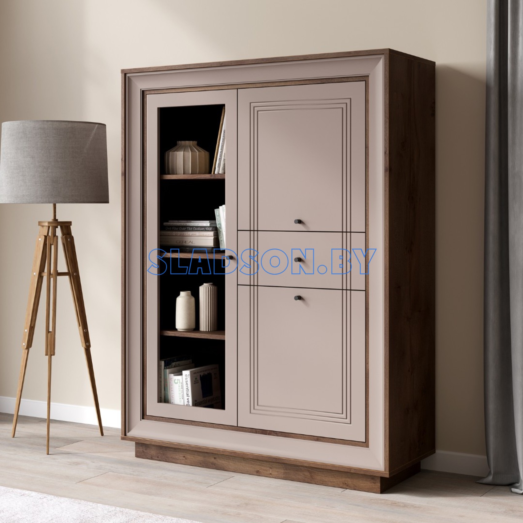 ПРАТО гостиная Пенал низкий (1 стеклодверь) Таксония шоколадная, Кофе с молоком