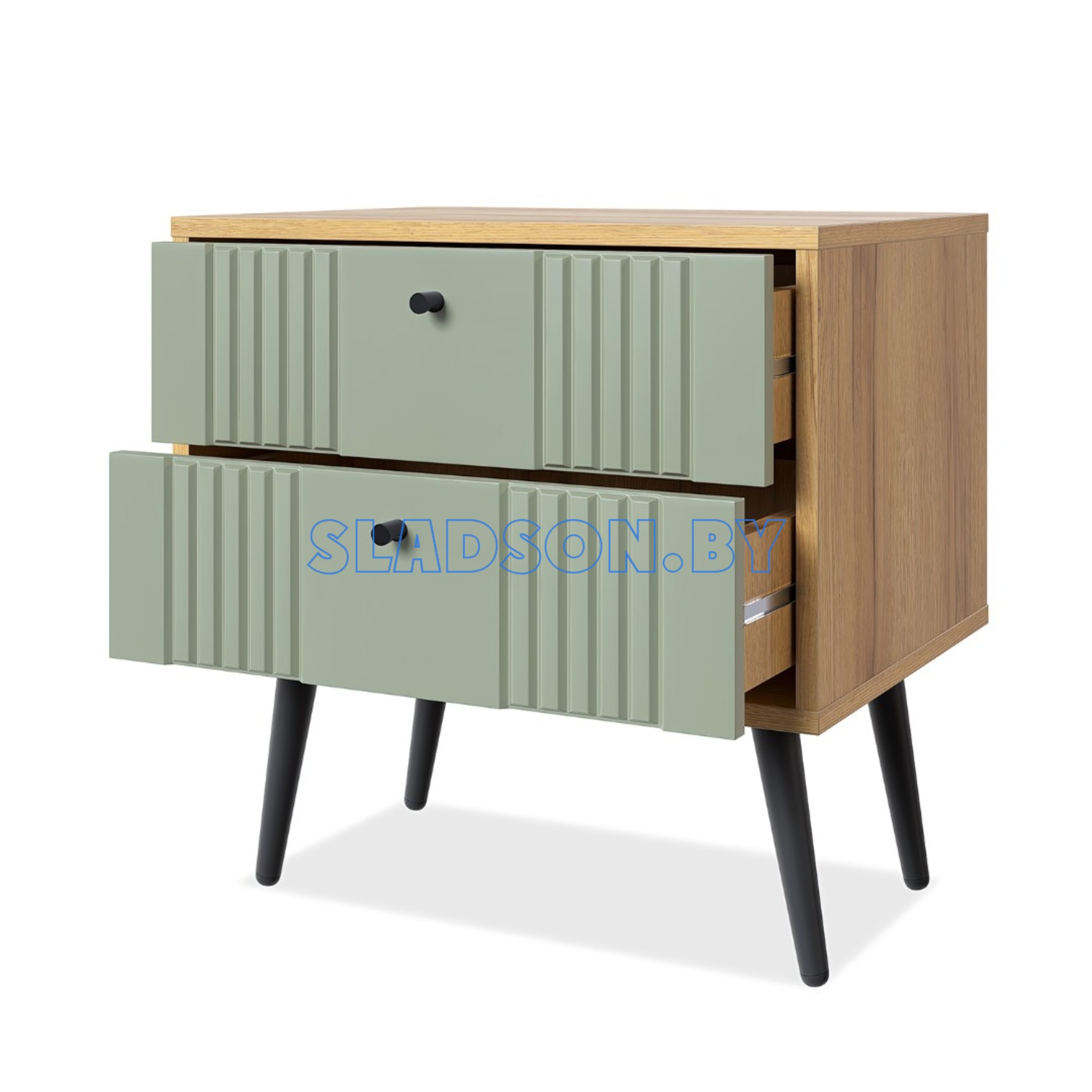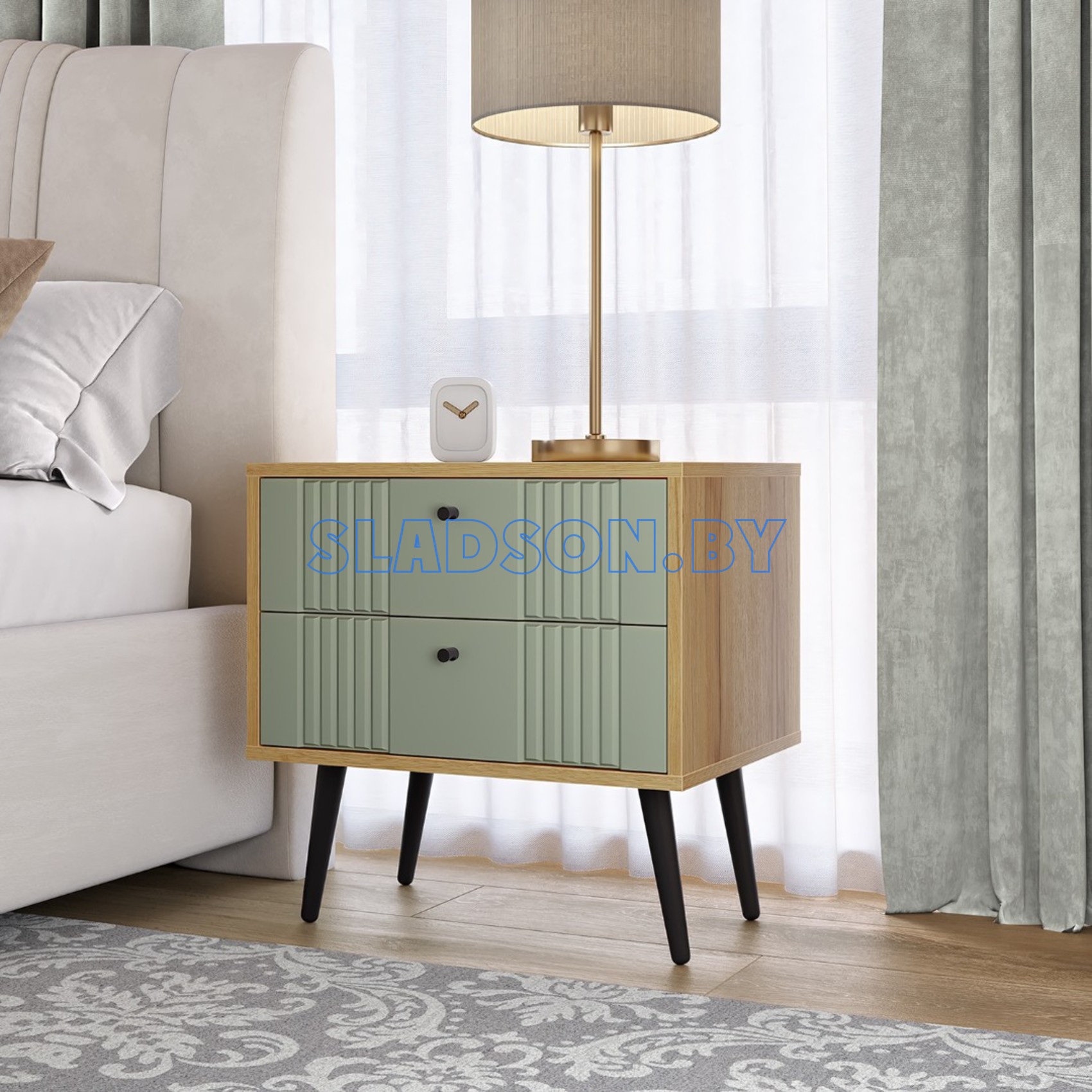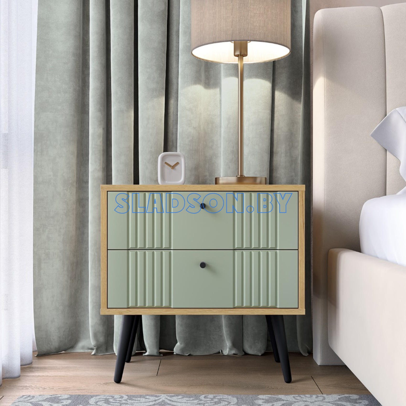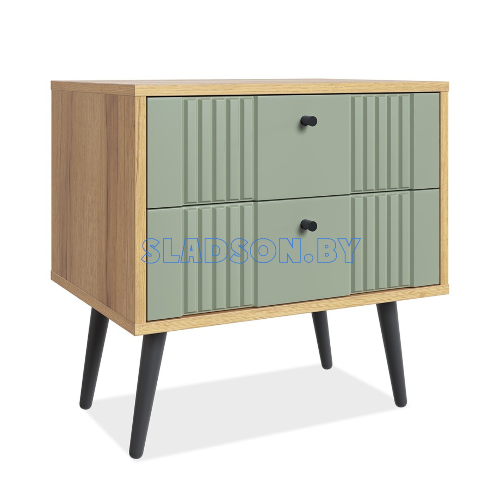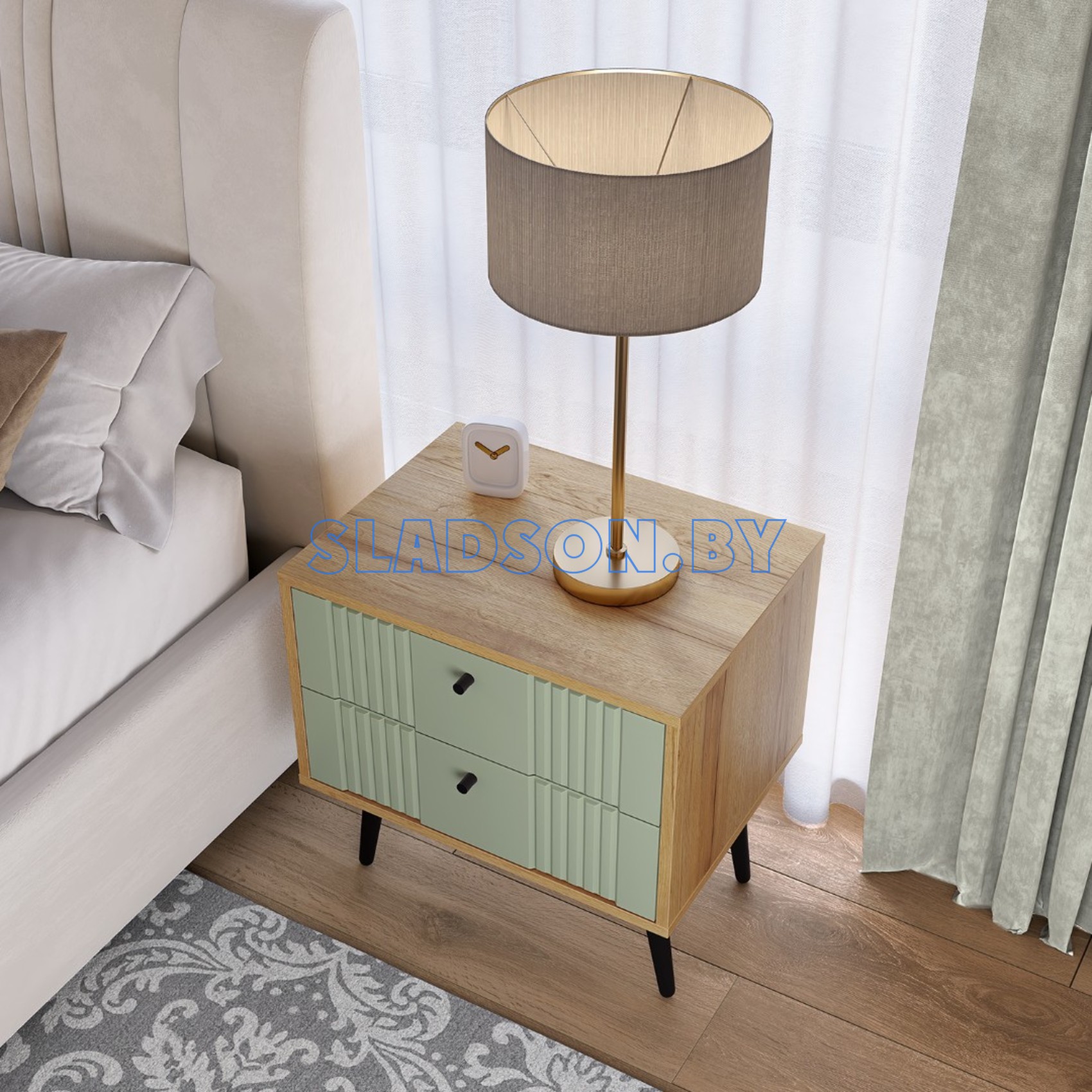 ВЕГА САКСОНИЯ спальня Тумба прикроватная Дуб золотой Крафт, Серо-зеленый