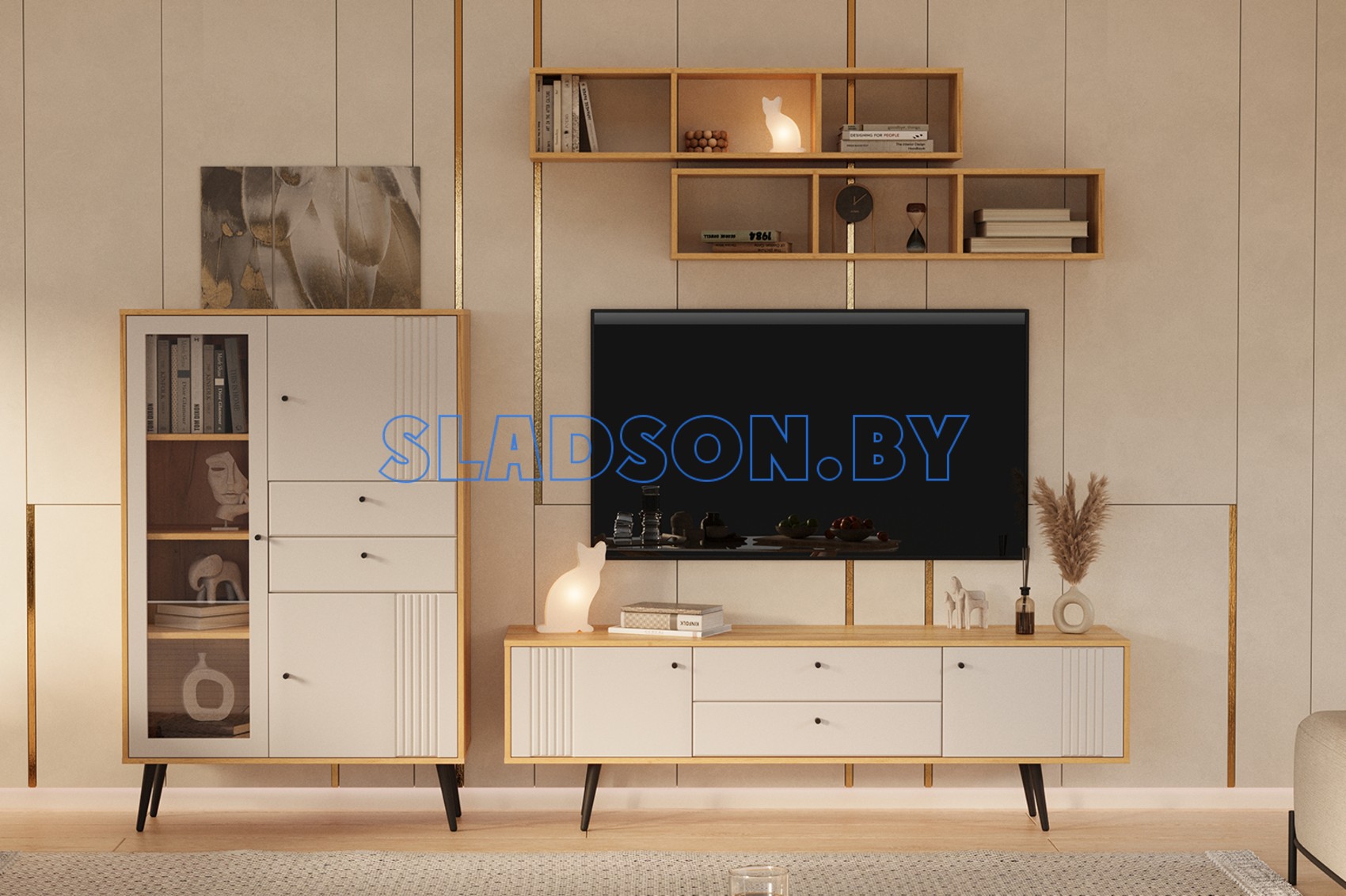 Комод «Вега Саксония» идеально впишется в интерьер современной гостиной, гармонично сочетая в себе черты классического буфета для посуды и современного серванта в гостиную.
