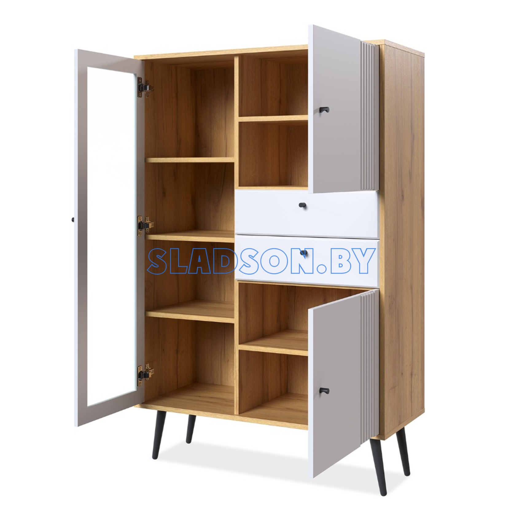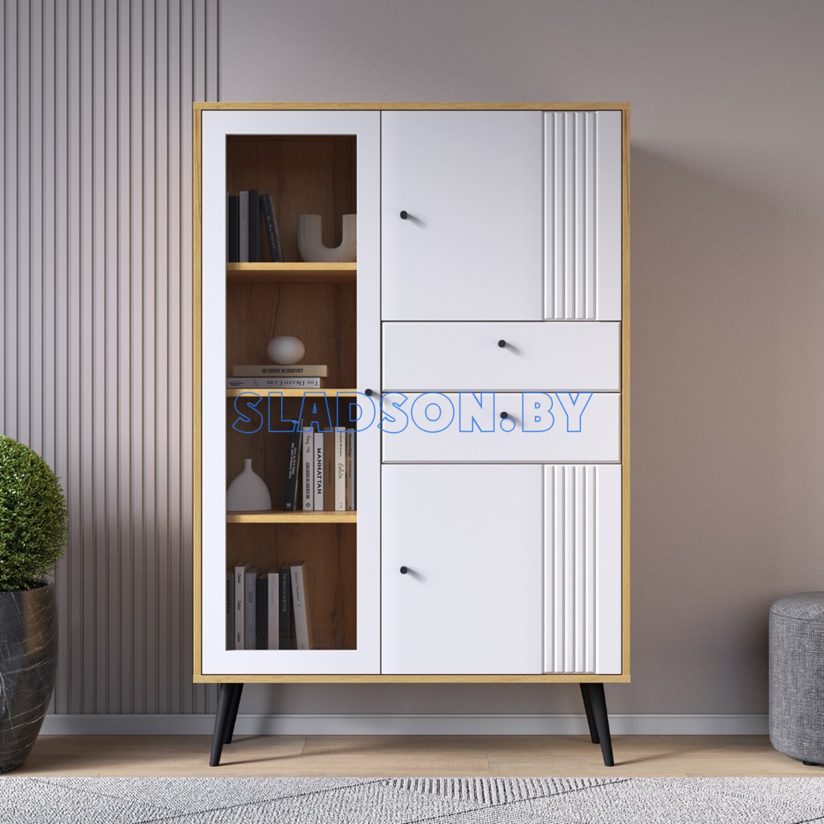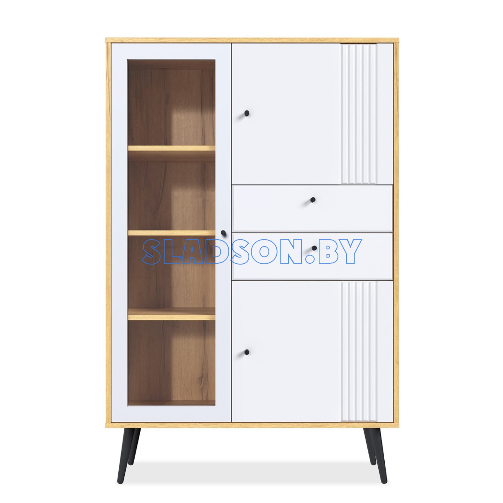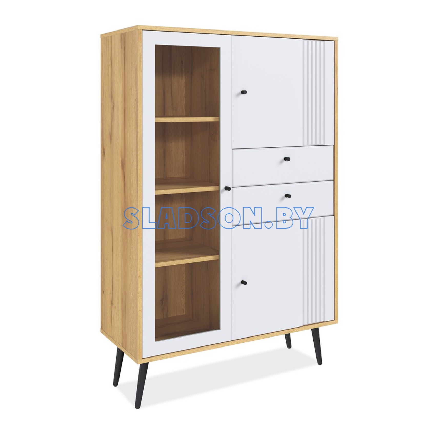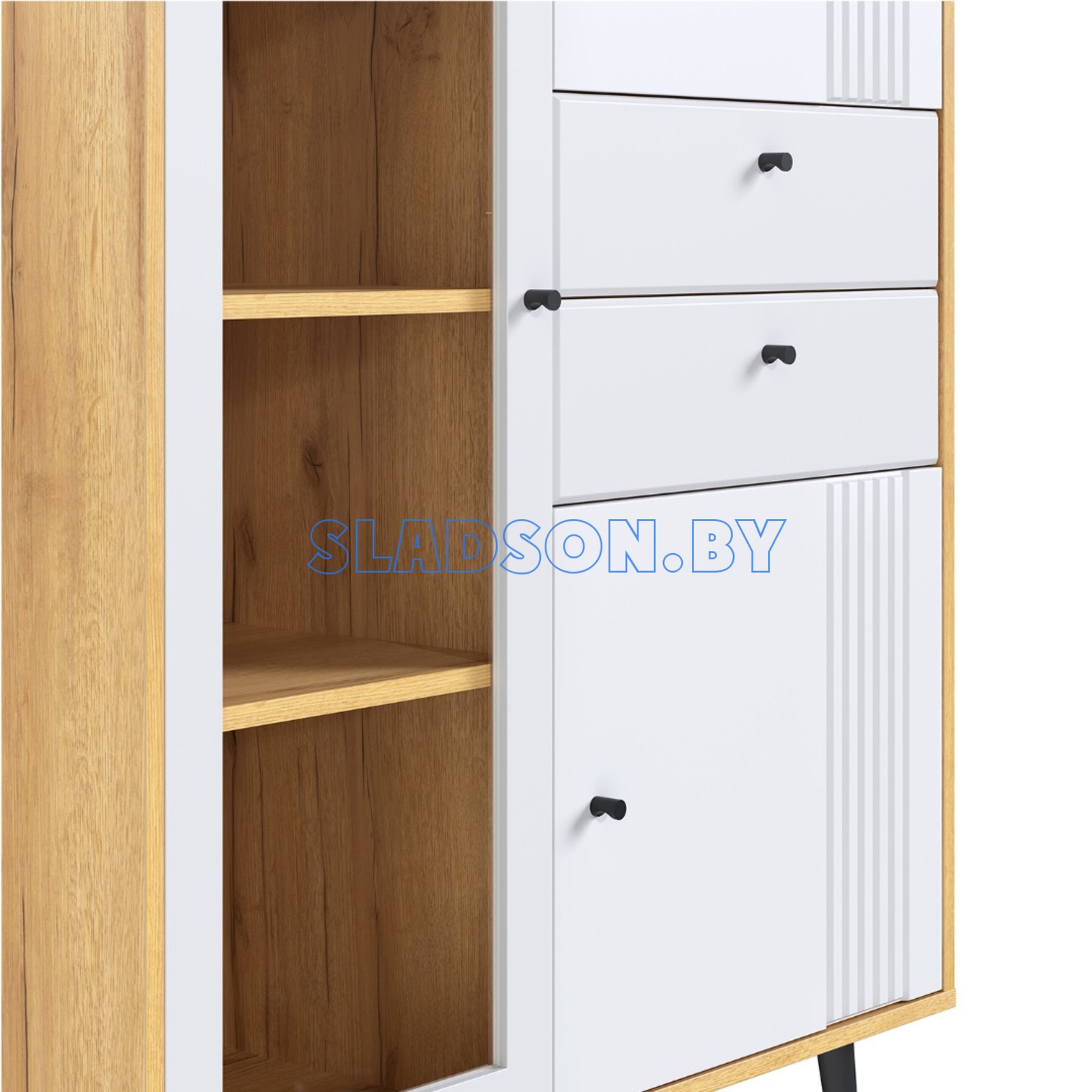 ВЕГА САКСОНИЯ гостиная Комод высокий 1в2дв2ящ Дуб золотой Крафт, Миндаль