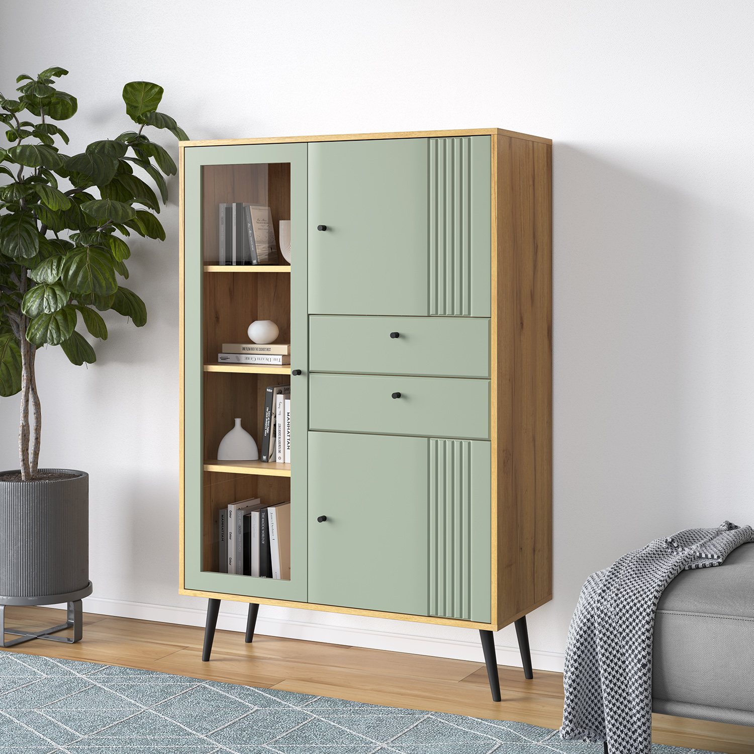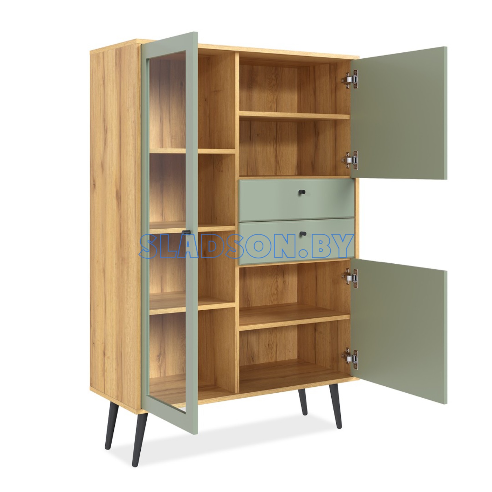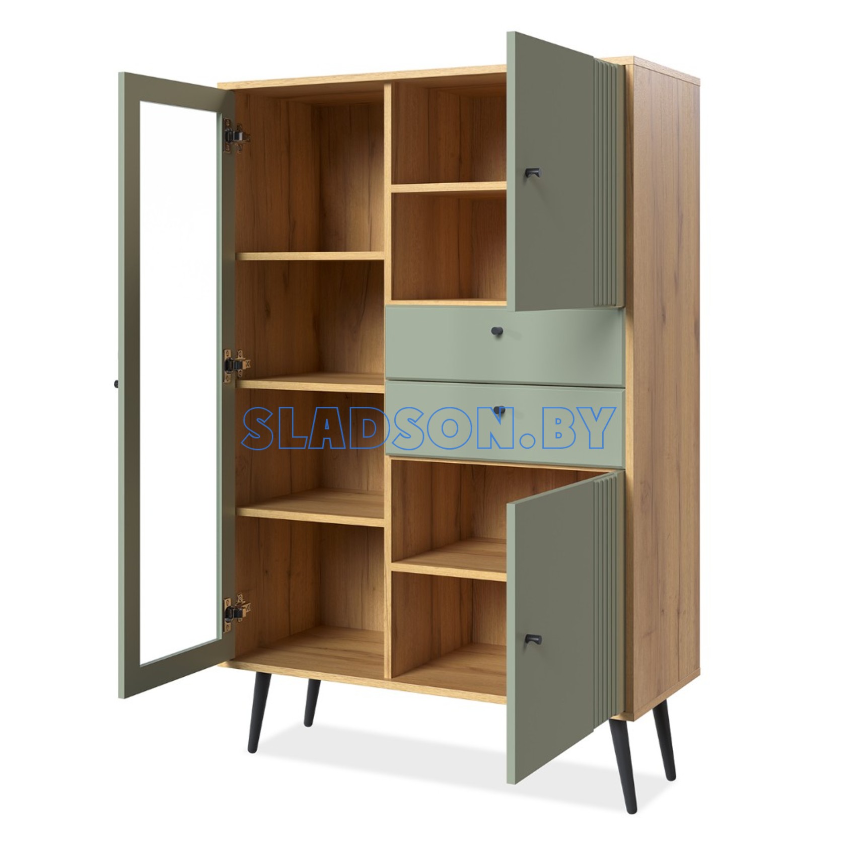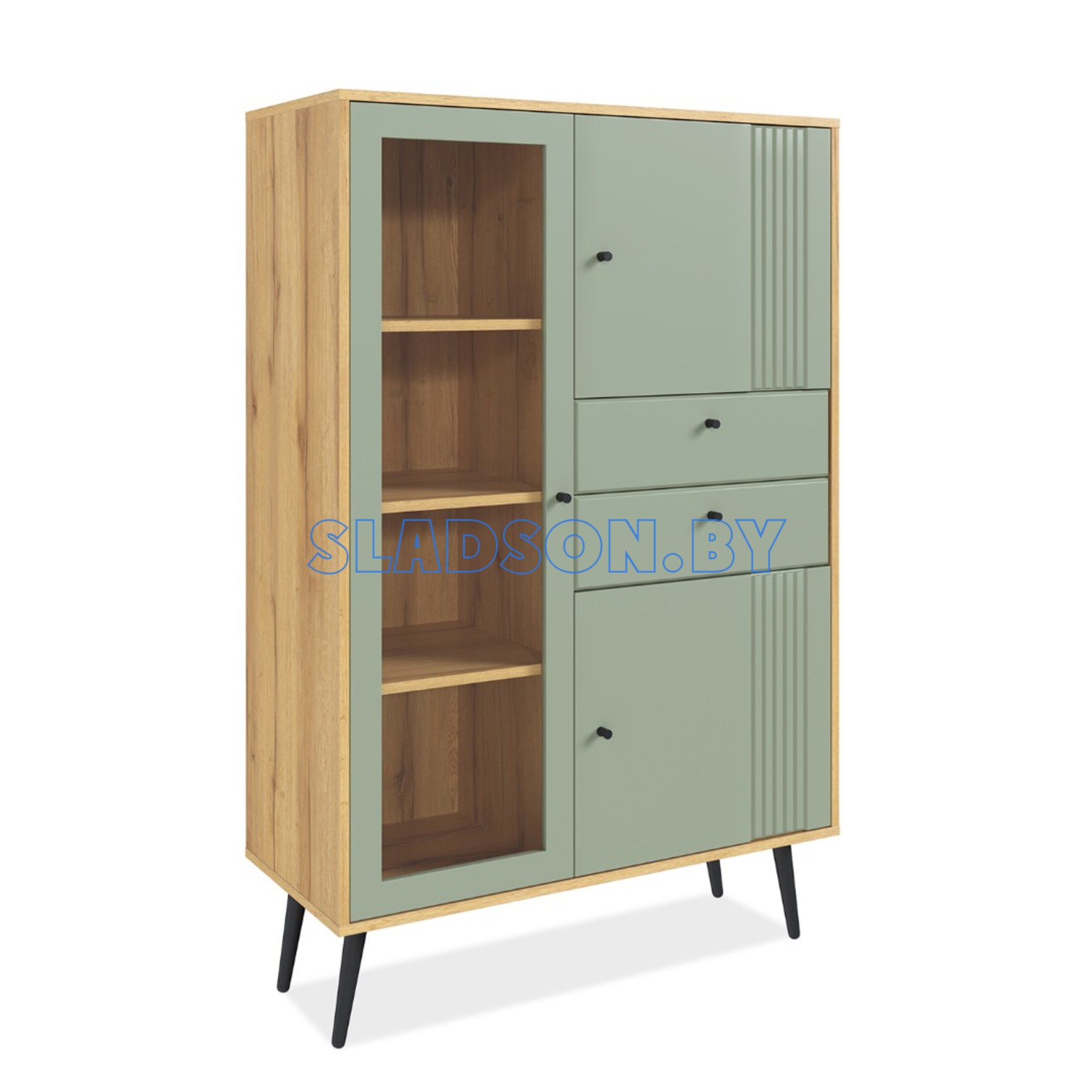 ВЕГА САКСОНИЯ гостиная Комод высокий 1в2дв2ящ Дуб золотой Крафт, Серо-зеленый