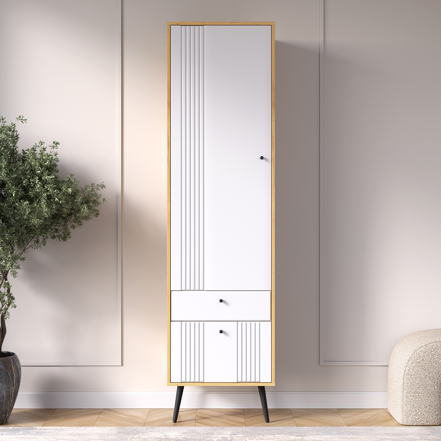 Пенал «Вега Саксония» – это стильное и функциональное решение для хранения одежды и аксессуаров в любом помещении вашего дома, будь то спальня, прихожая или гостиная. Пенал оснащен надежными распашными дверцами, практичными полками из ЛДСП, удобным выдвижным ящиком для размещения различных мелочей или белья. Петли дверей для вашего комфорта оснащены доводчиком, а металлические ножки имеют высоту 20 см, благодаря чему уборка в доме не составит труда.