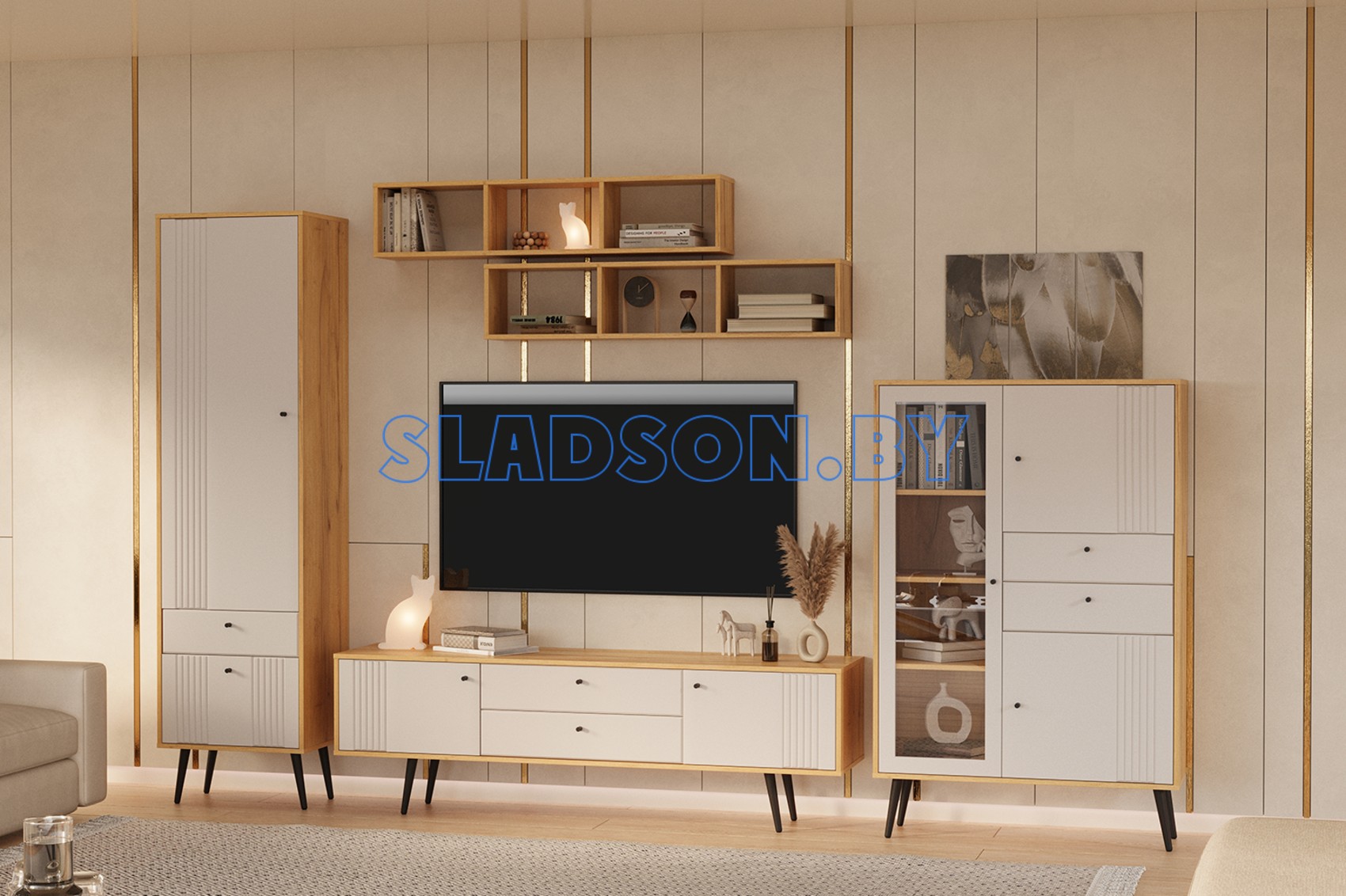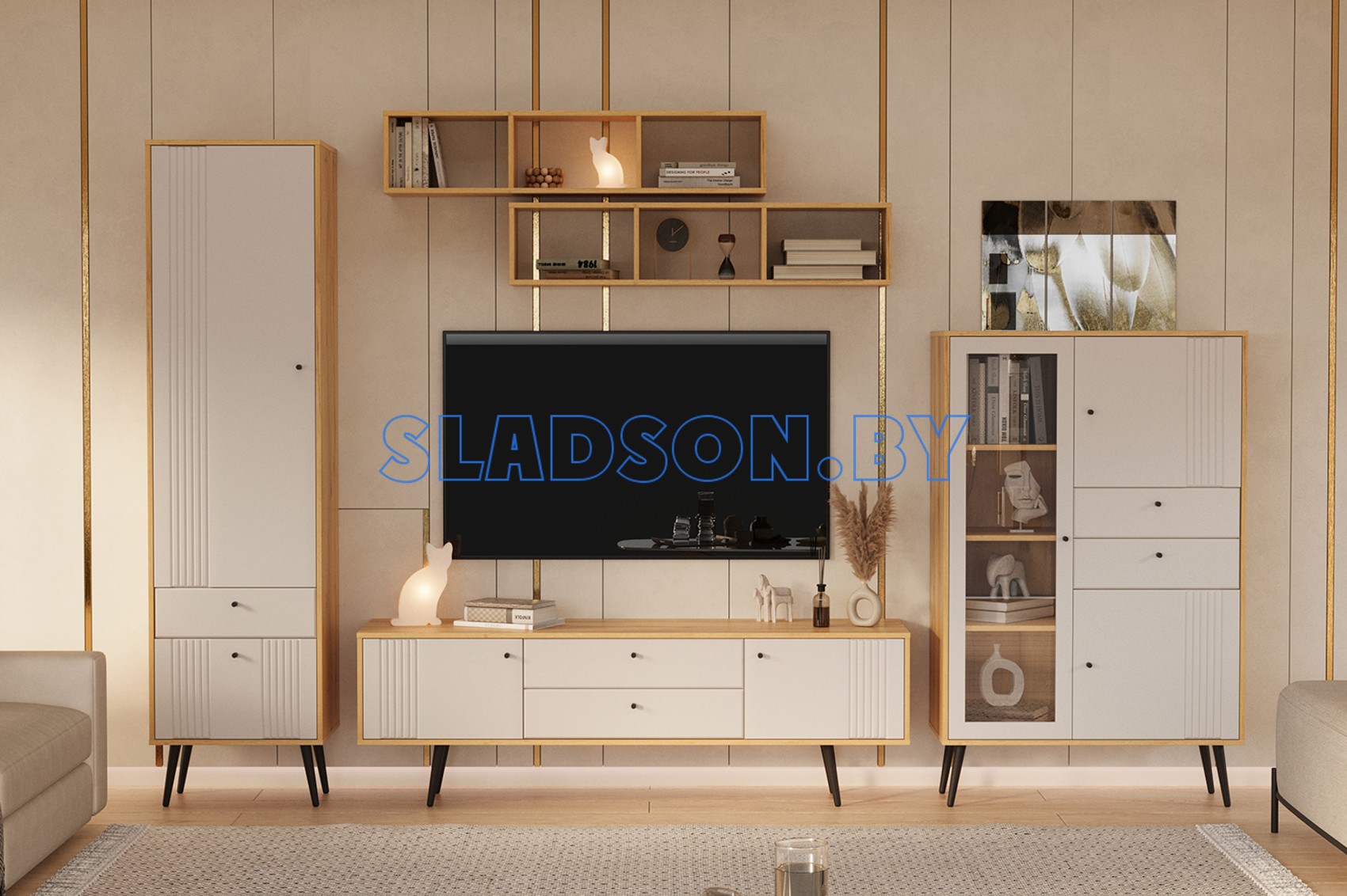ВЕГА САКСОНИЯ гостиная Пенал Дуб золотой Крафт, Миндаль