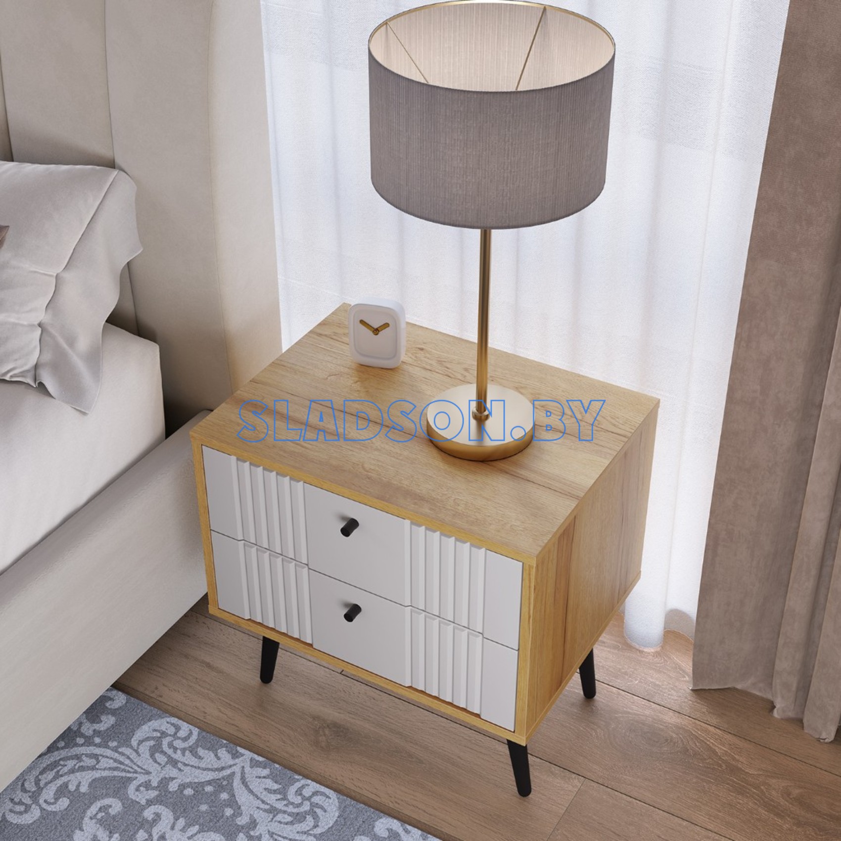 ВЕГА САКСОНИЯ спальня Тумба прикроватная Дуб золотой Крафт, Миндаль