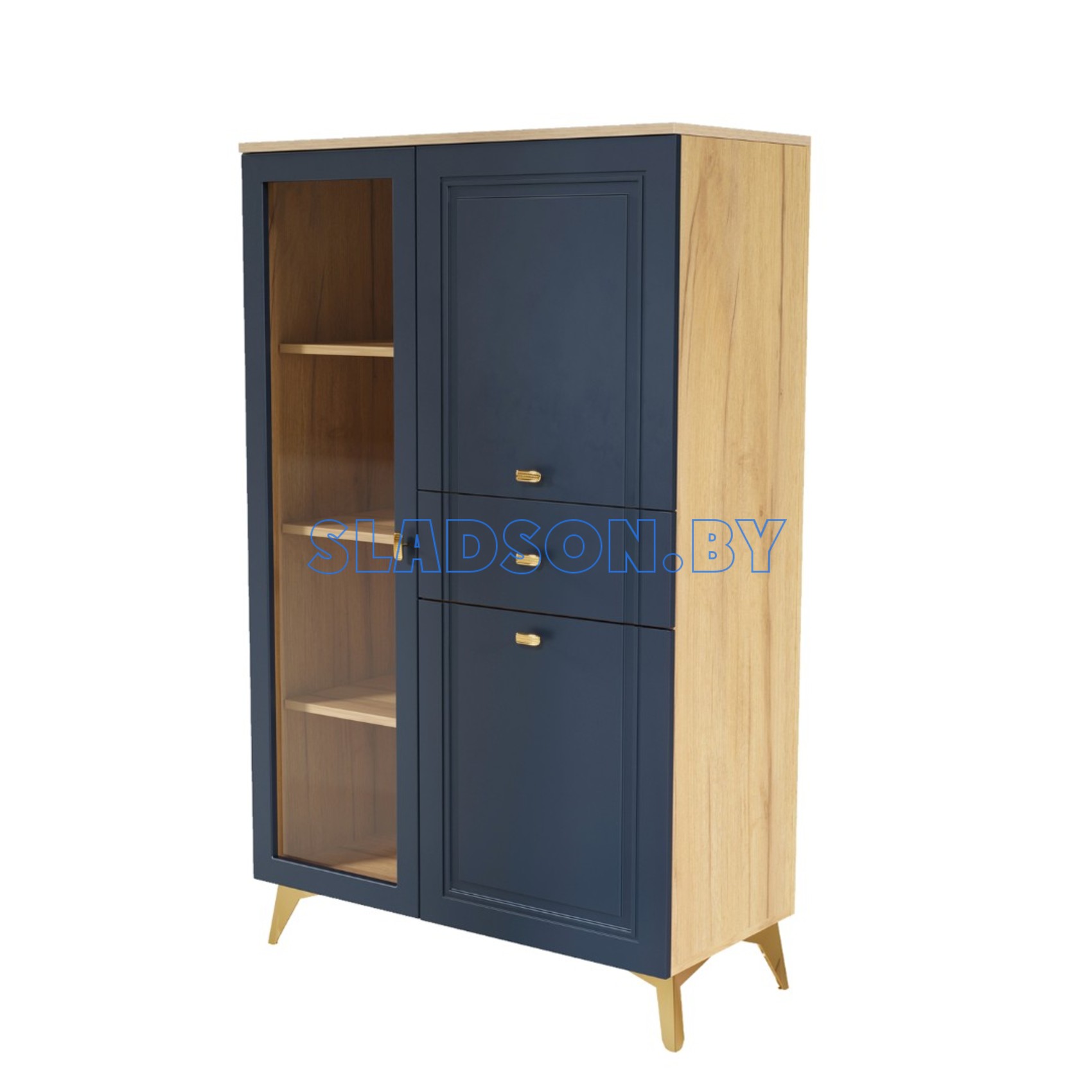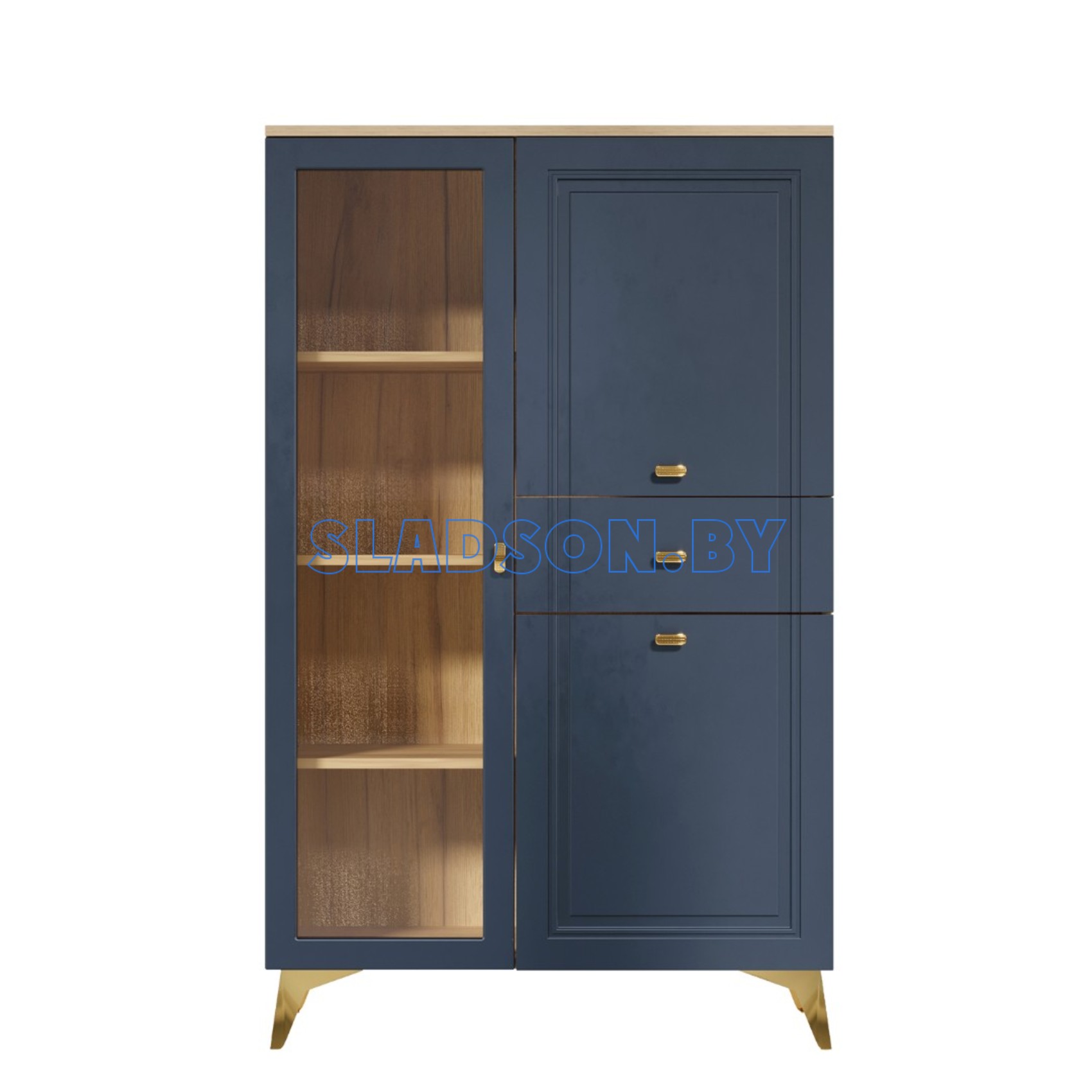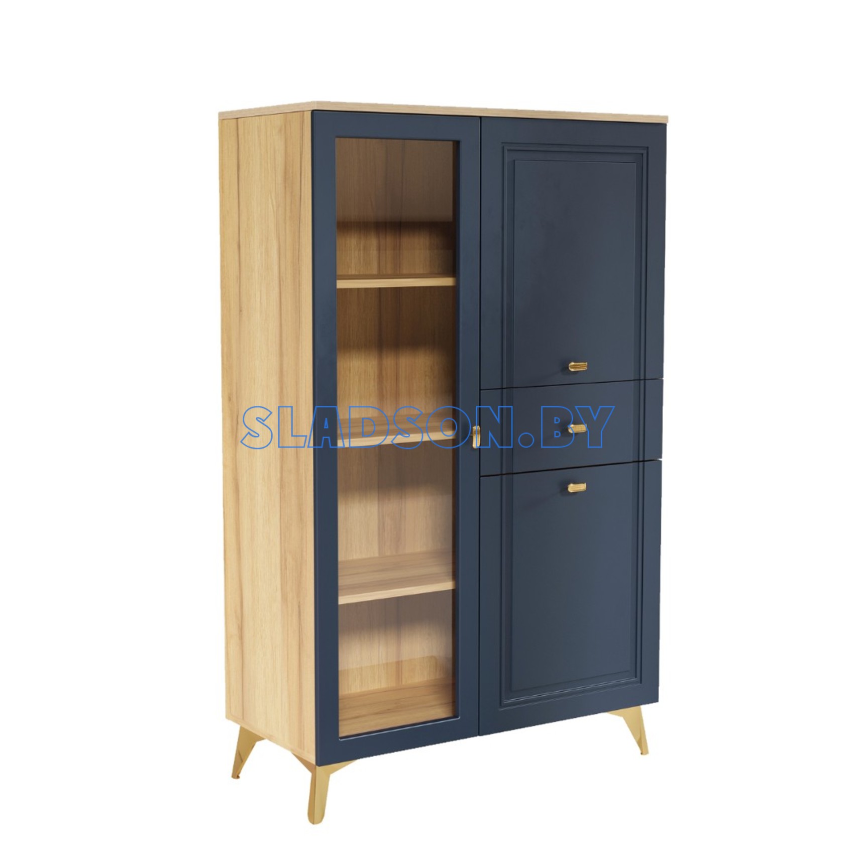 ВЕГА САПФИР гостиная Комод высокий 1в2дв1ящ Дуб золотистый, Темно-синий софт
