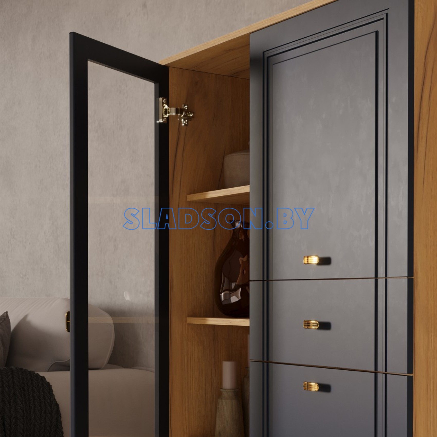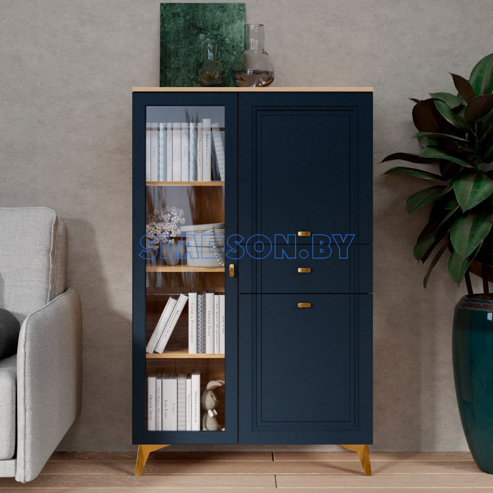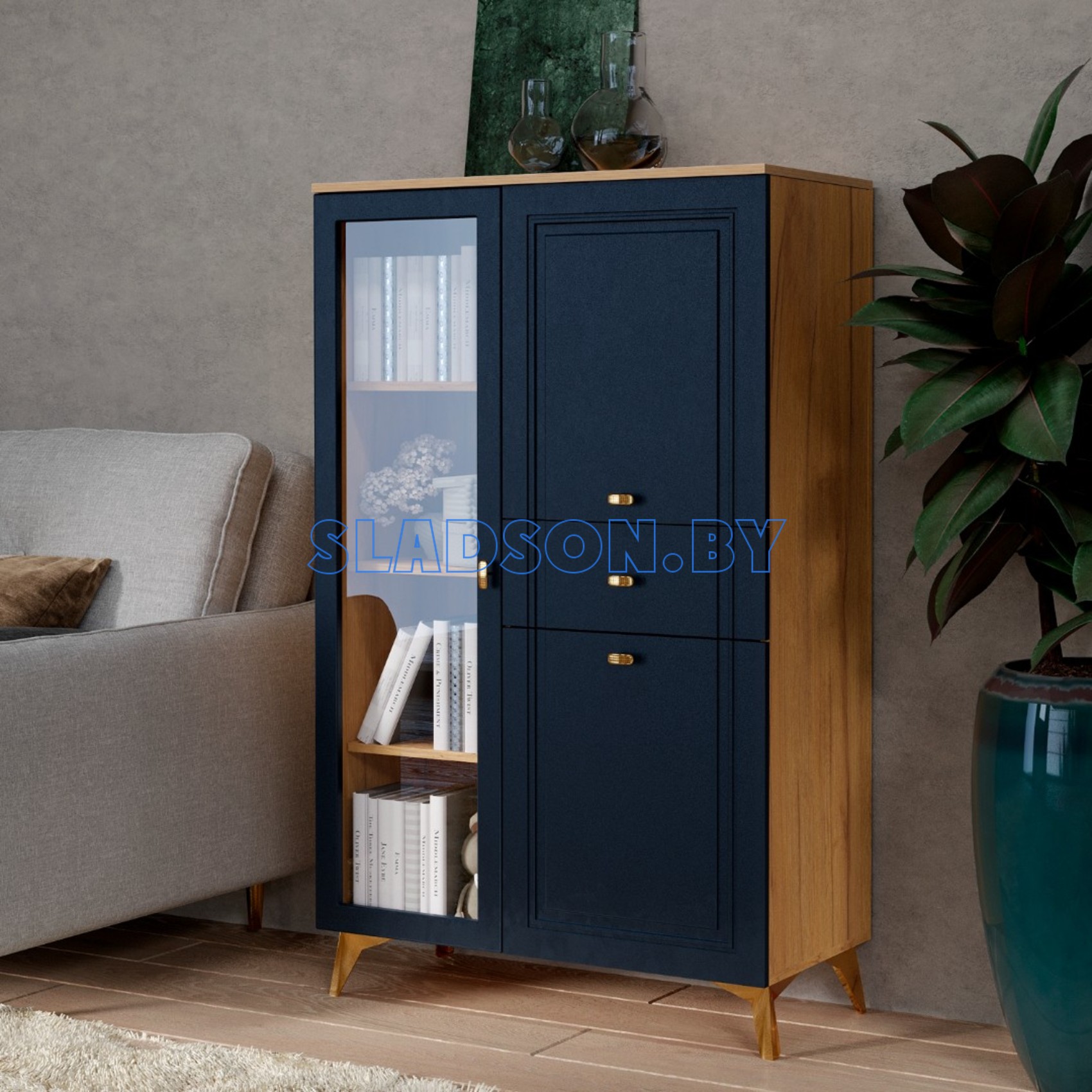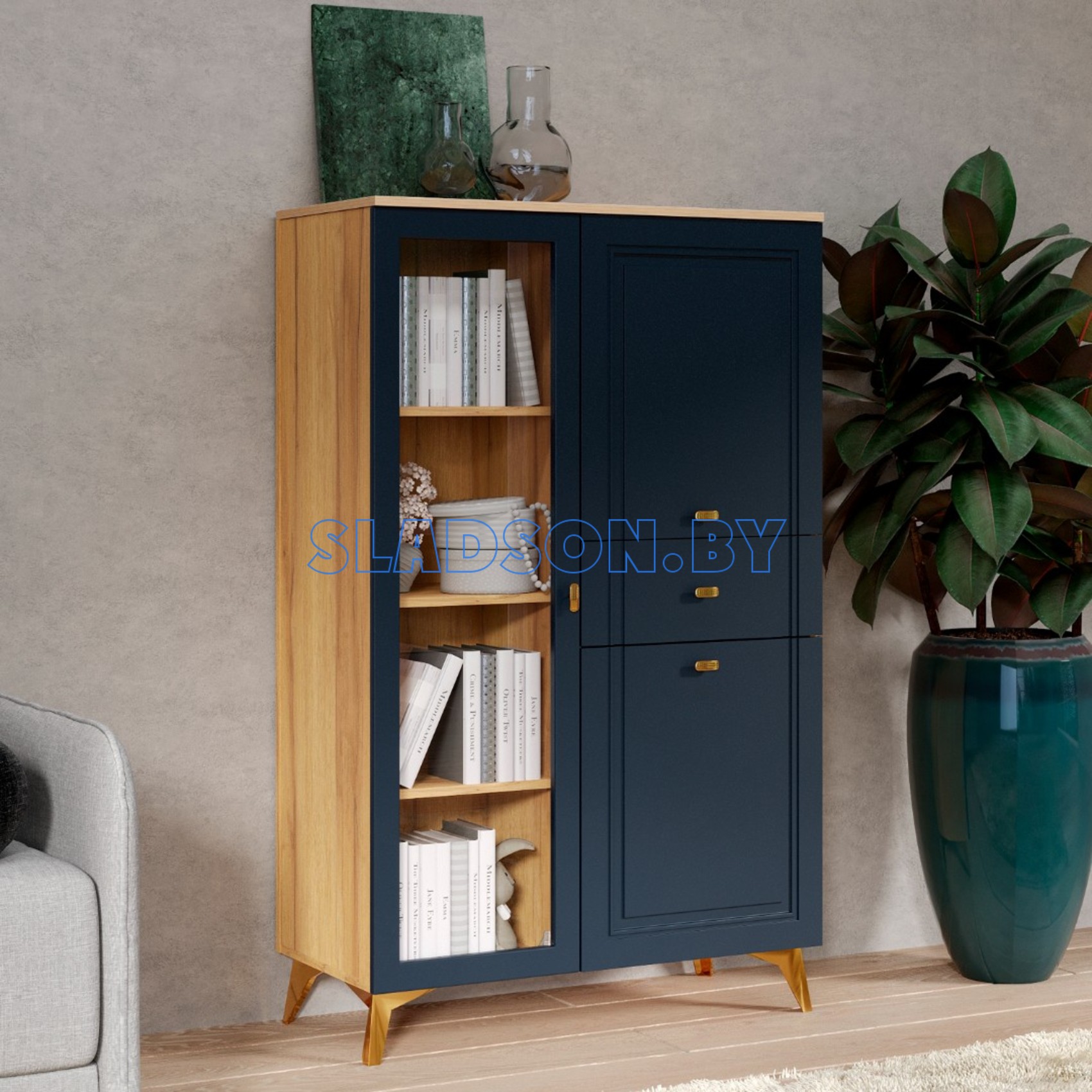 ВЕГА САПФИР гостиная Комод высокий 1в2дв1ящ Дуб золотистый, Темно-синий софт