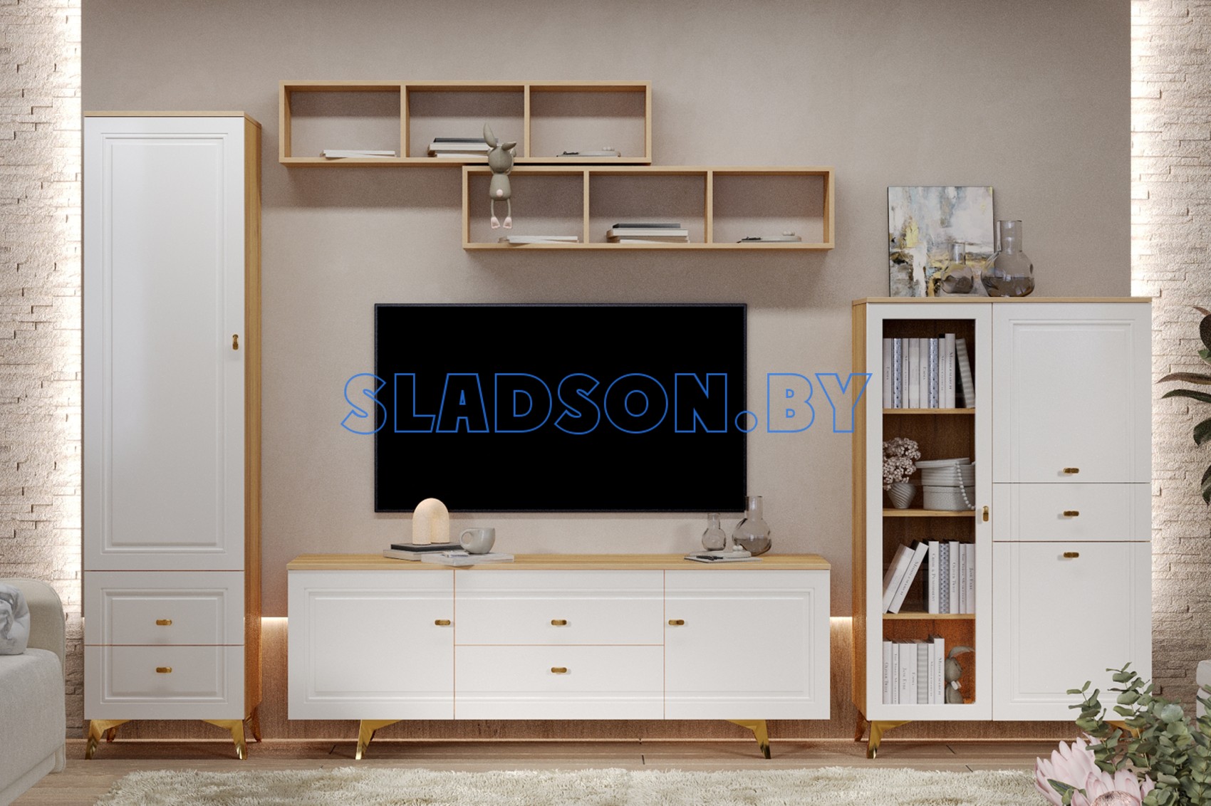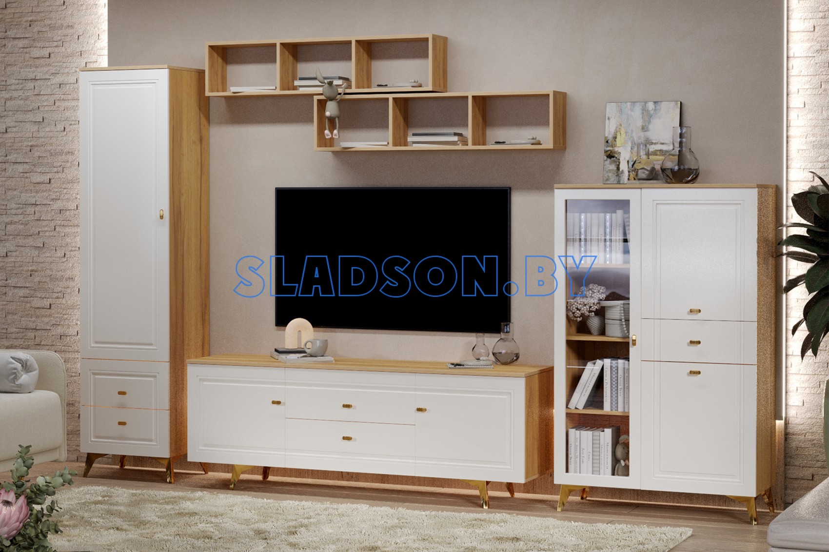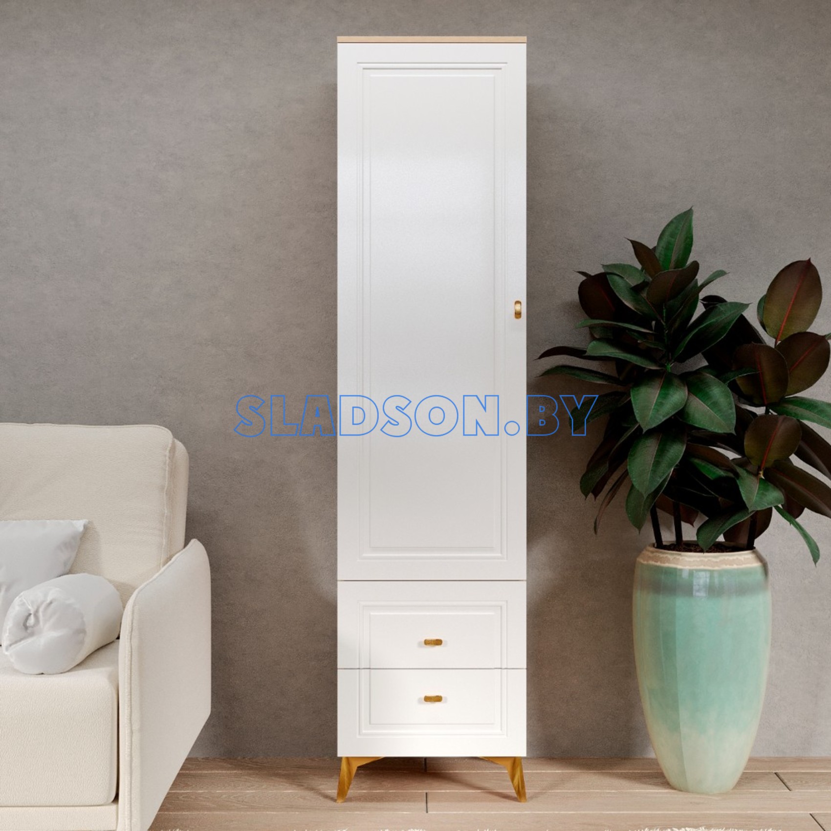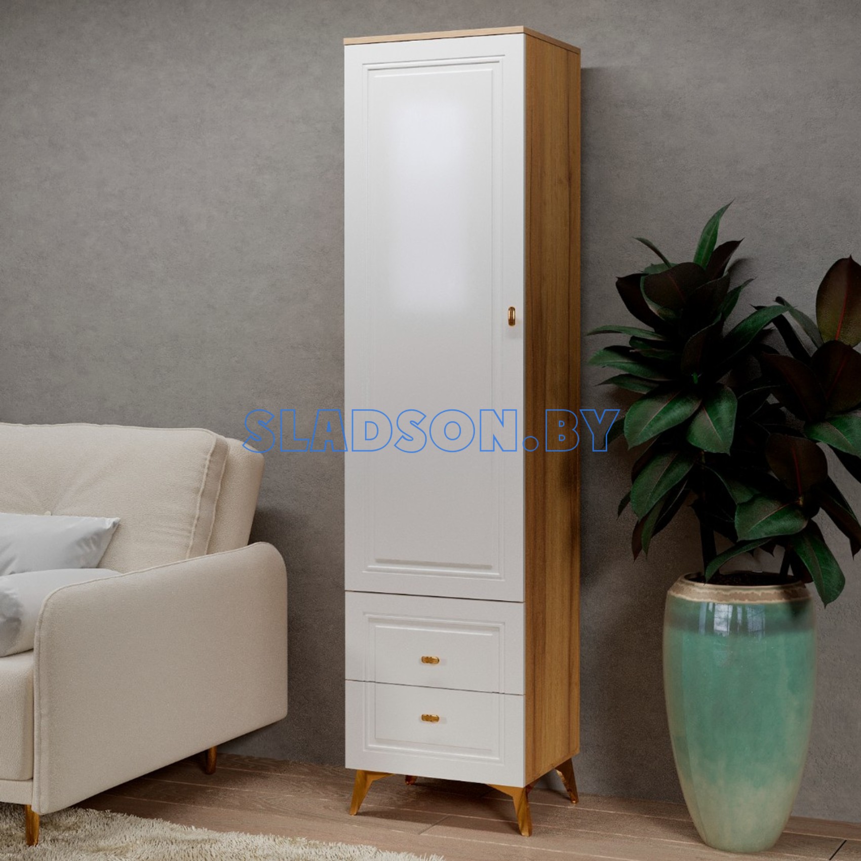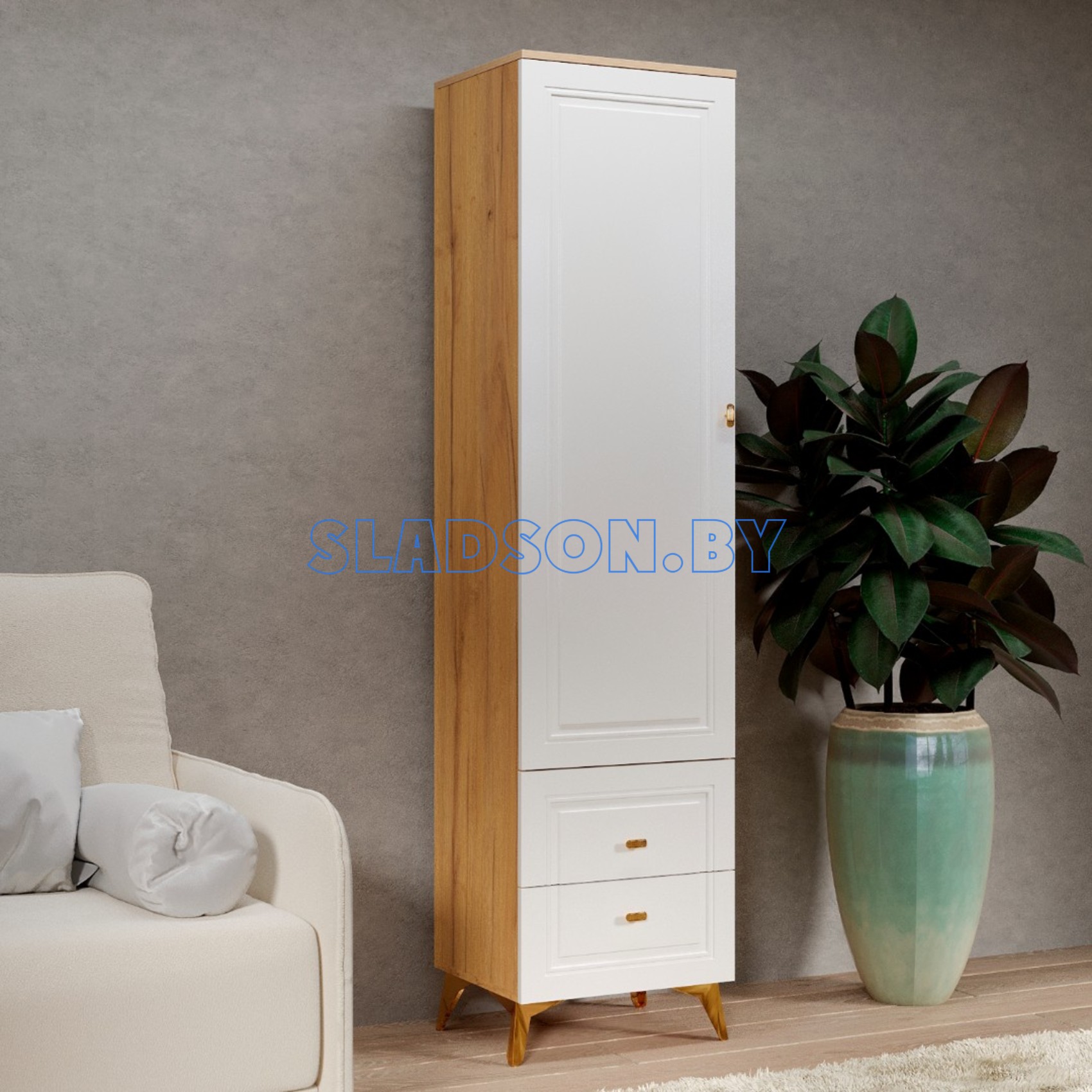 ВЕГА САПФИР гостиная Пенал Дуб золотистый, Глянец белый