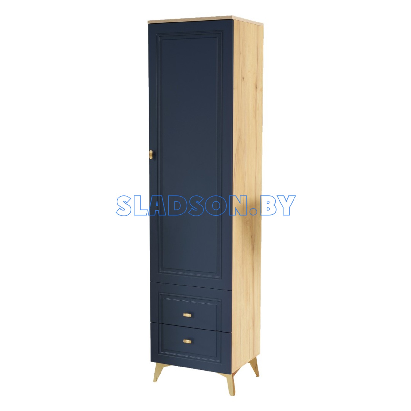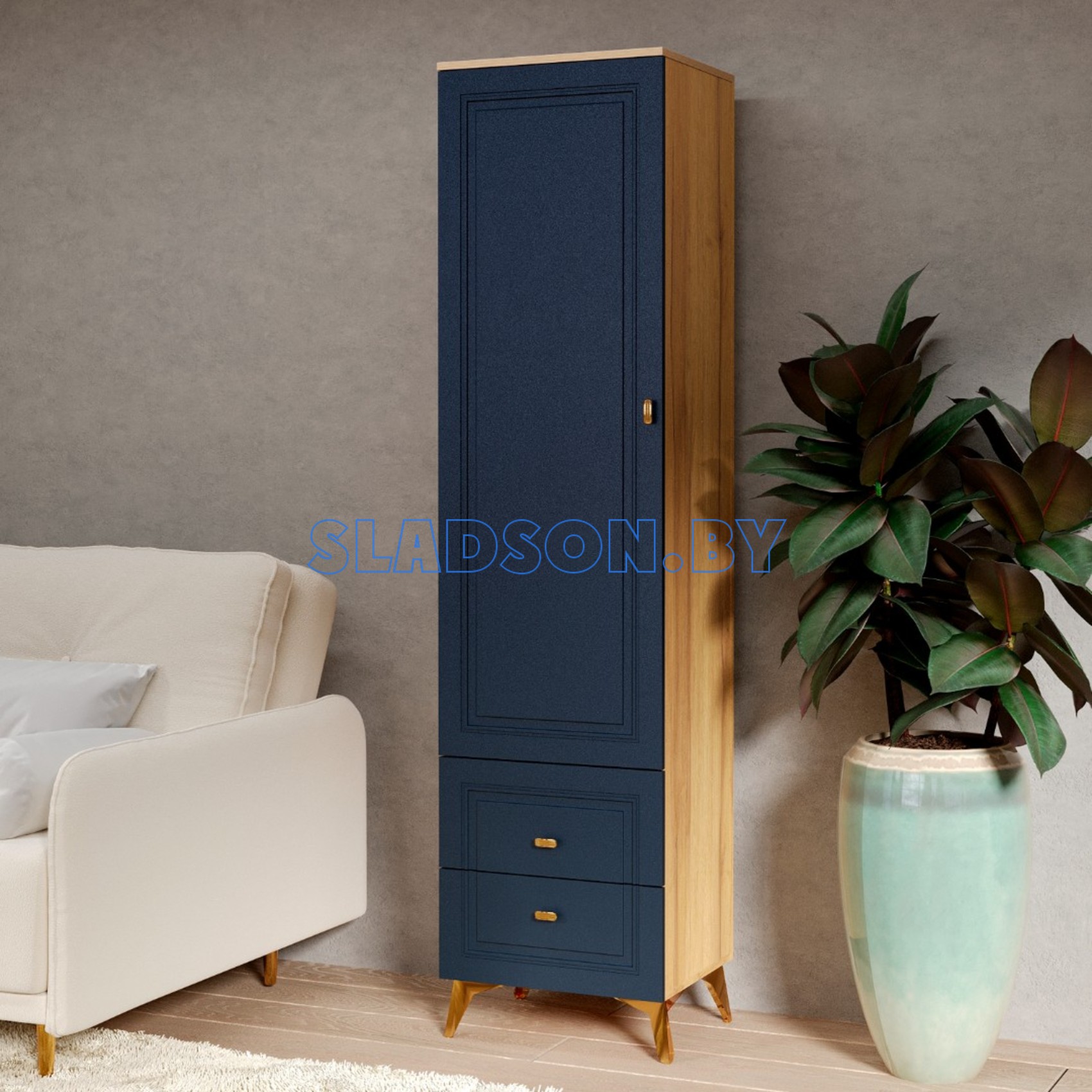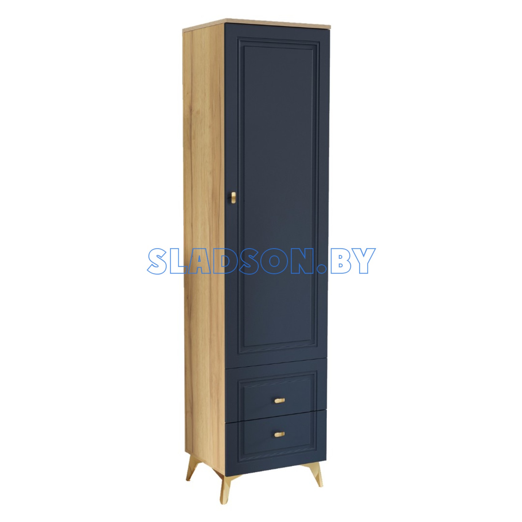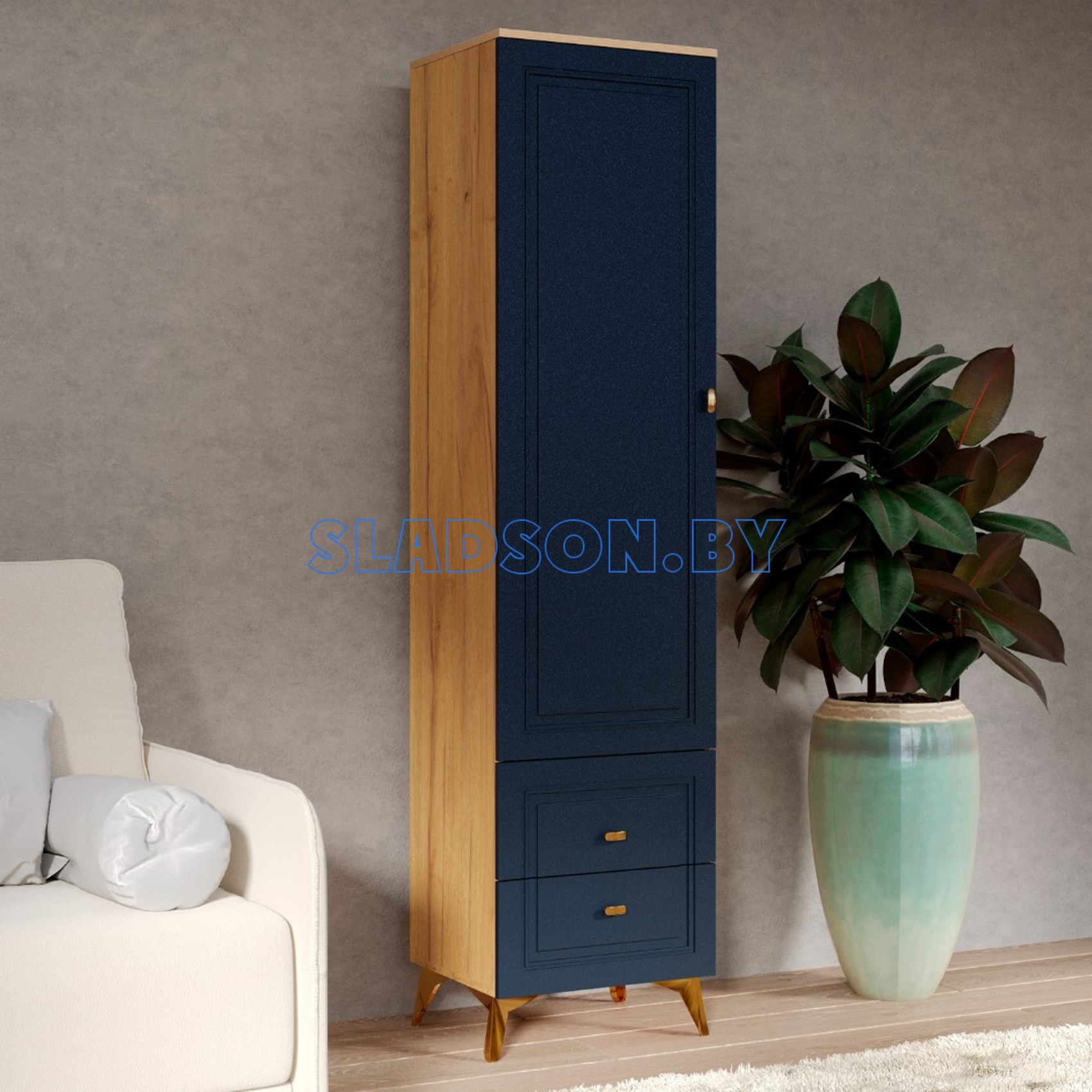 ВЕГА САПФИР гостиная Пенал Дуб золотистый, Темно-синий софт
