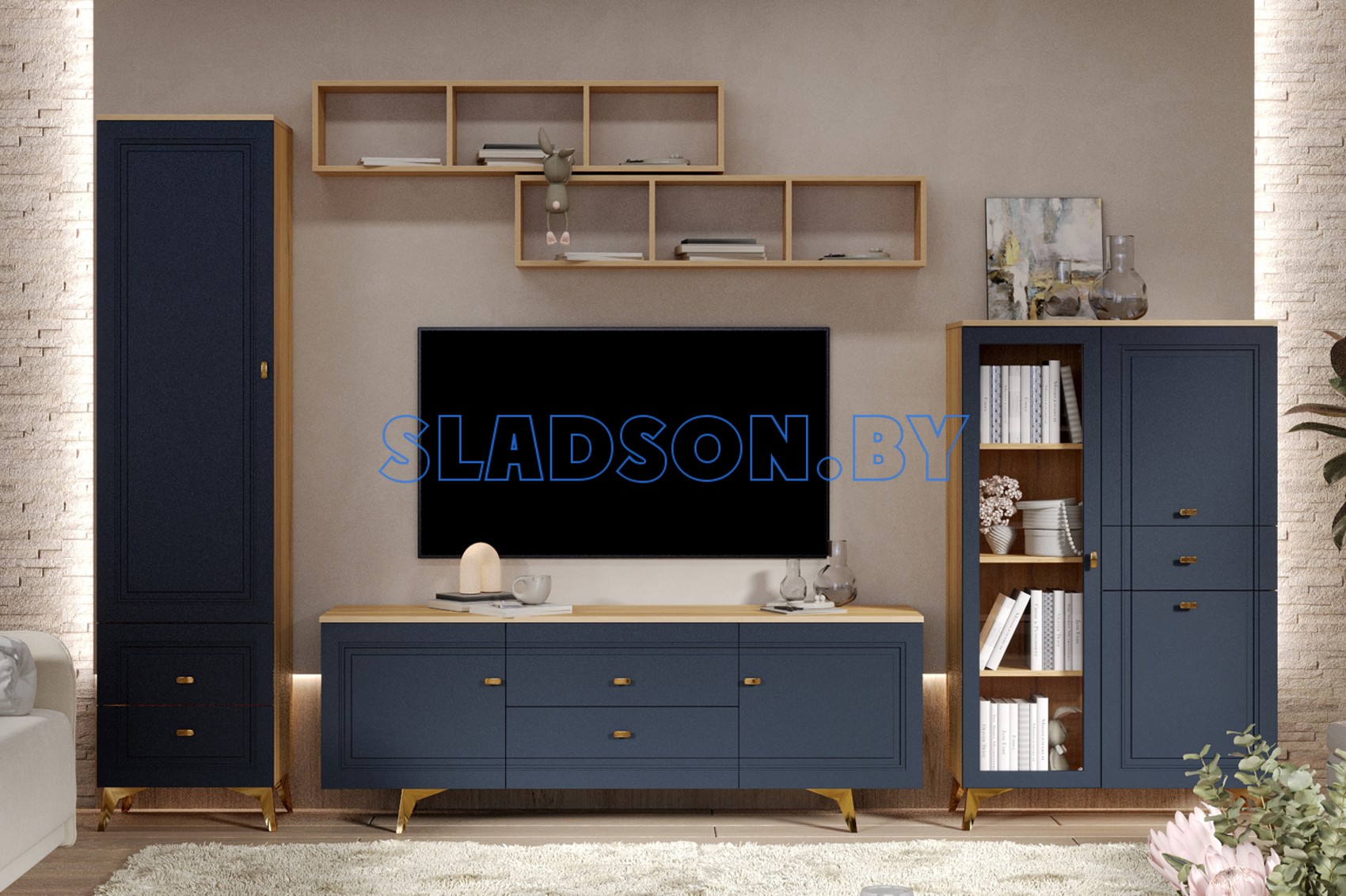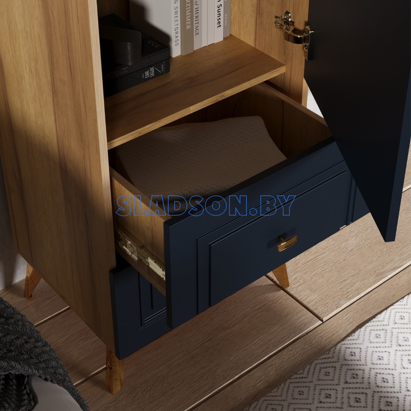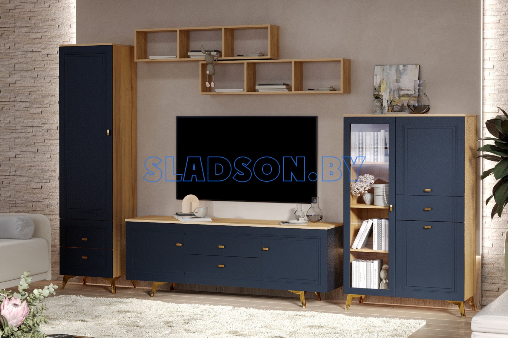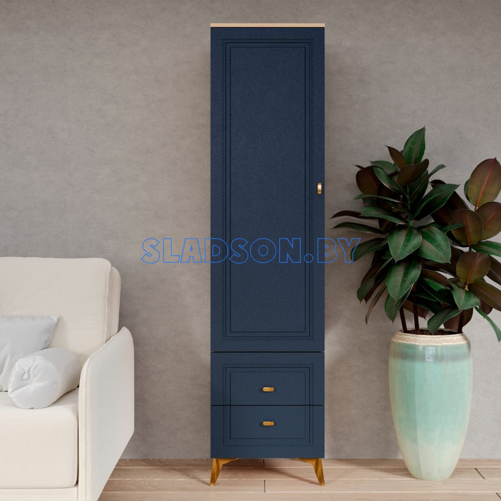 Исполнение - Дуб золотистый, Темно-синий софт