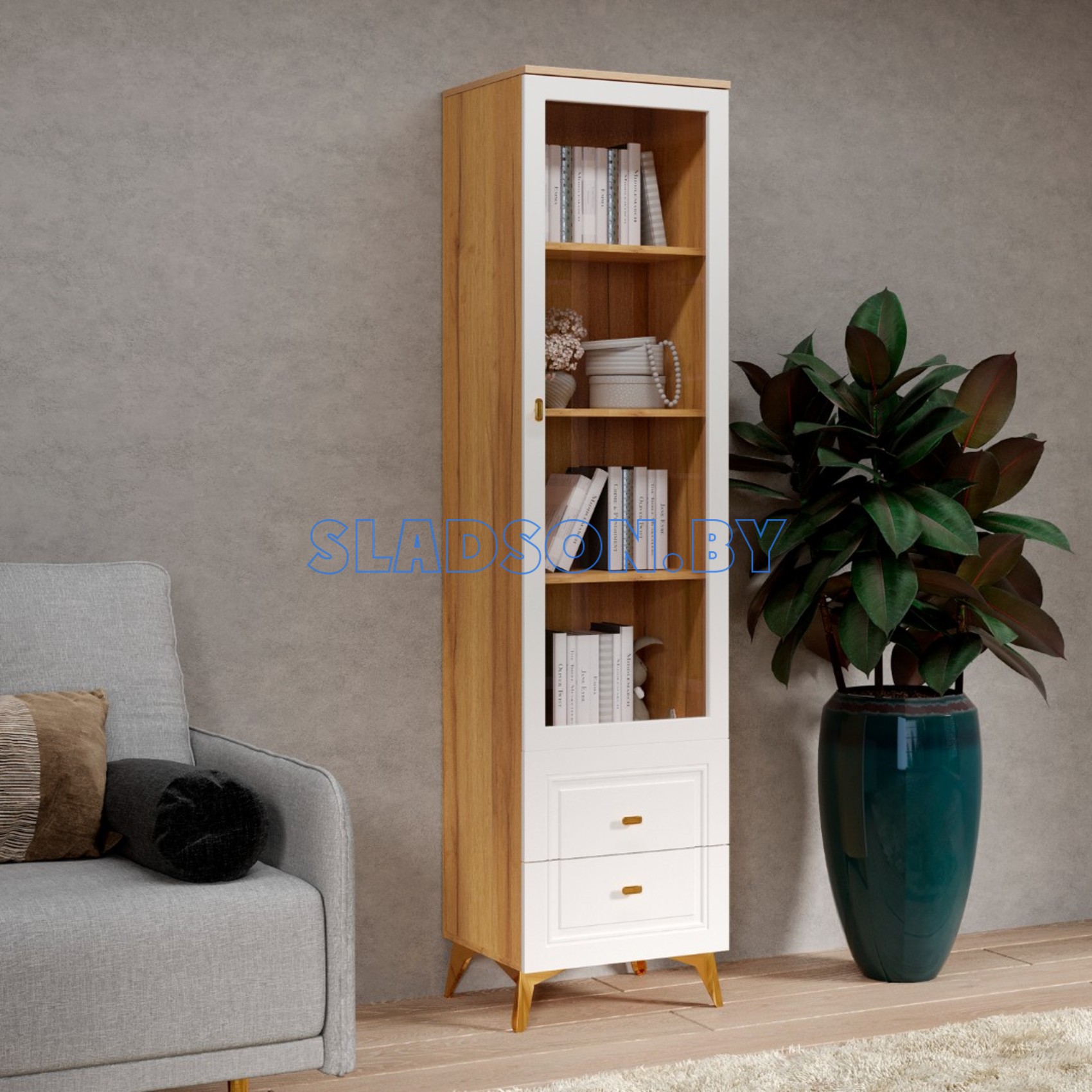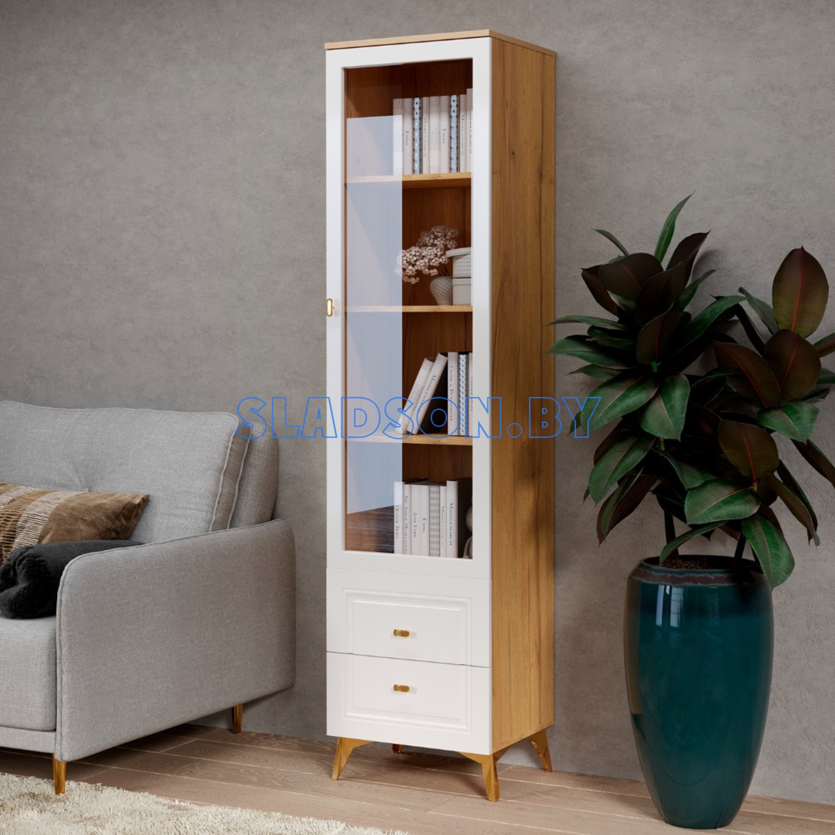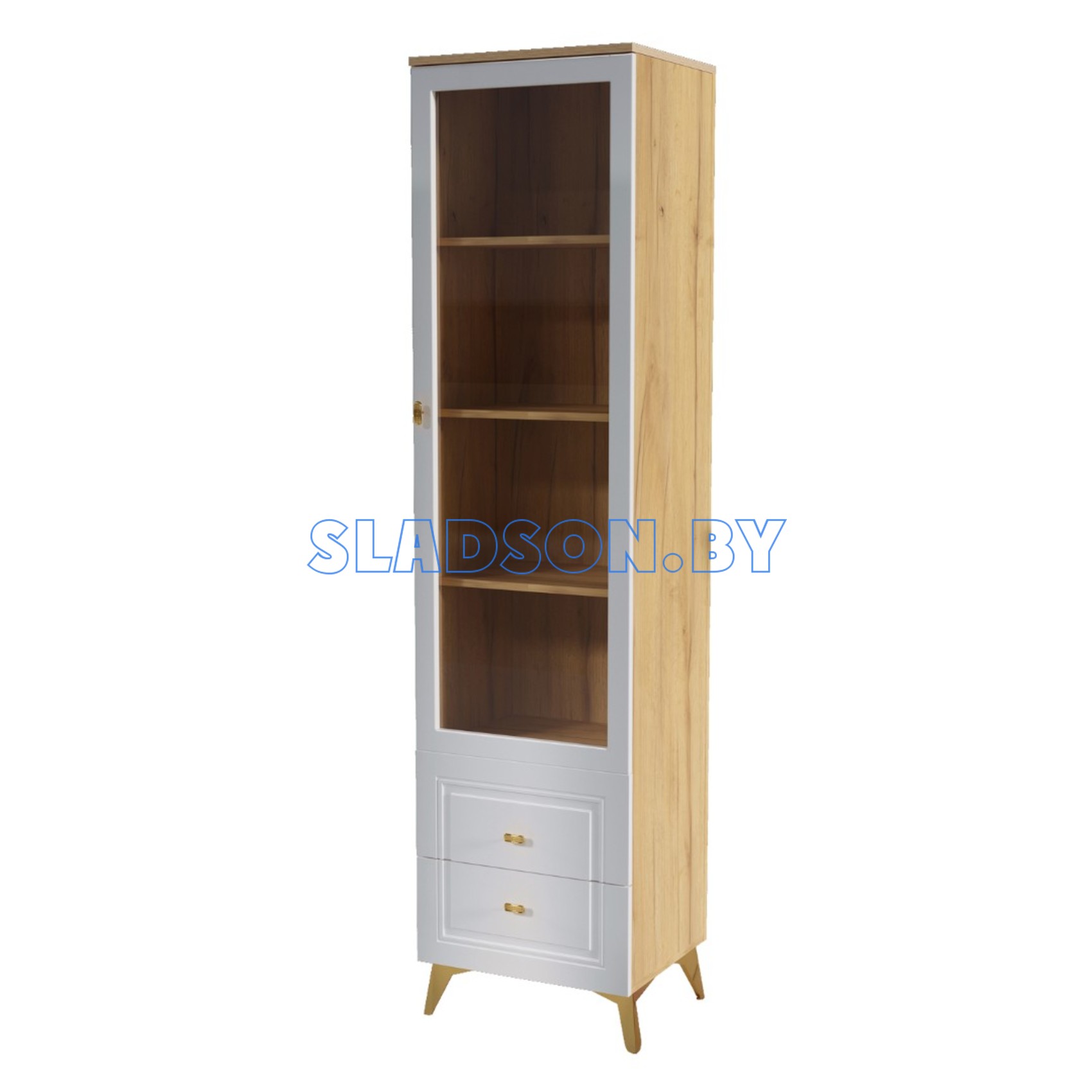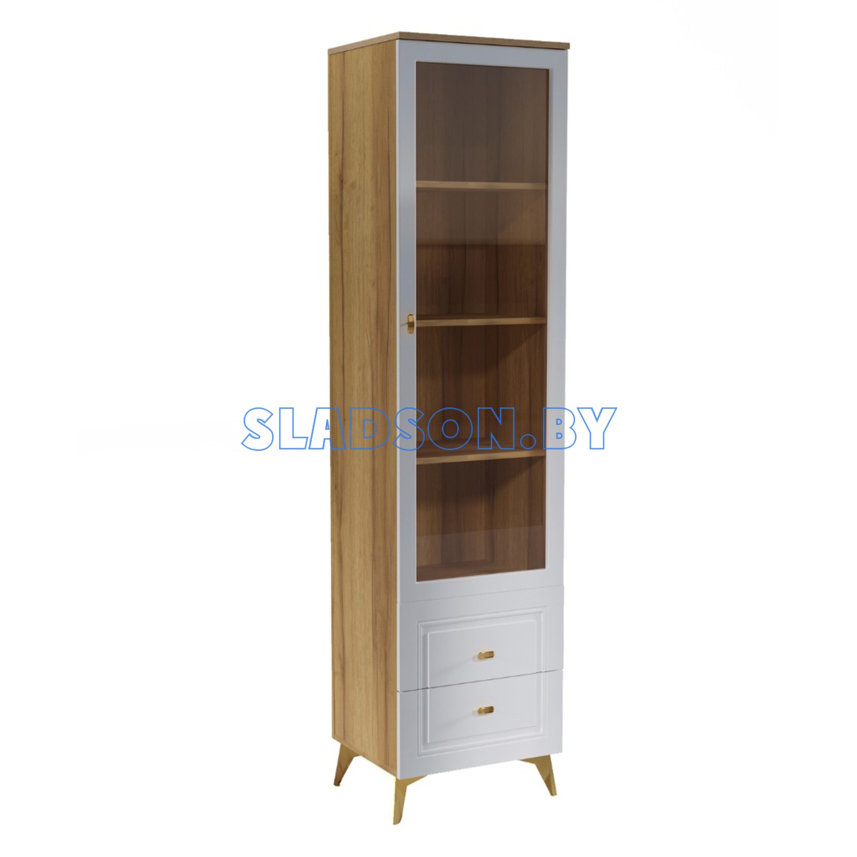 ВЕГА САПФИР гостиная Пенал-витрина Дуб золотистый, Глянец белый