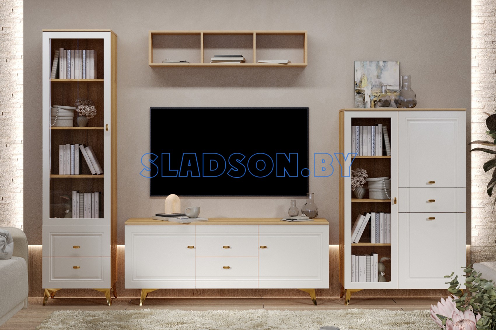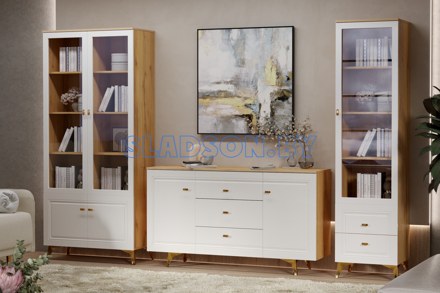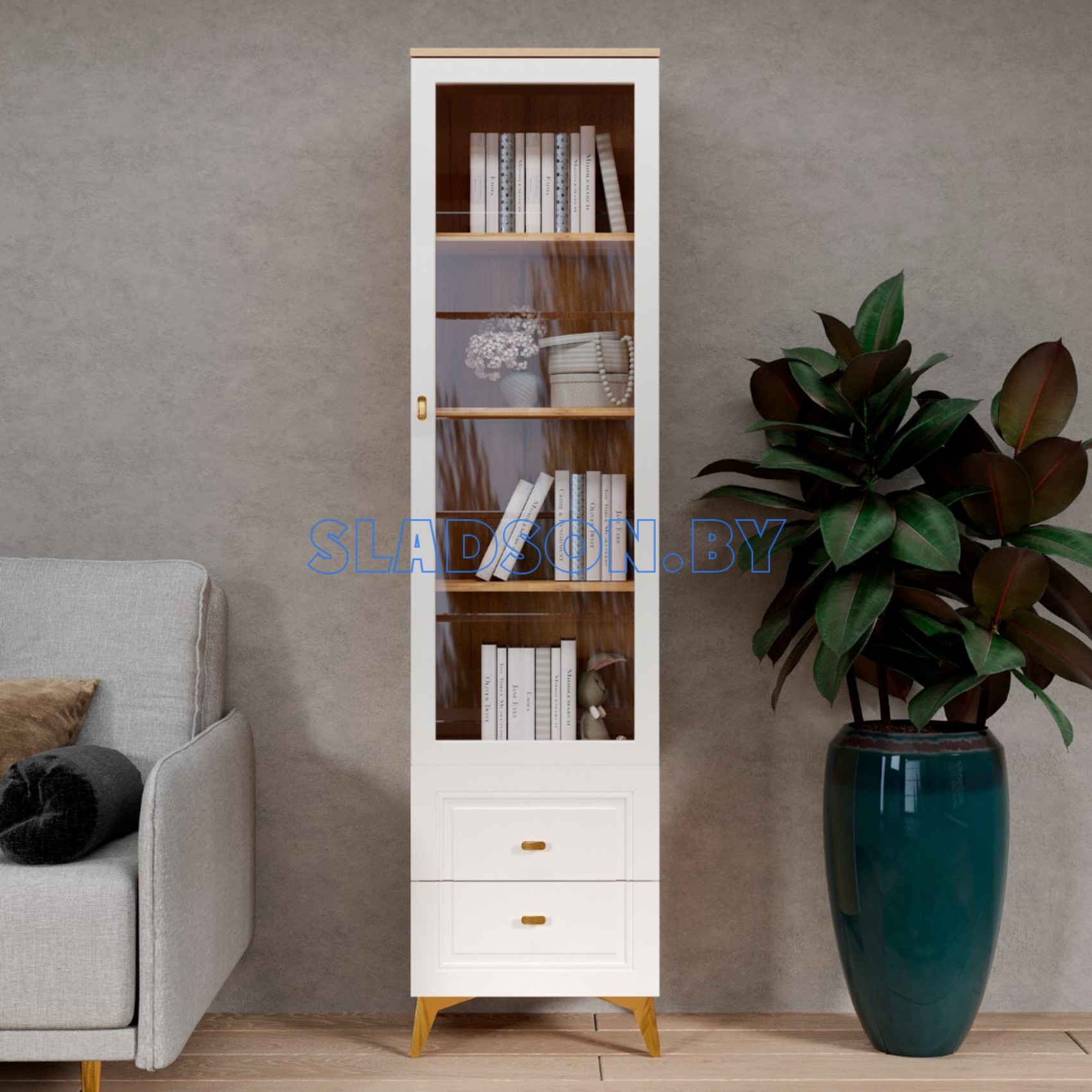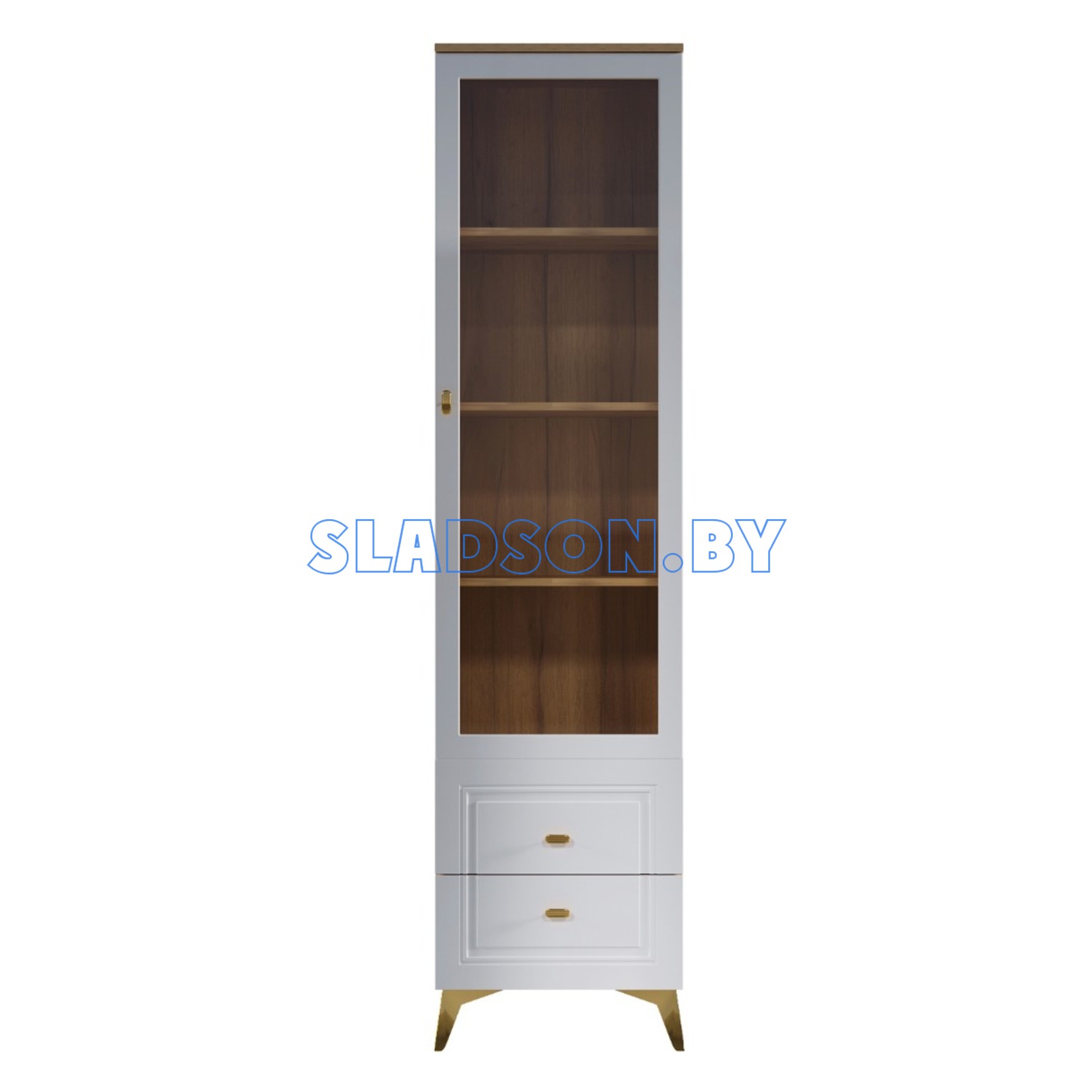 ВЕГА САПФИР гостиная Пенал-витрина Дуб золотистый, Глянец белый
