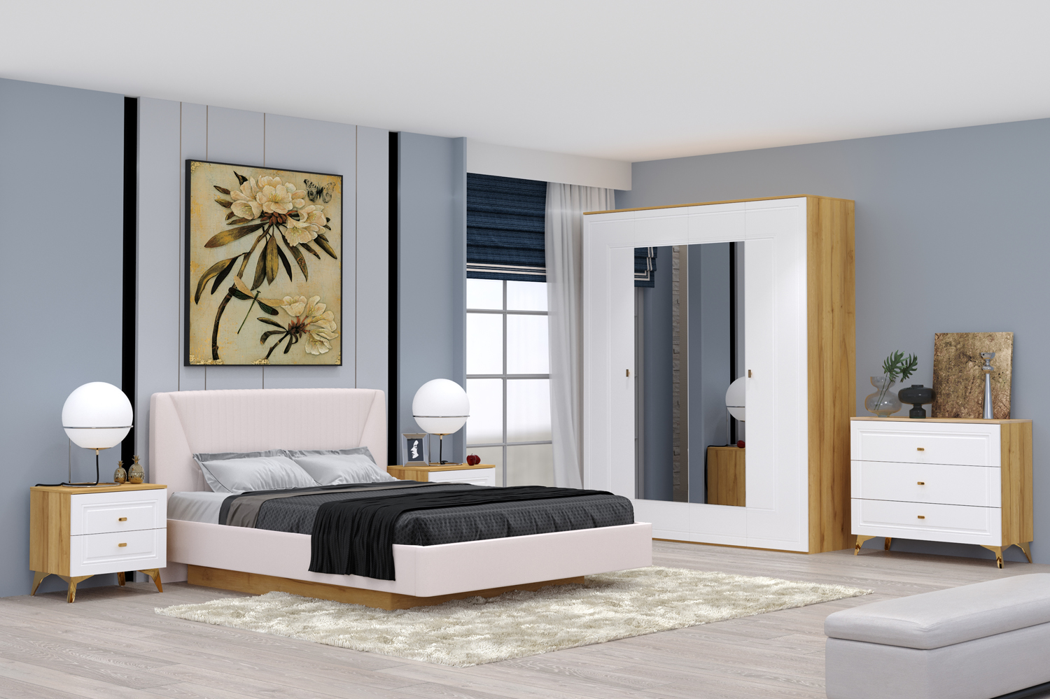 Система хранения выпускается в двух исполнениях: дуб золотистый + синий софт; дуб золотистый + глянец белый. Поверхность фасадов в синем исполнении – невероятно приятная на ощупь с эффектом soft touch. Глубокий синий цвет станет украшением интерьера спальни. Шкаф в белом исполнении с белыми глянцевыми фасадами добавит интерьеру света и тепла.