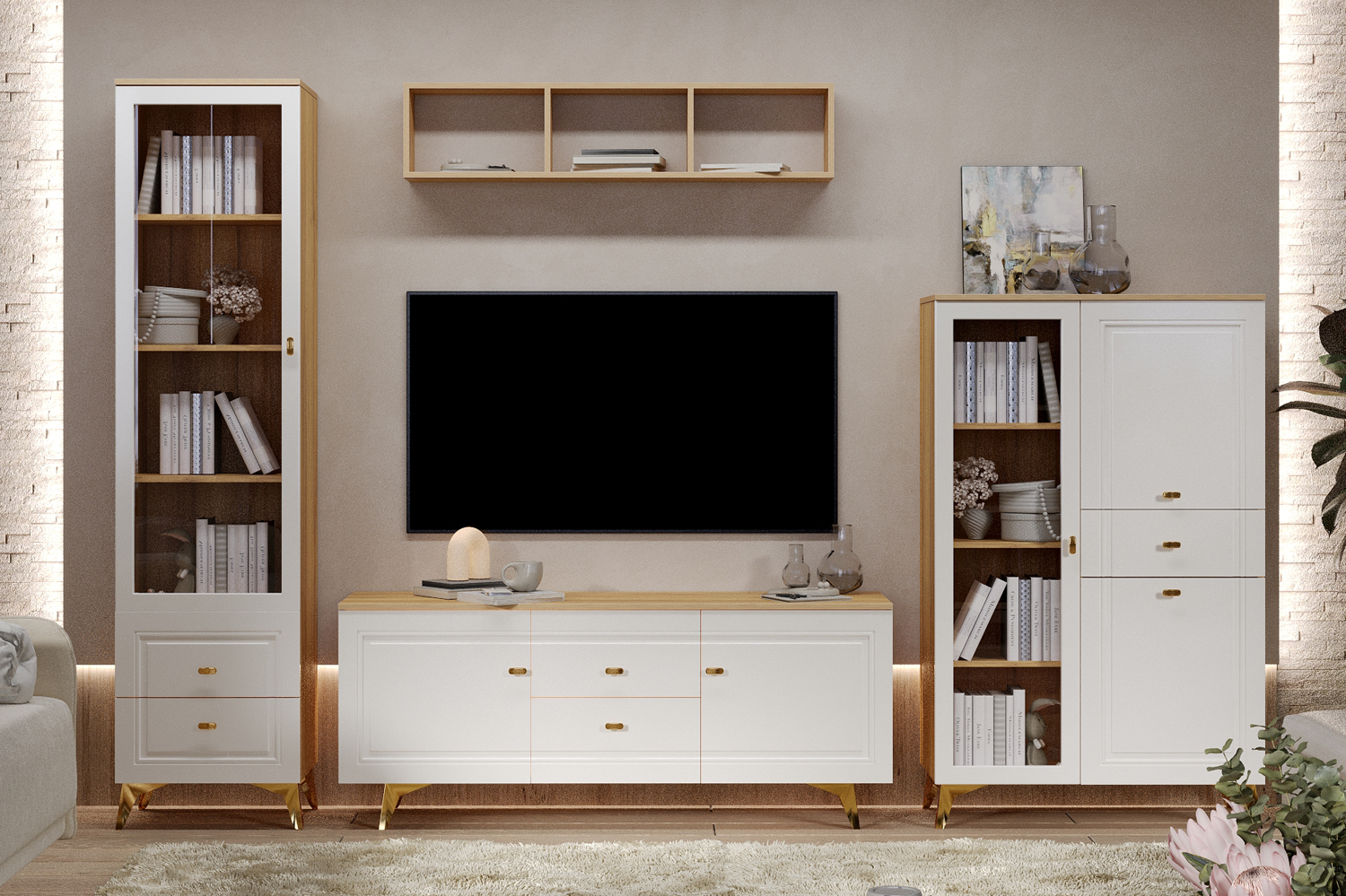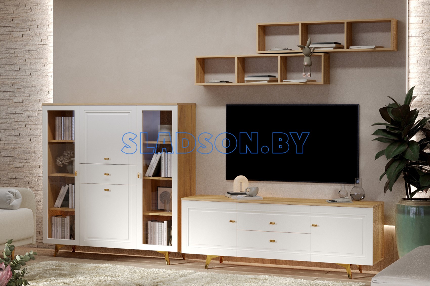 ВЕГА САПФИР гостиная Тумба под ТВ 1500 Дуб золотистый, Глянец белый