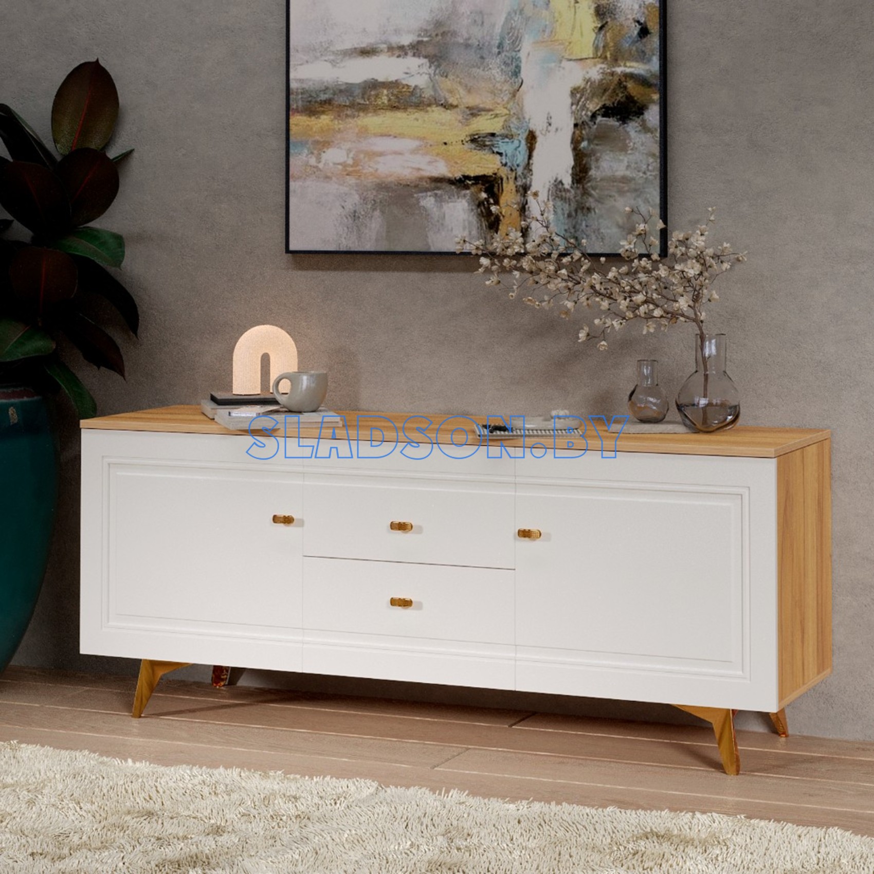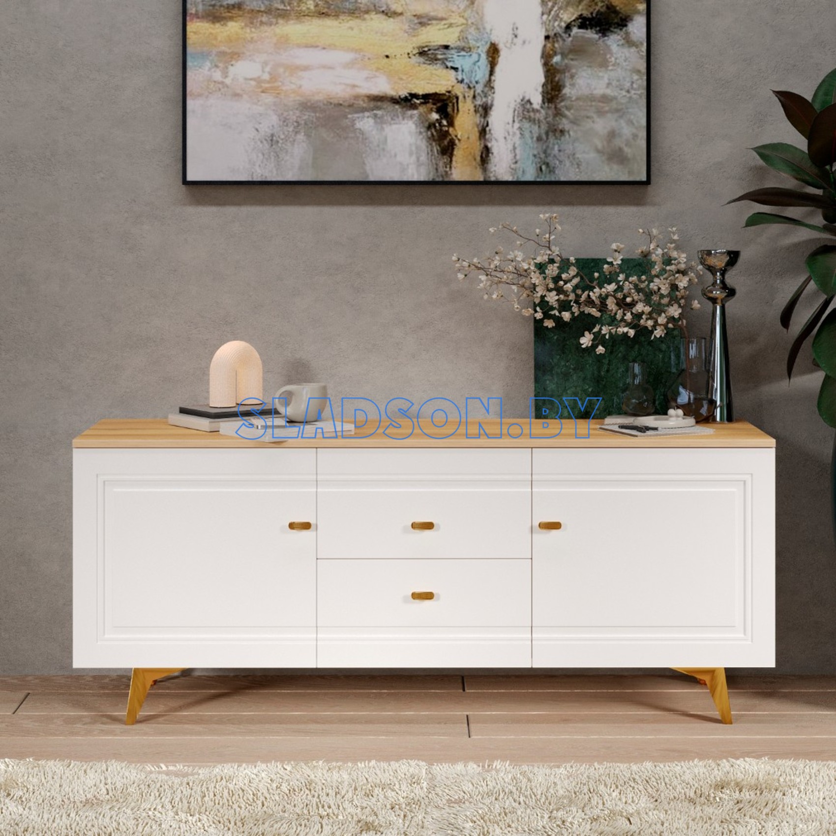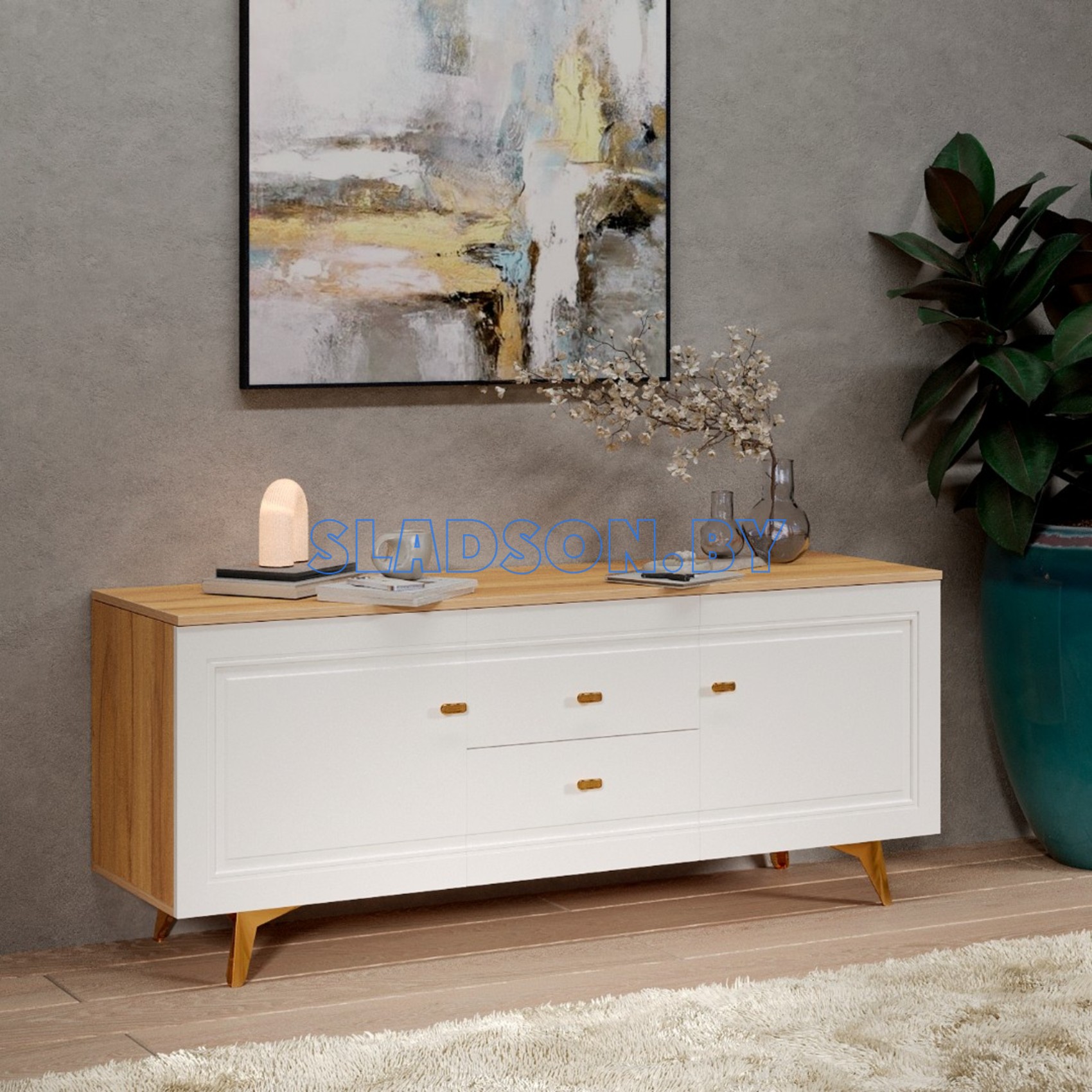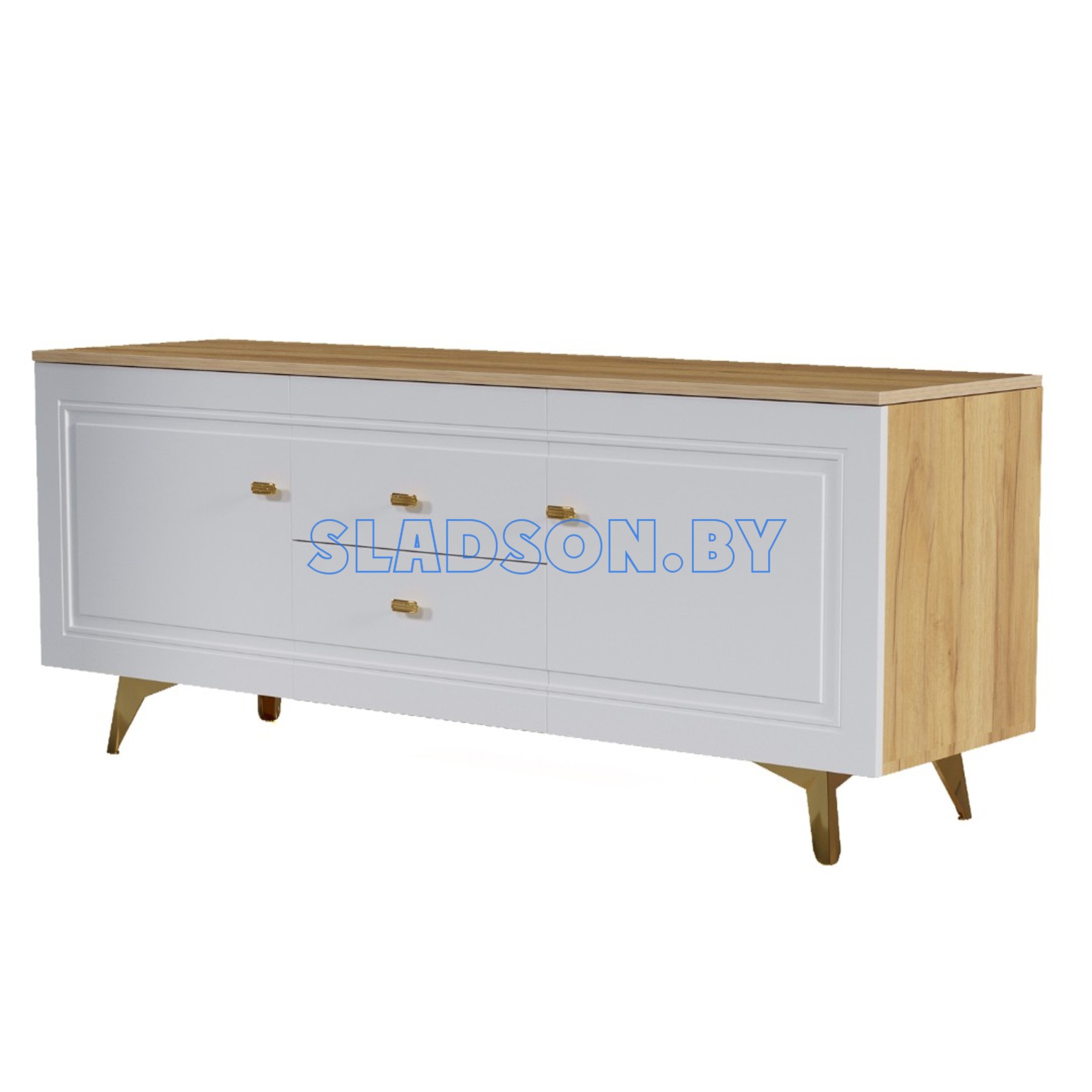 ВЕГА САПФИР Тумба под ТВ 1500 Дуб золотистый, Глянец белый