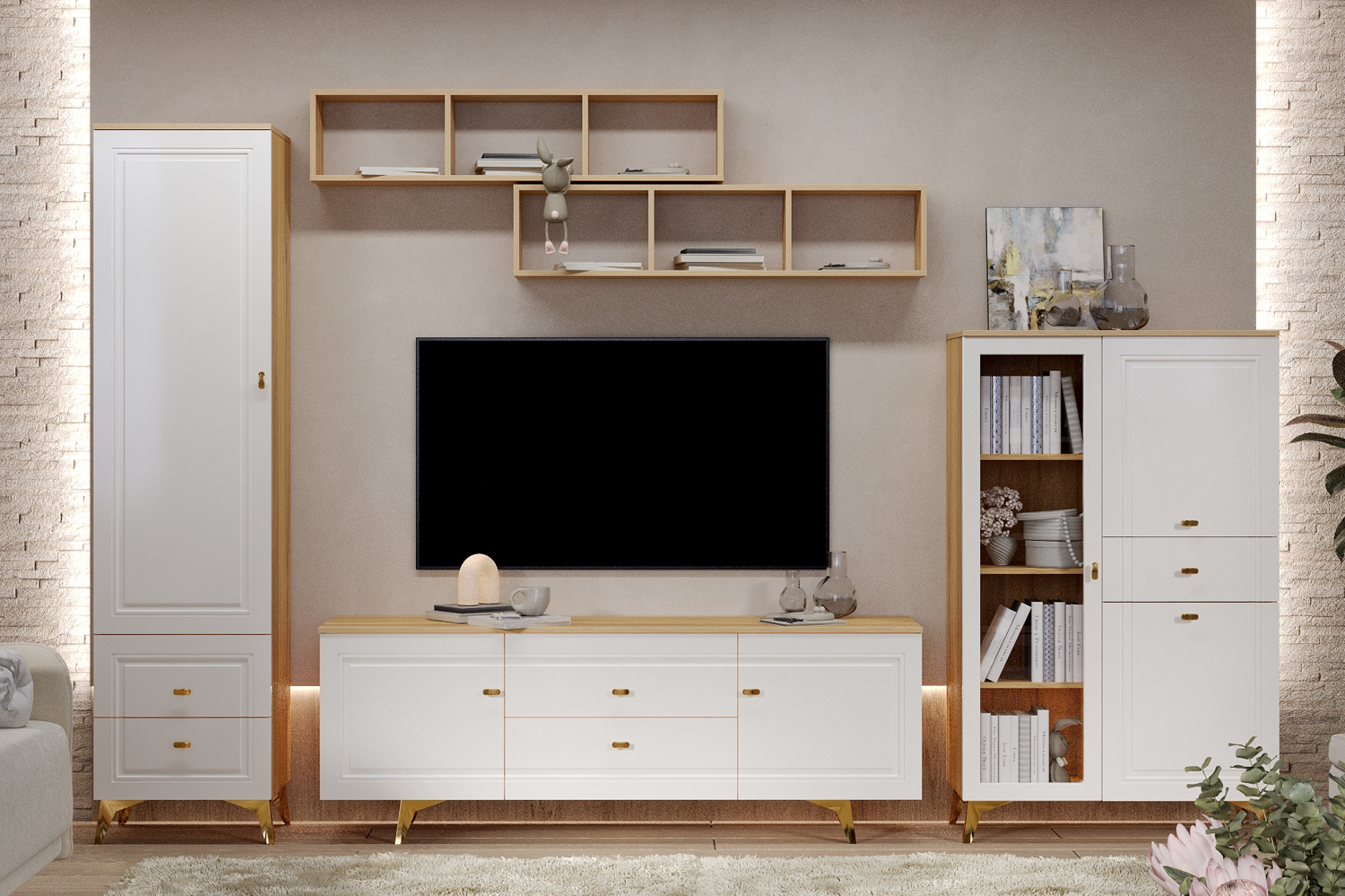 ВЕГА САПФИР гостиная Тумба под ТВ 1700 Дуб золотистый, Глянец белый