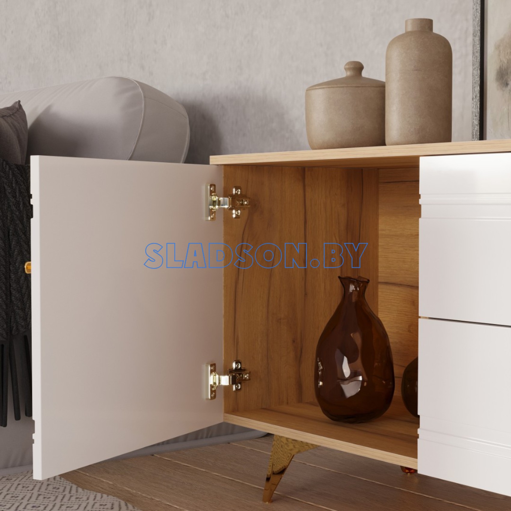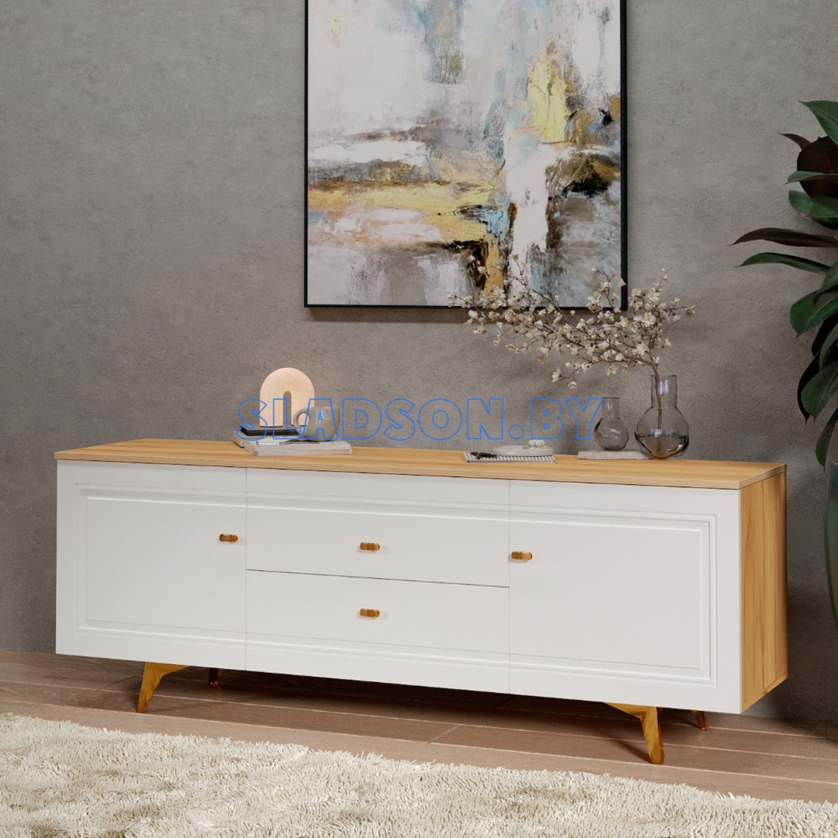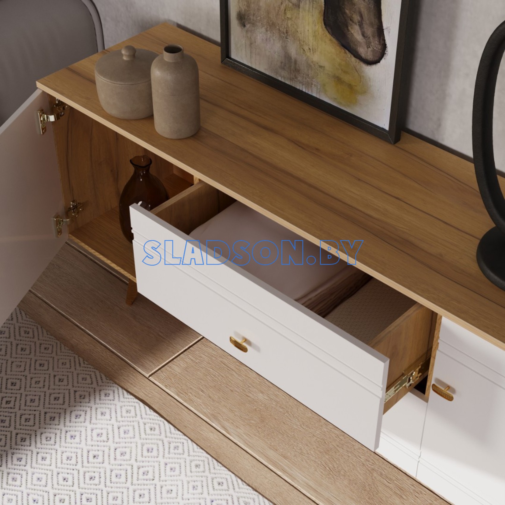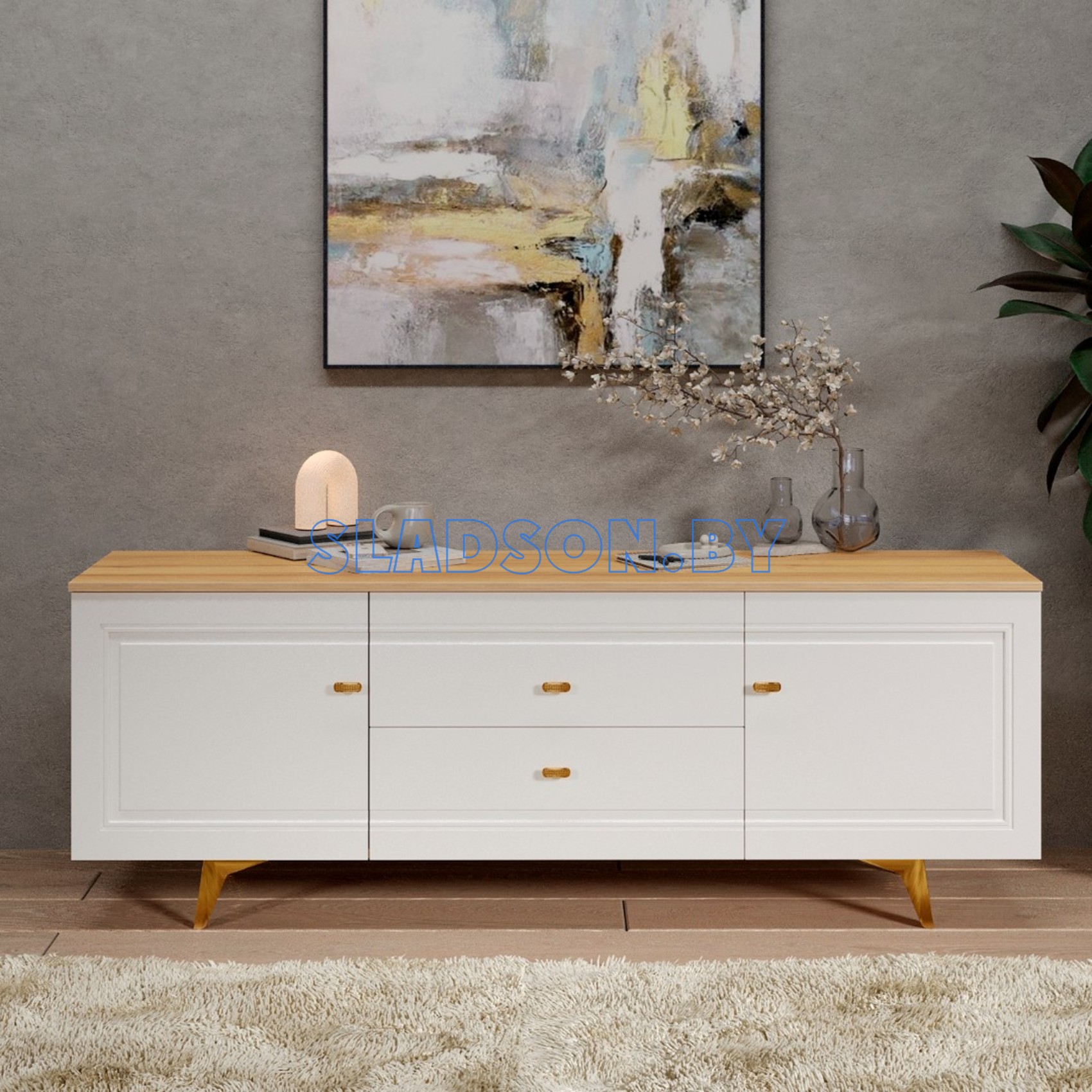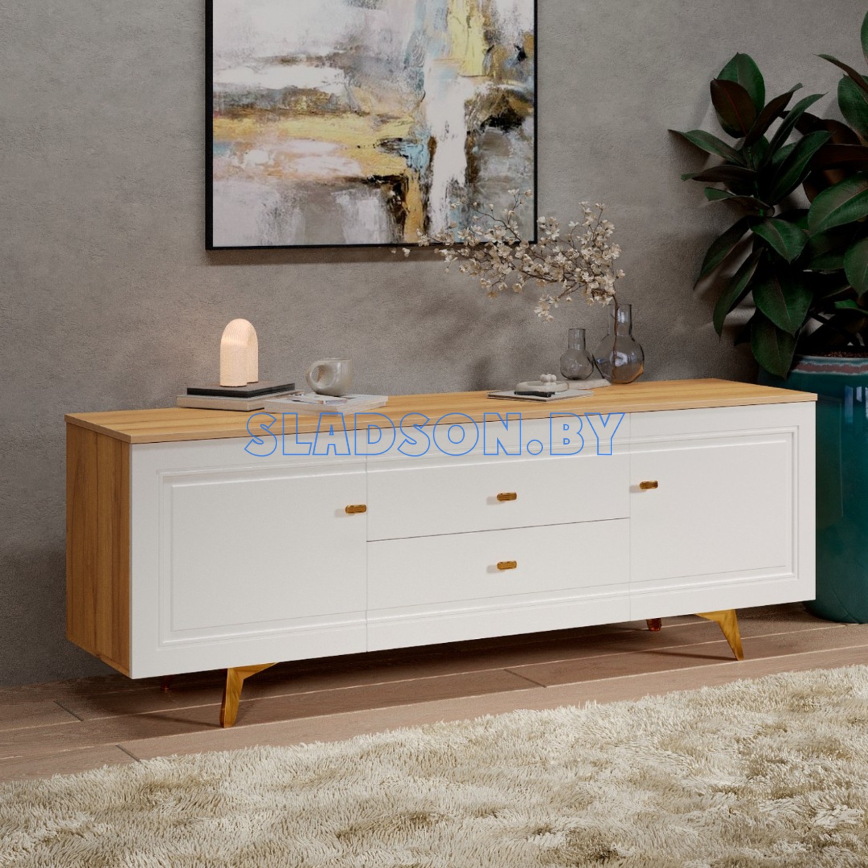 ВЕГА САПФИР Тумба под ТВ 1700 Дуб золотистый, Глянец белый