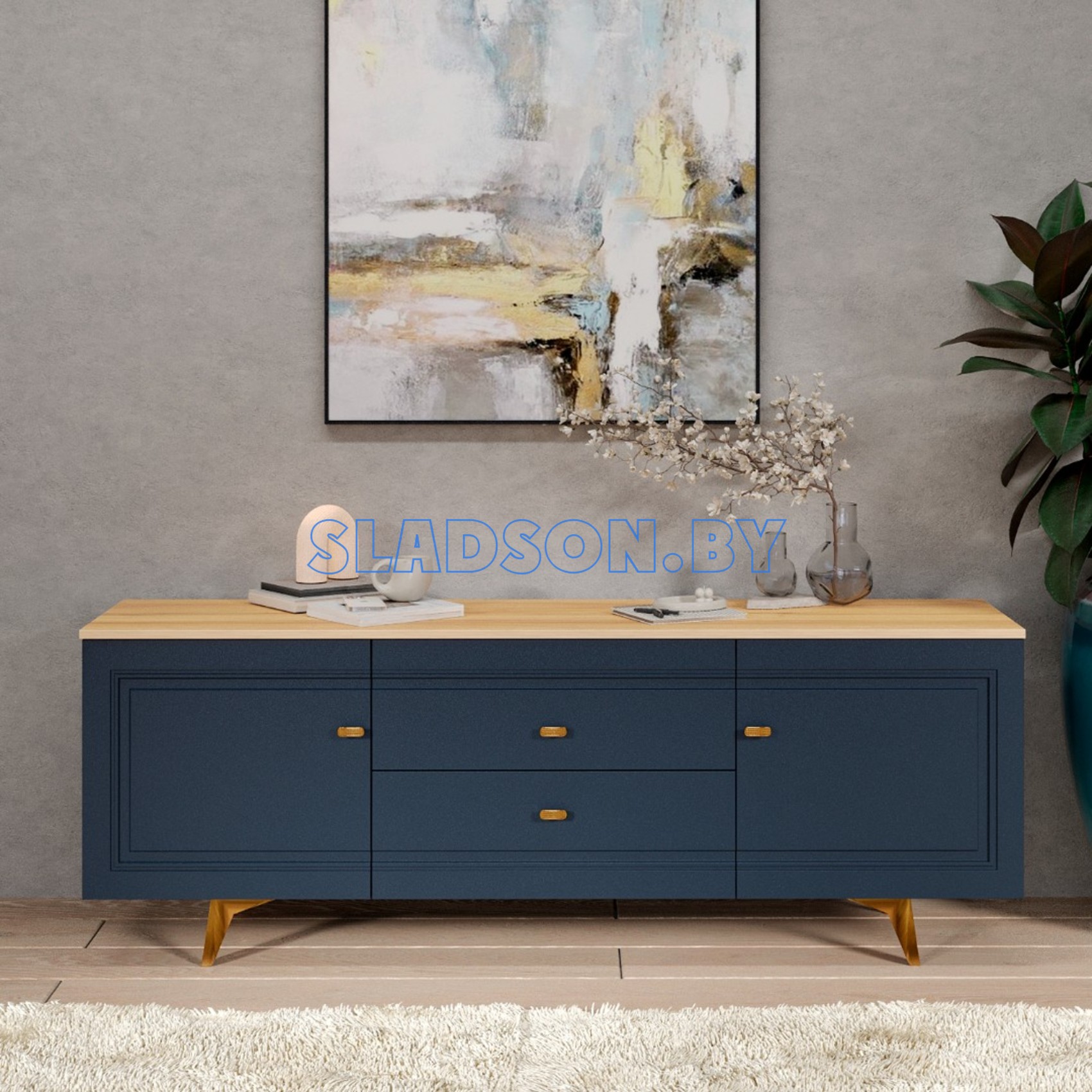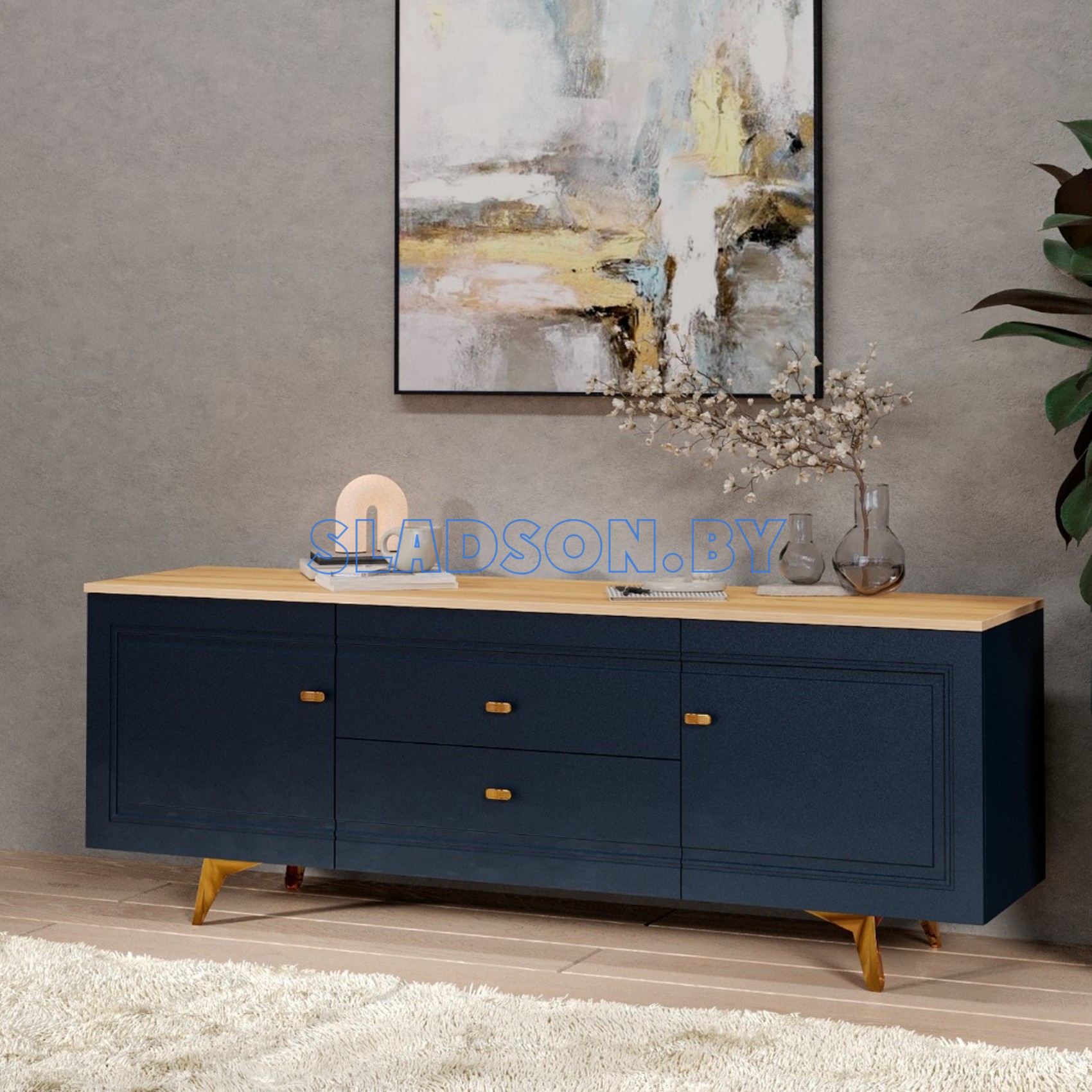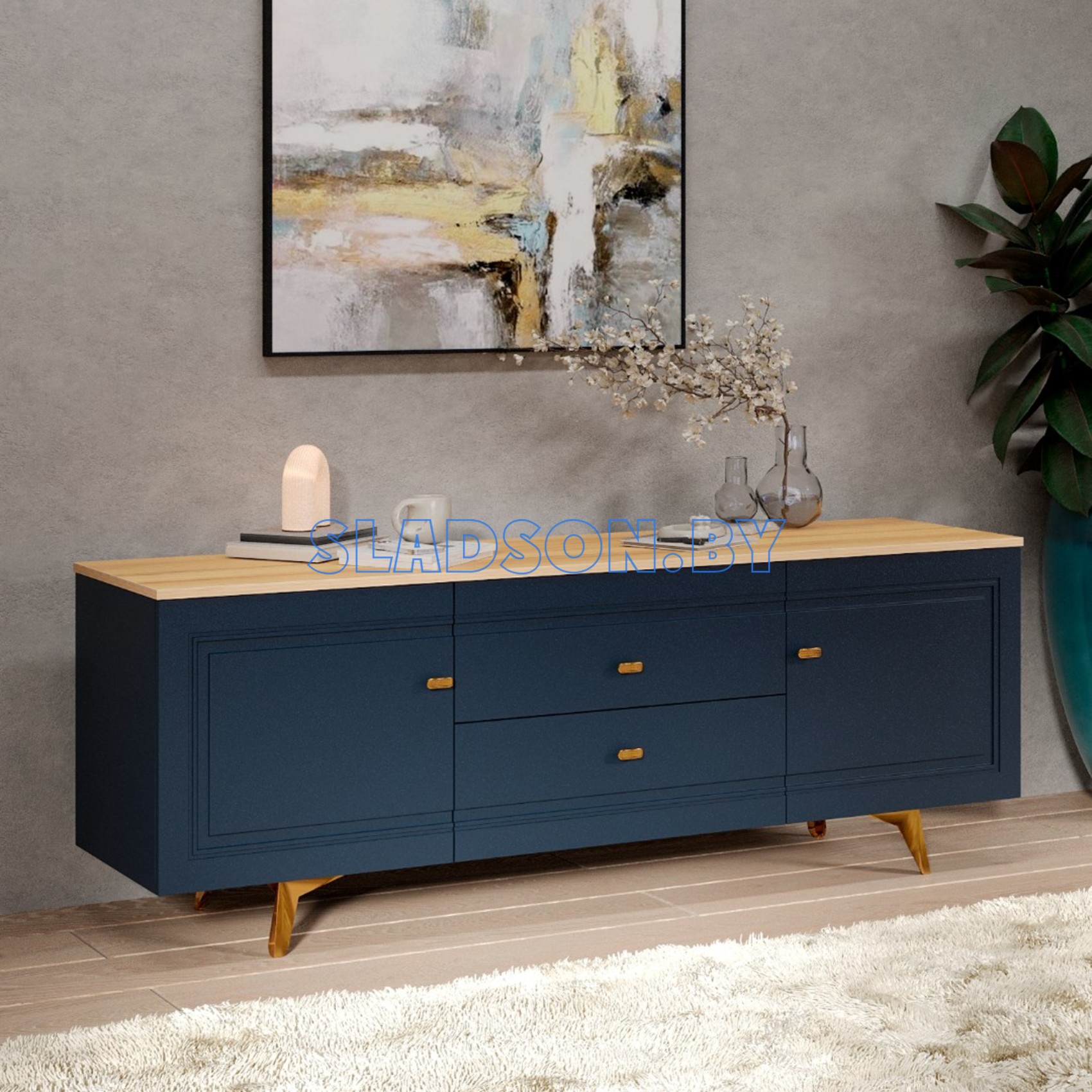 ВЕГА САПФИР Тумба под ТВ 1700 Дуб золотистый, Темно-синий софт
