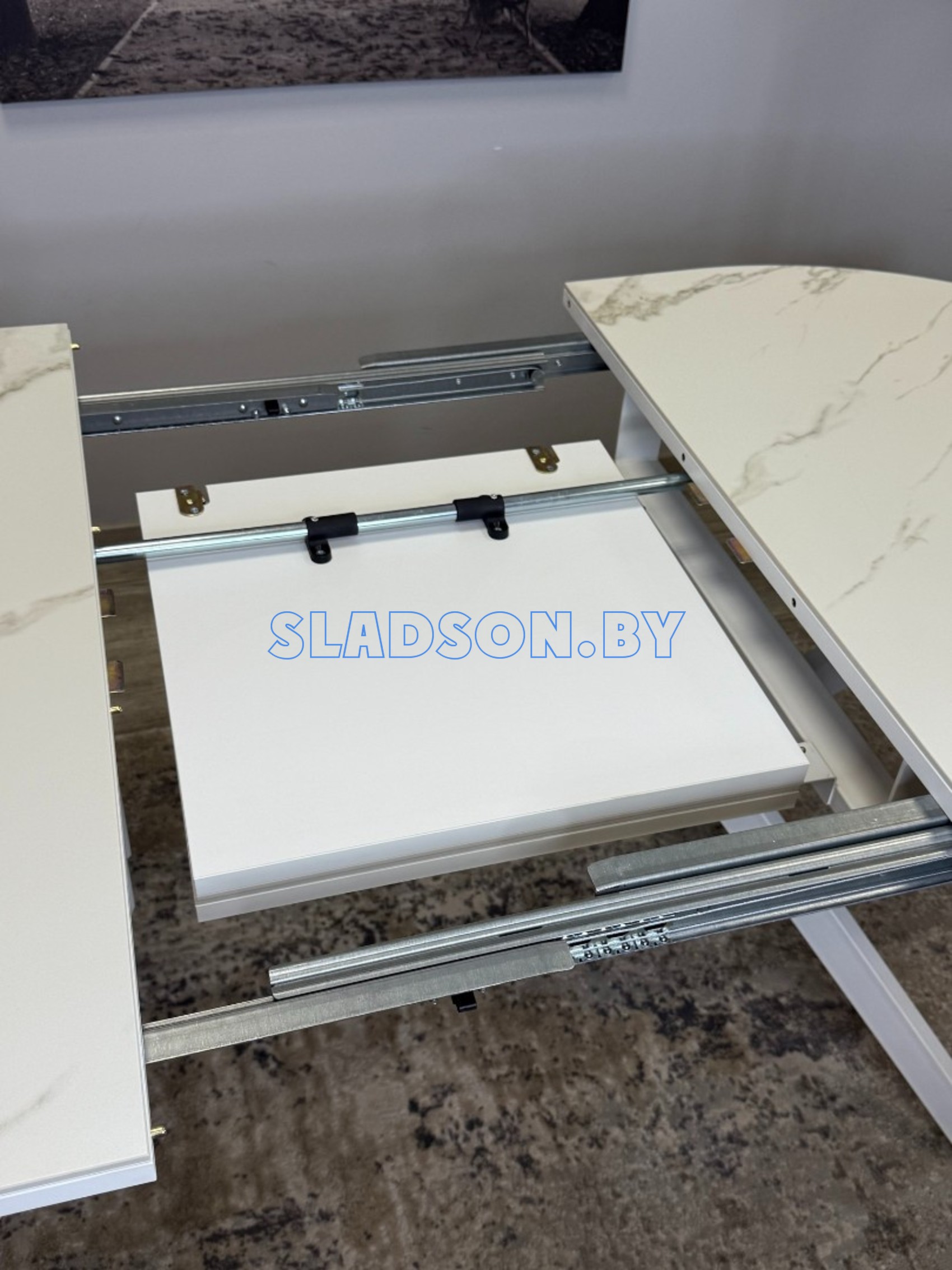 Идеальный стол для размера 1,2 м в сложенном виде. Основное преимущество в системе раскладки вместе с опорами. Опоры стола в разложенном виде не мешают сидеть, позволяют сделать большую вставку и, главное, столешница в разложенном состоянии так же крепка и надежна, как и в сложенном, тогда как обычно раскладка стола уменьшает устойчивость столешницы к нагрузкам из-за большего плеча.