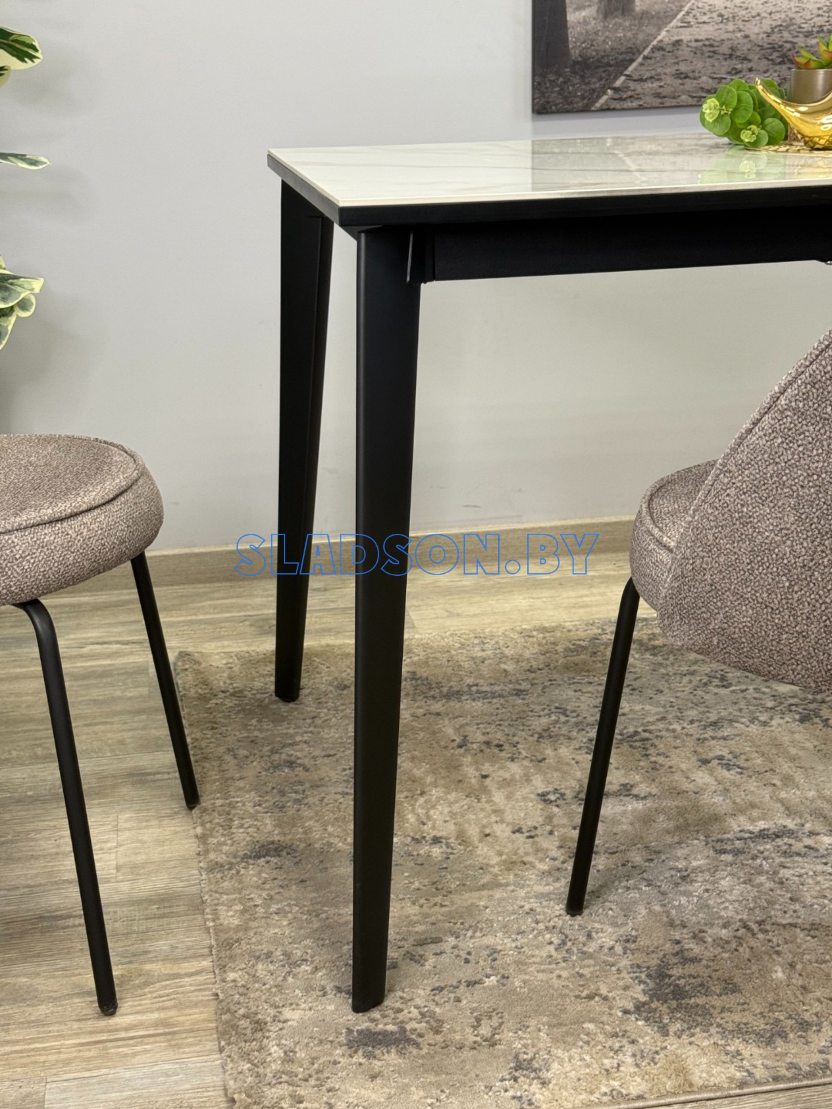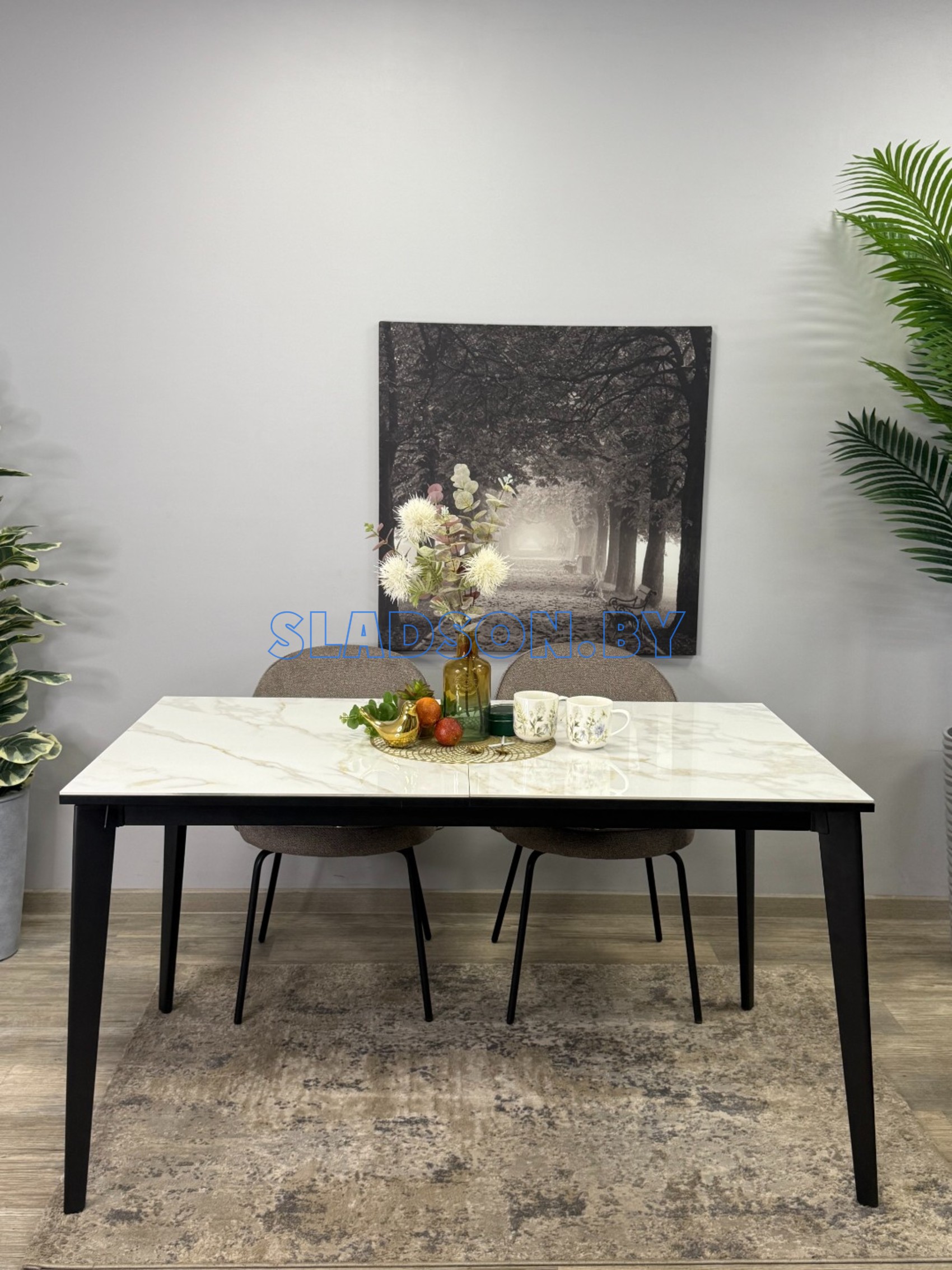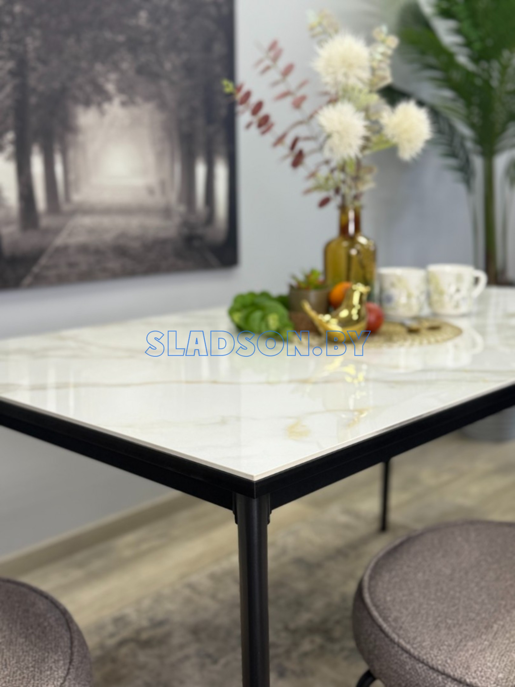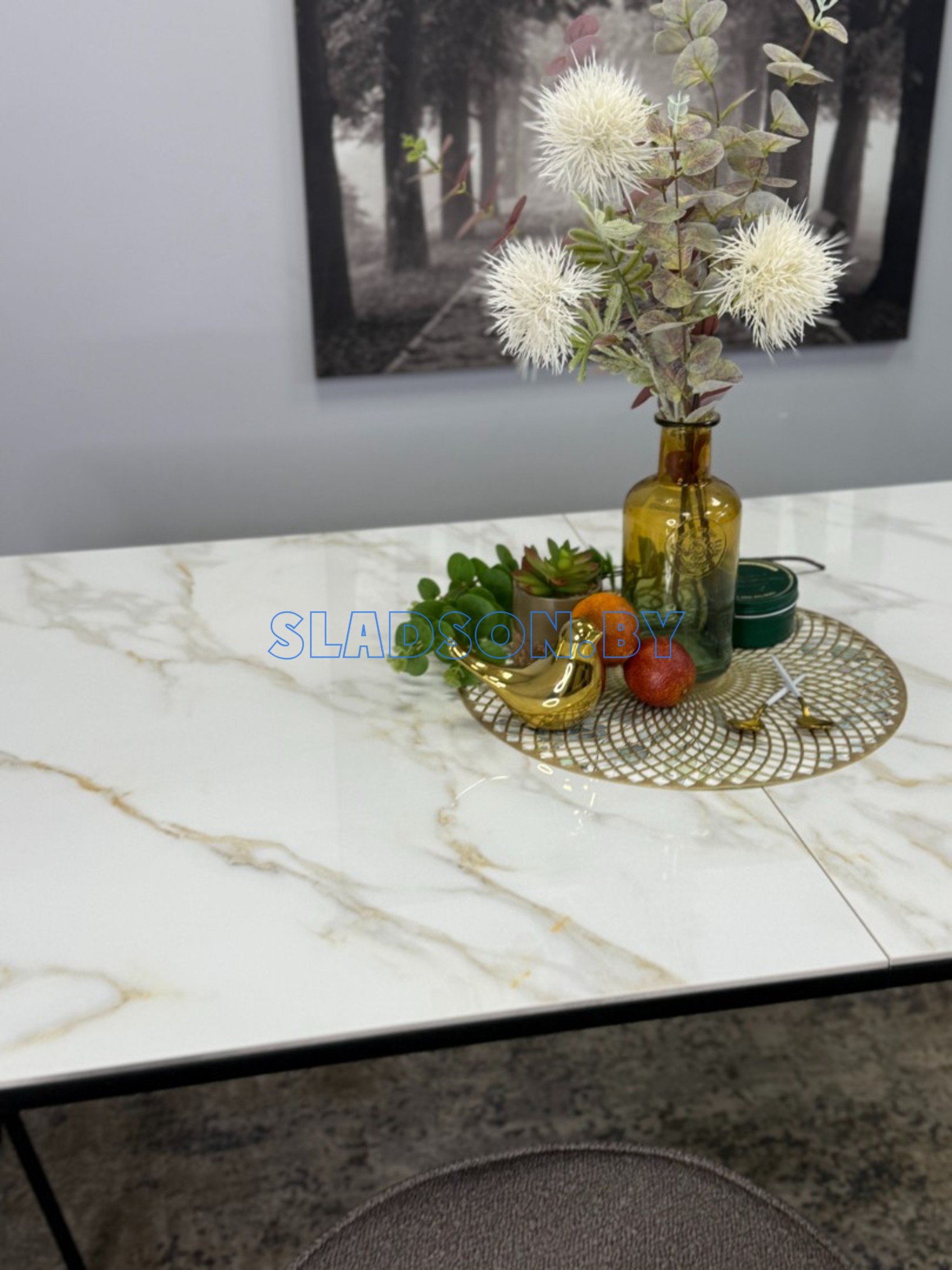Стол с керамической столешницей и красивыми, функциональными опорами. Керамических столов такого размера очень мало, а размер 140*80 см оптимален для кухни до 13 кв. м. Система раскладки увеличивает стол еще на 40 см благодаря синхронному механизму раздвижения и прогрессивного механизму вставки "бабочка". Вставка с керамикой очень тяжелая и требует специального механизма, предназначенного для керамики. Стол сможет разложить даже ребенок.
