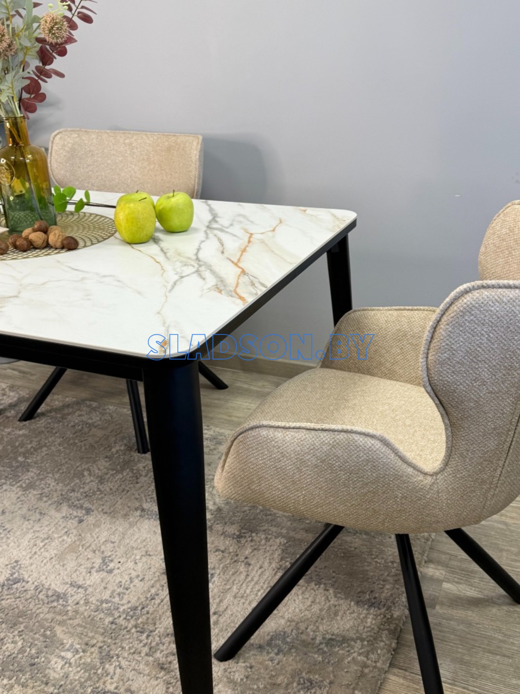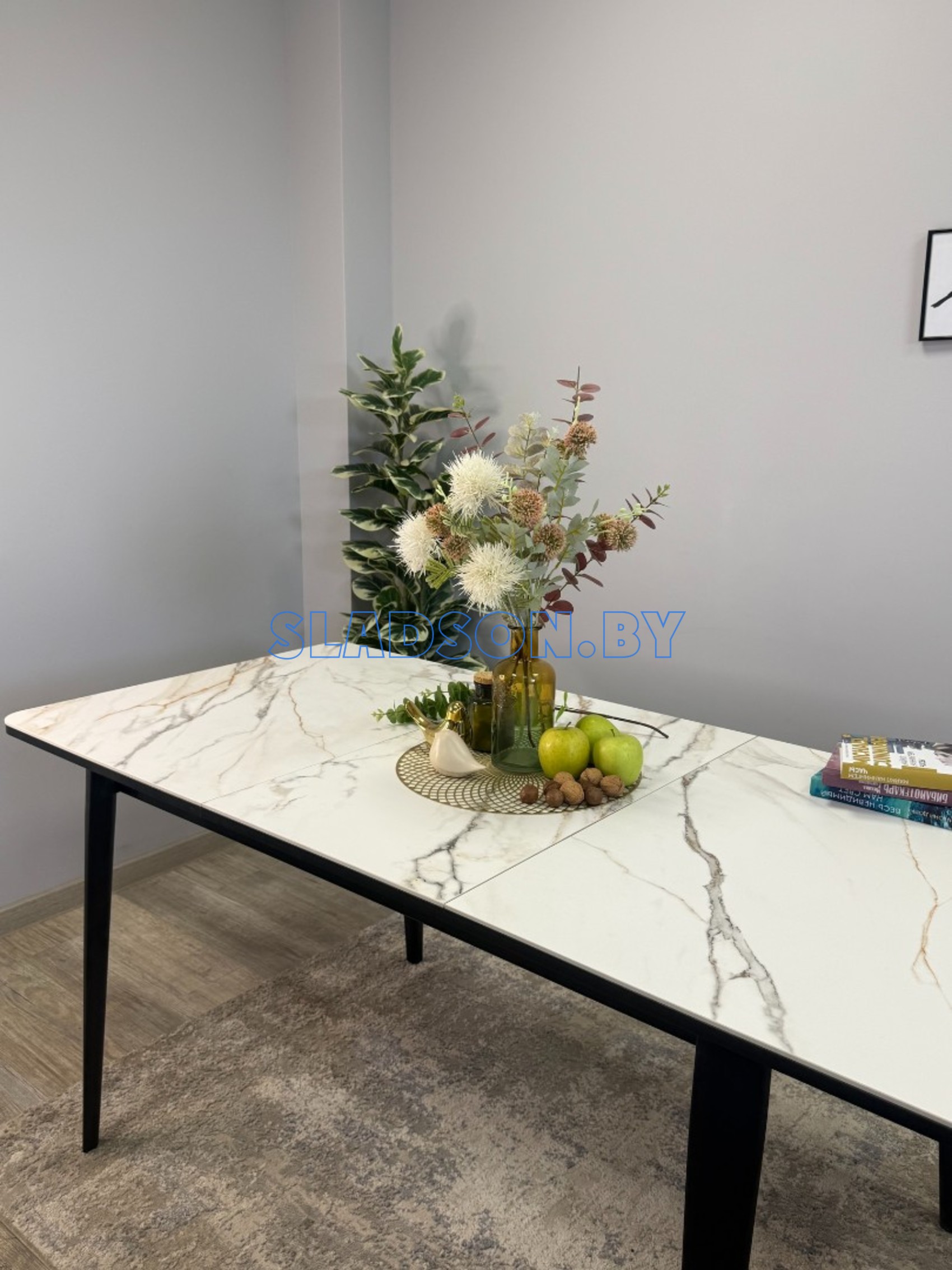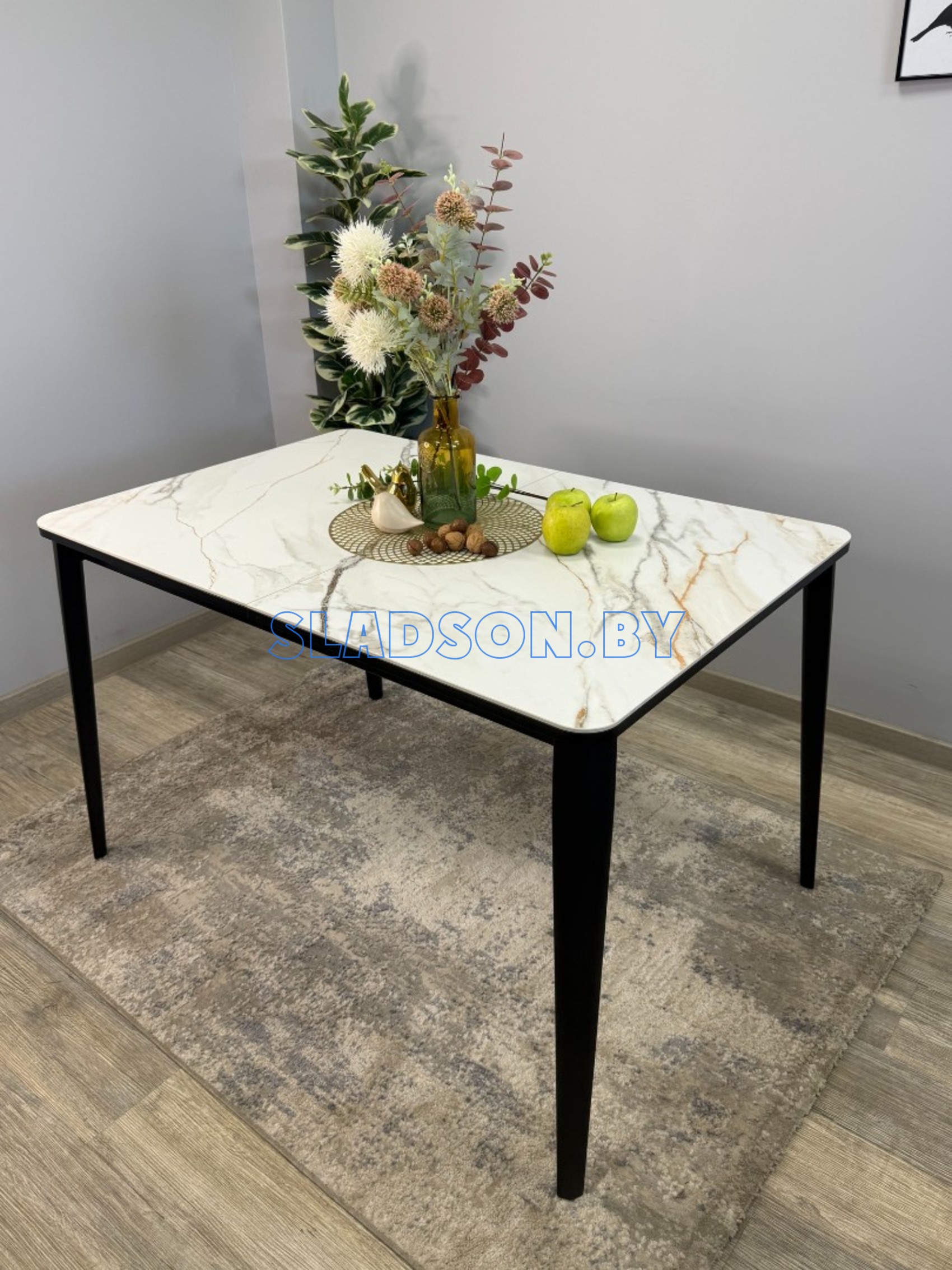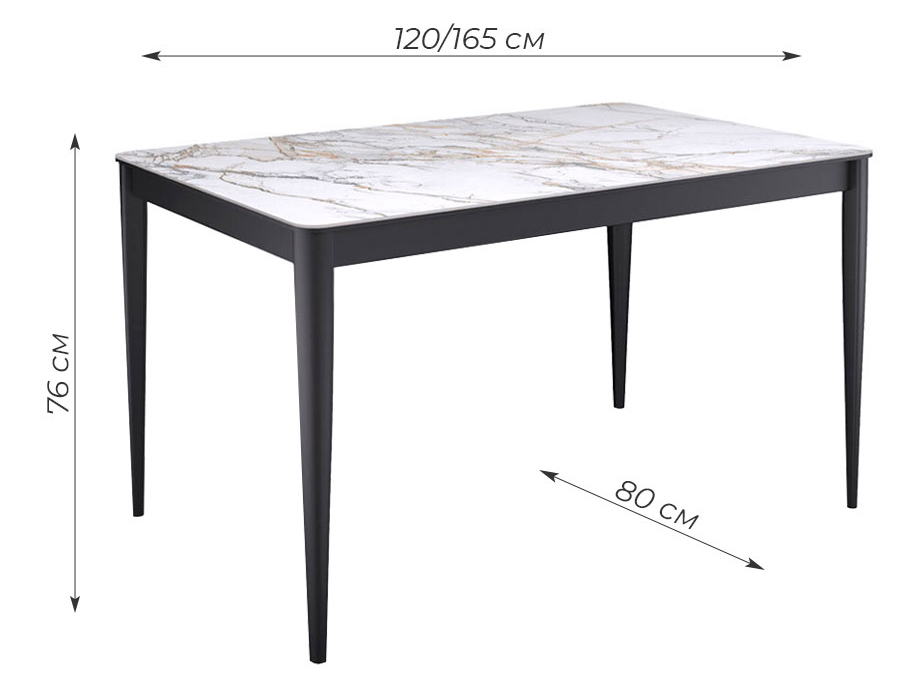 Стол с керамической столешницей и красивыми, функциональными опорами. Керамических столов такого размера очень мало, а размер 120*80 см оптимален для кухни до 13 кв. м. Система раскладки увеличивает стол еще на 45 см благодаря синхронному механизму раздвижения и прогрессивного механизму вставки "дельфин". Вставка с керамикой очень тяжелая и требует специального механизма, предназначенного для керамики. Стол сможет разложить даже ребенок