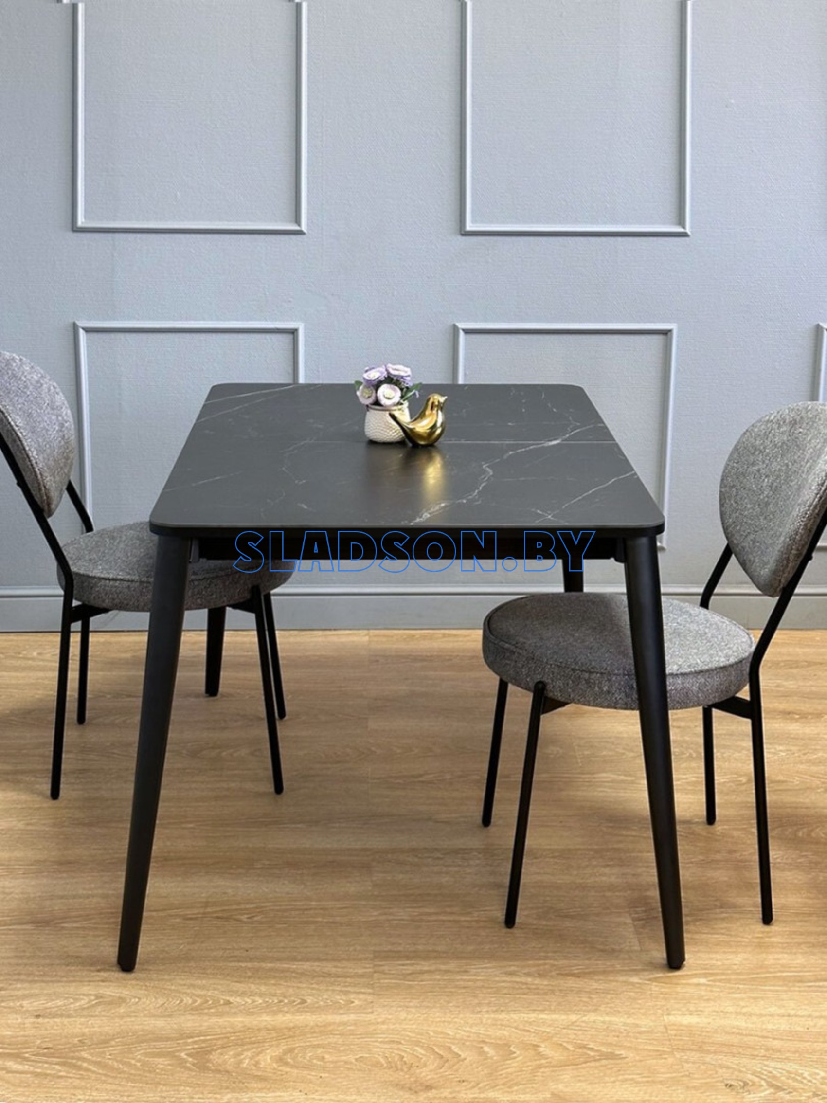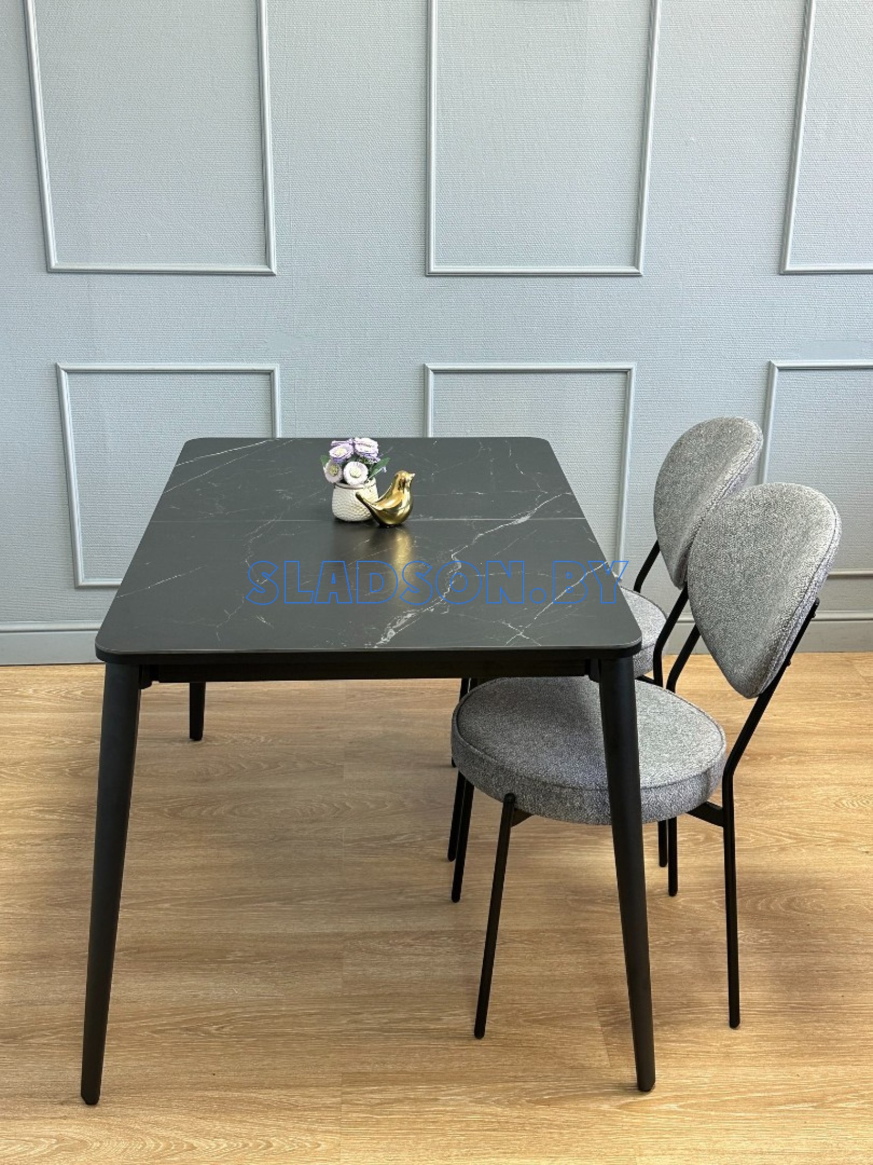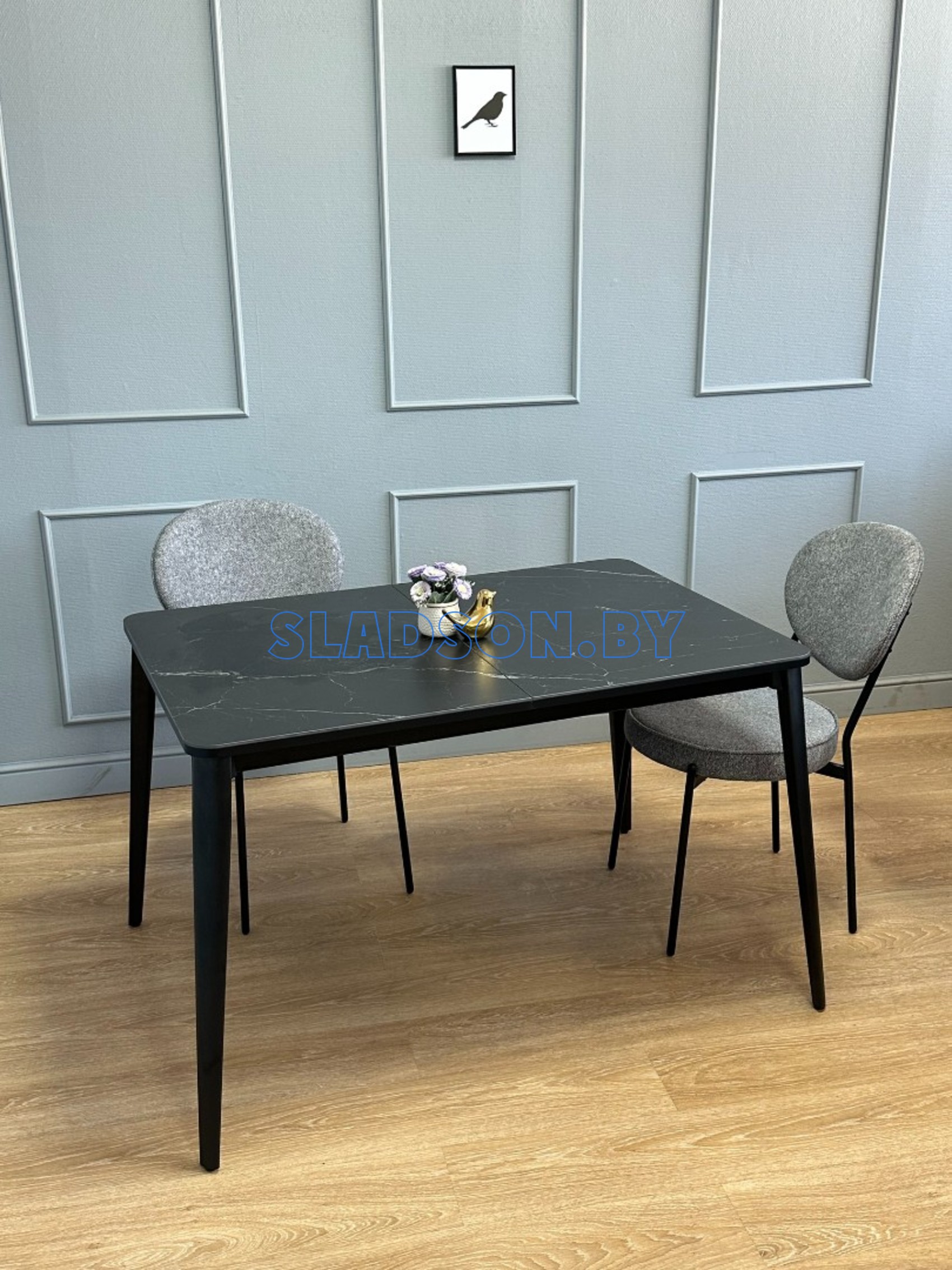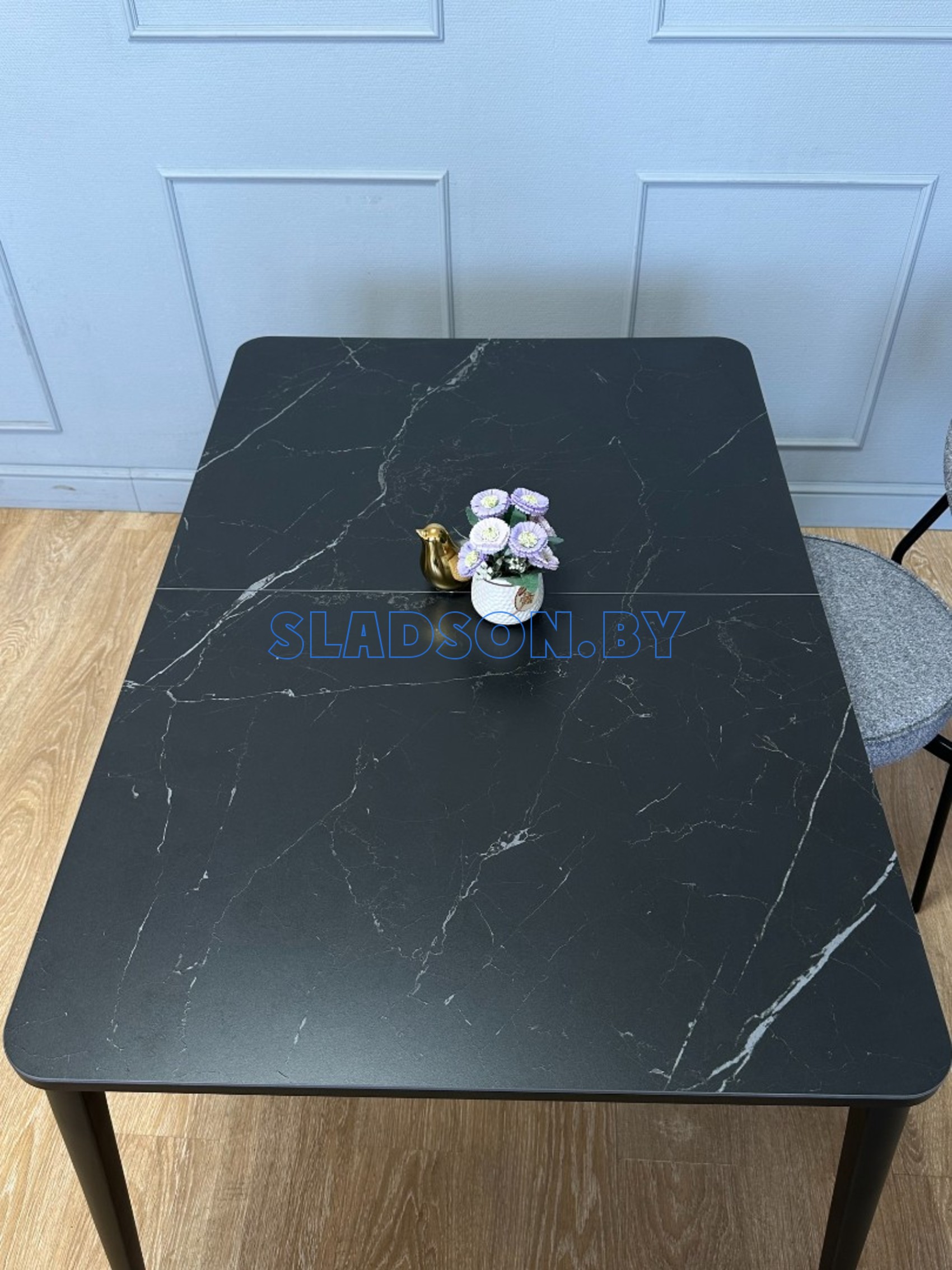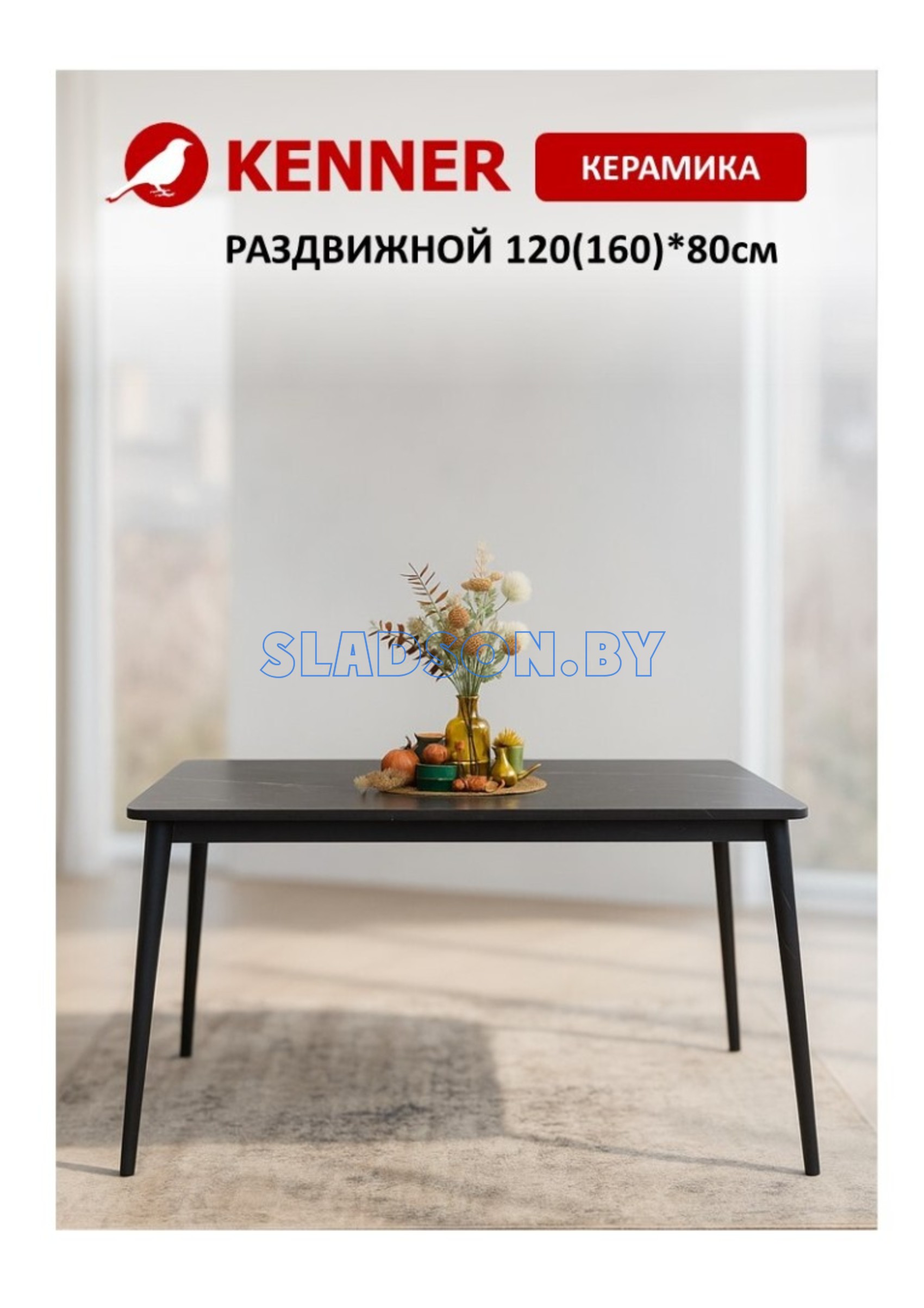 Стол с керамической столешницей и красивыми, функциональными опорами. Керамических столов такого размера очень мало, а размер 120*80 см оптимален для кухни до 13 кв. м. Система раскладки увеличивает стол еще на 45 см благодаря синхронному механизму раздвижения и прогрессивного механизму вставки "дельфин". Вставка с керамикой очень тяжелая и требует специального механизма, предназначенного для керамики. Стол сможет разложить даже ребенок