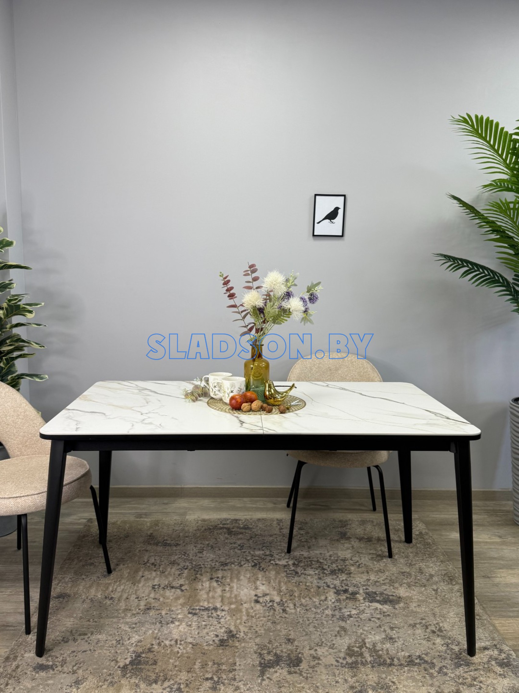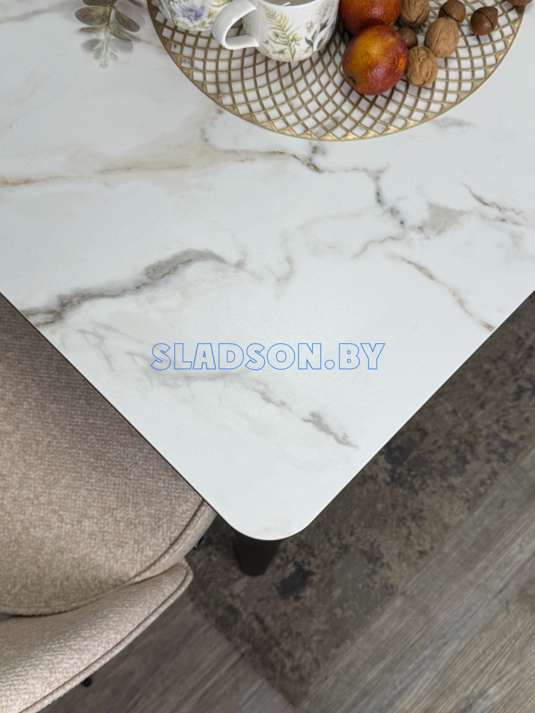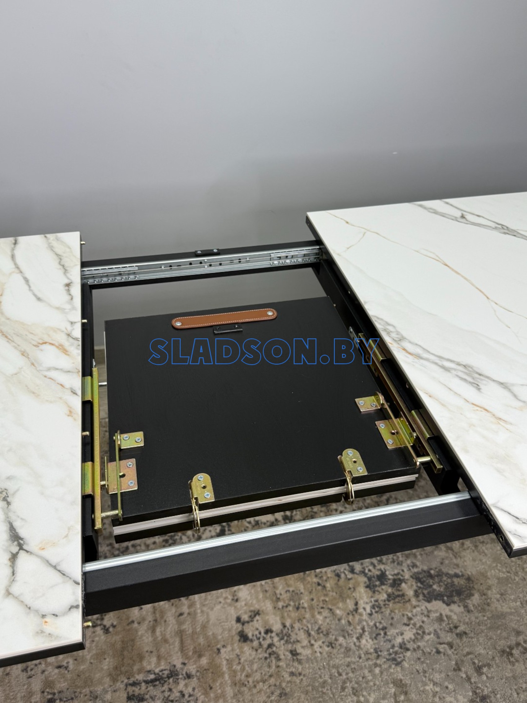 Стол с керамической столешницей и красивыми, функциональными опорами. Керамических столов такого размера очень мало, а размер 140*80 см оптимален для кухни до 13 кв. м. Система раскладки увеличивает стол еще на 40 см благодаря синхронному механизму раздвижения и прогрессивного механизму вставки "бабочка". Вставка с керамикой очень тяжелая и требует специального механизма, предназначенного для керамики. Стол сможет разложить даже ребенок.