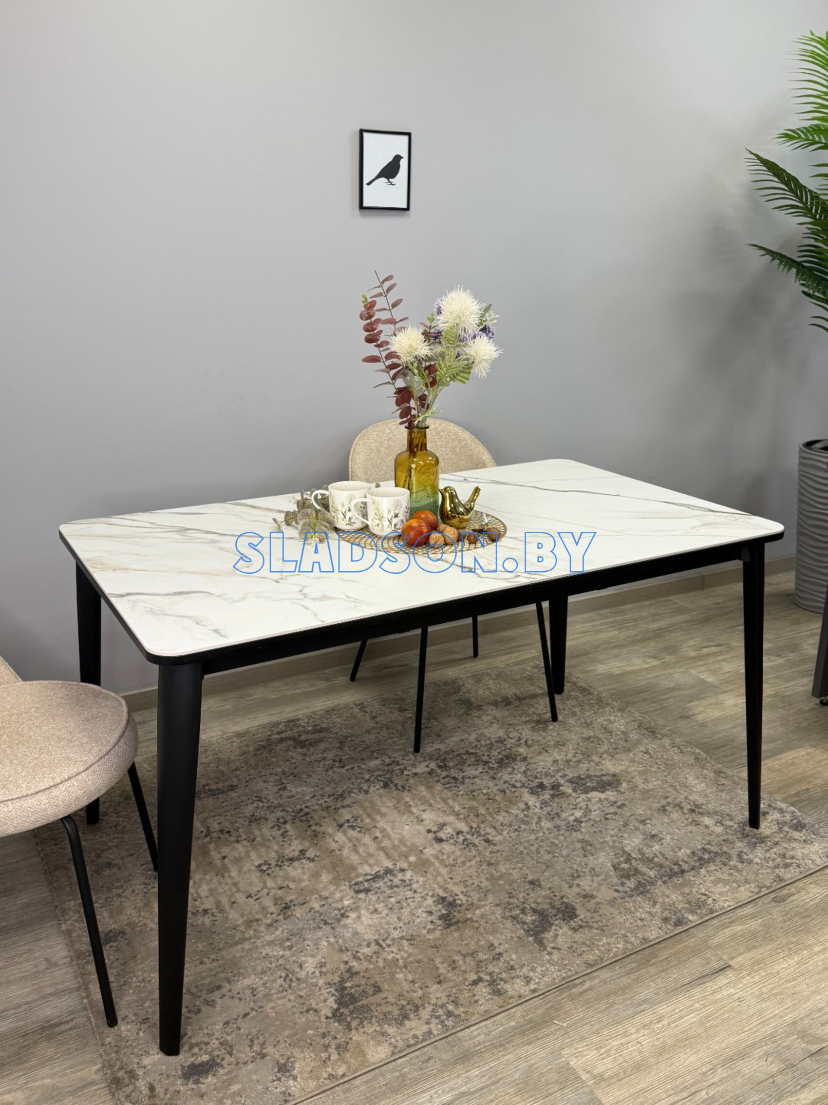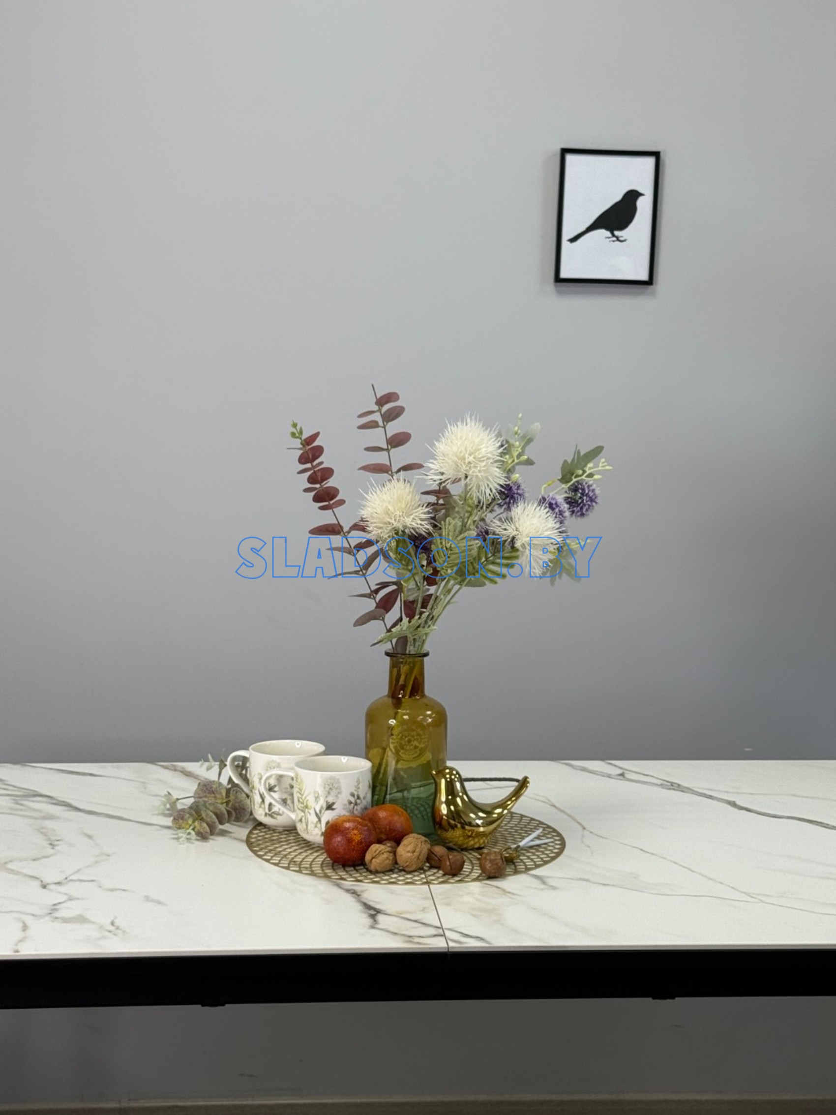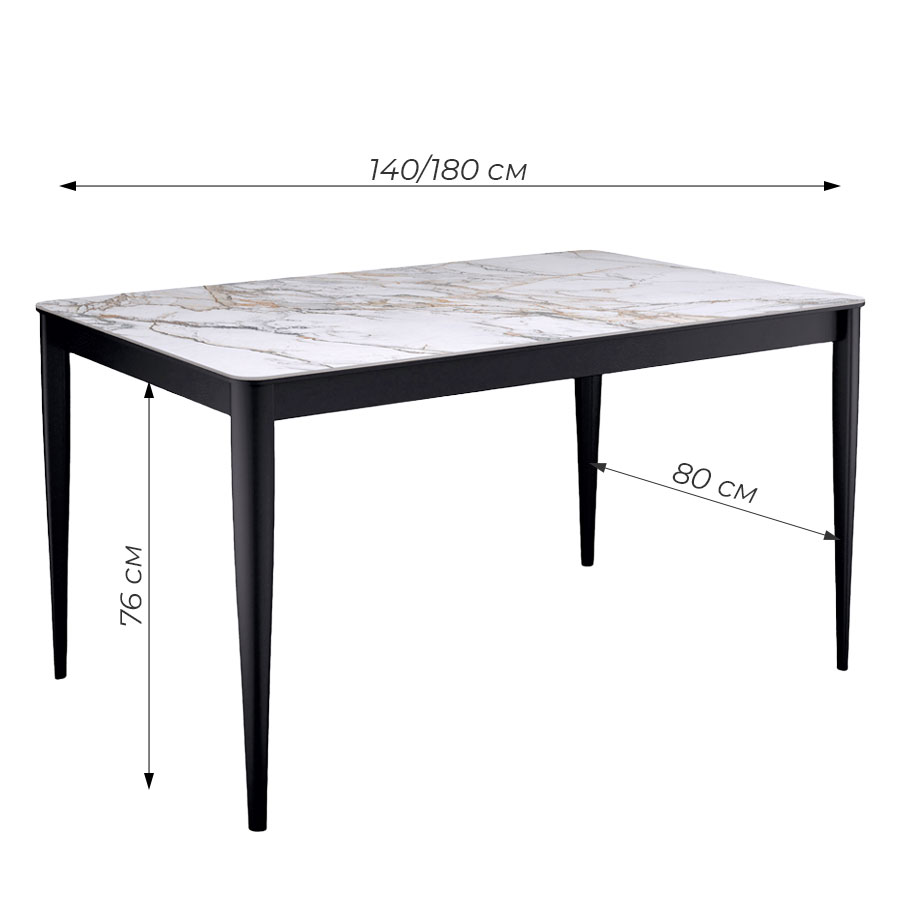 Стол с керамической столешницей и красивыми, функциональными опорами. Керамических столов такого размера очень мало, а размер 140*80 см оптимален для кухни до 13 кв. м. Система раскладки увеличивает стол еще на 40 см благодаря синхронному механизму раздвижения и прогрессивного механизму вставки "бабочка". Вставка с керамикой очень тяжелая и требует специального механизма, предназначенного для керамики. Стол сможет разложить даже ребенок.