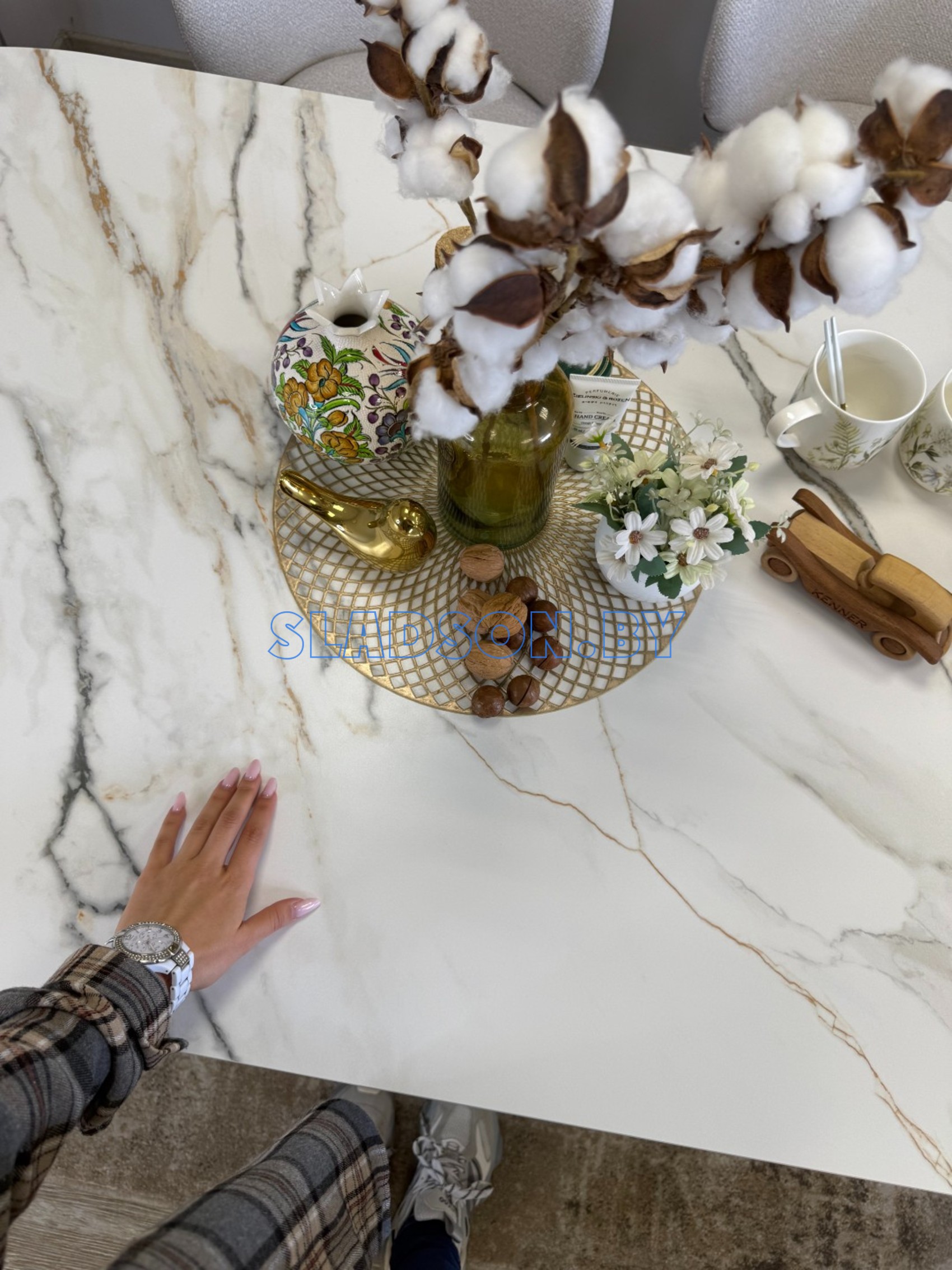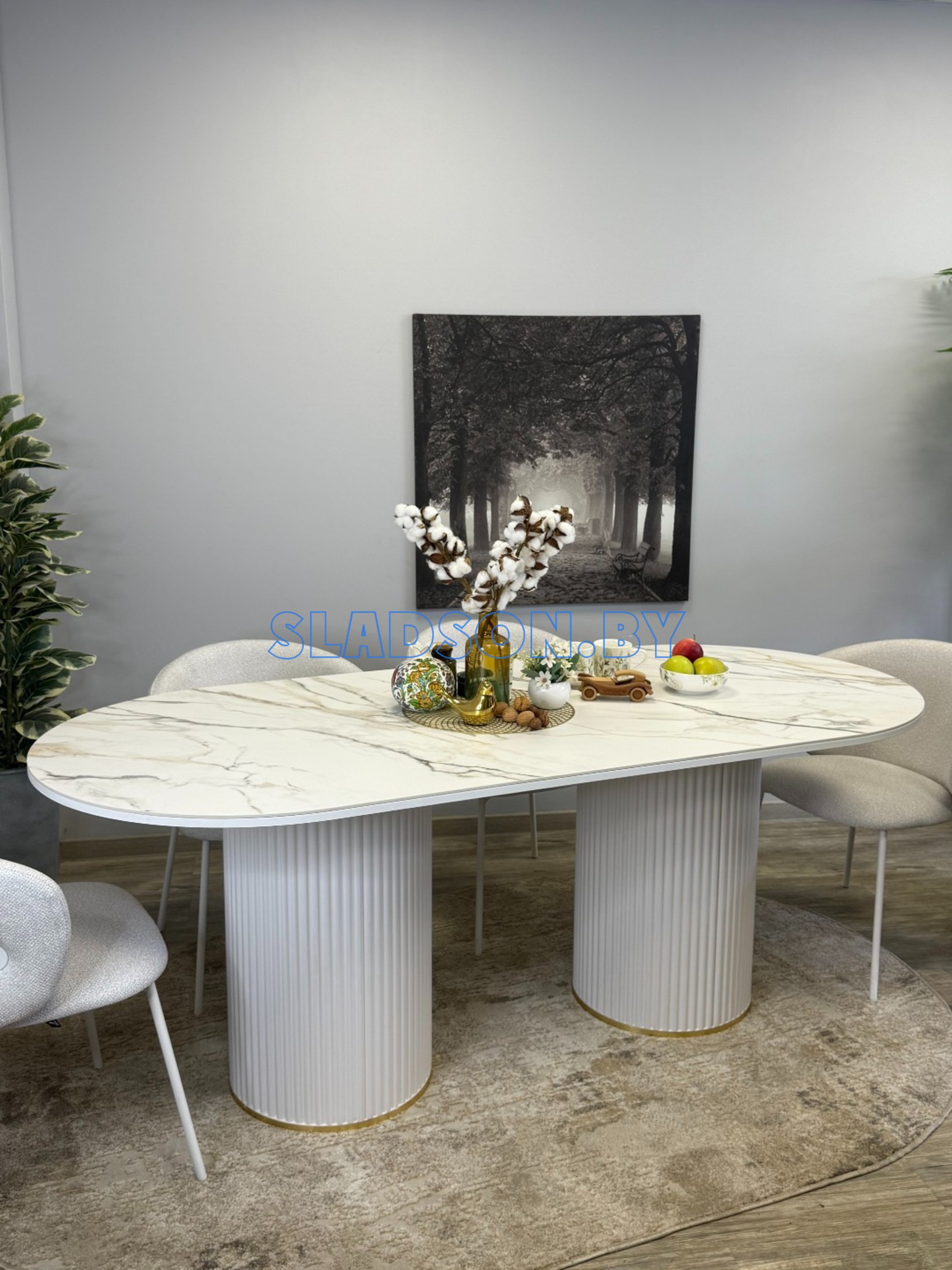 Стол Kenner LD2000 белый/керамика мрамор золотой GILT WHITE