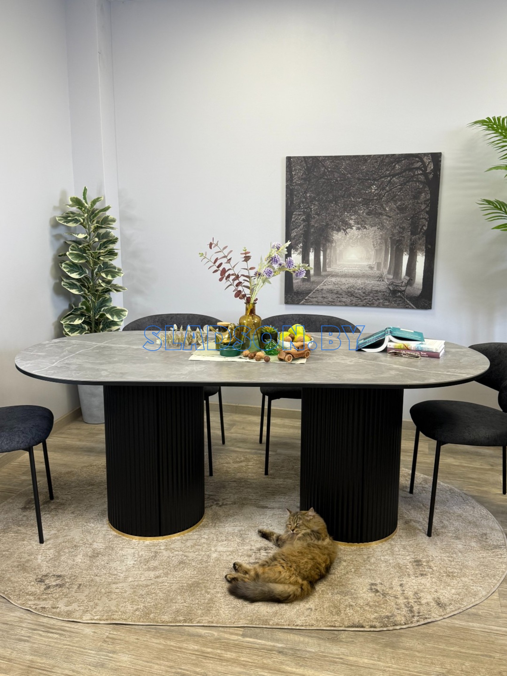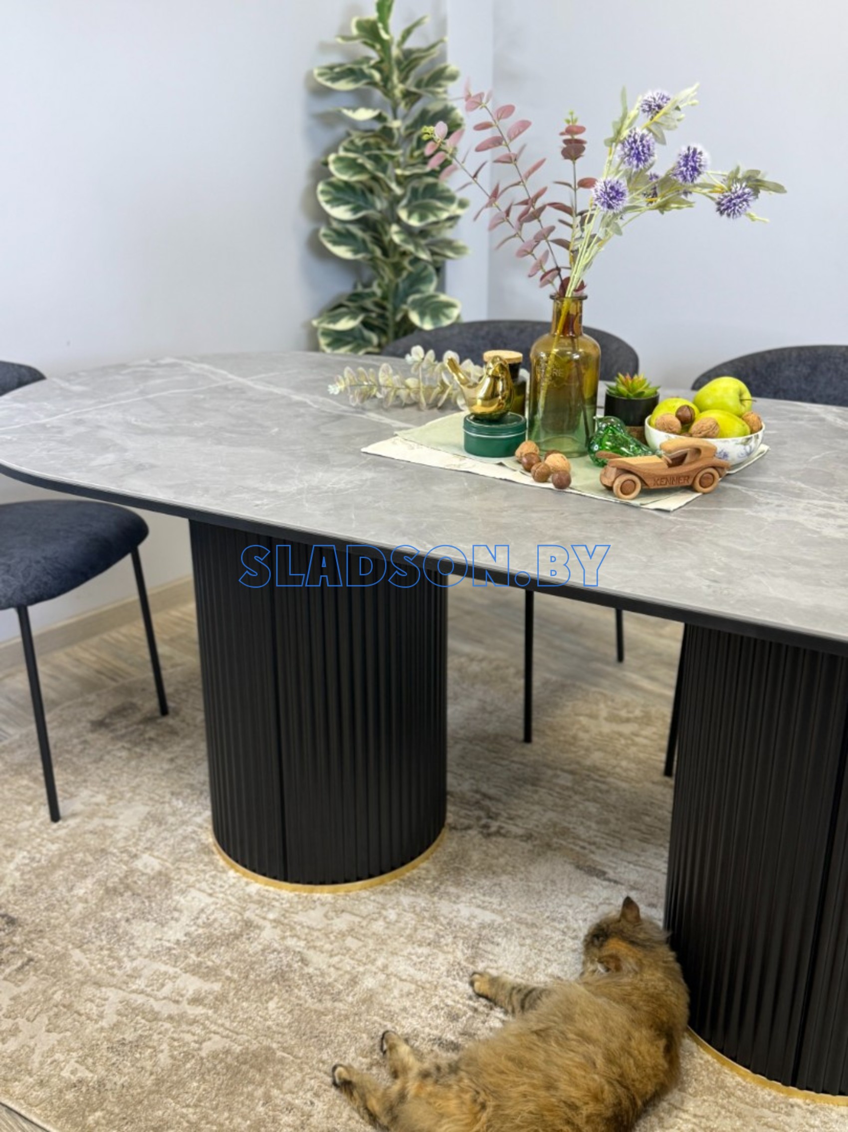 Элегантный стол без механизма трансформации. Отличается высокой устойчивостью и прекрасно сочетается с модными кухнями. Обеспечивает достаточно пространства для ног. Роскошная блестящая керамическая поверхность.