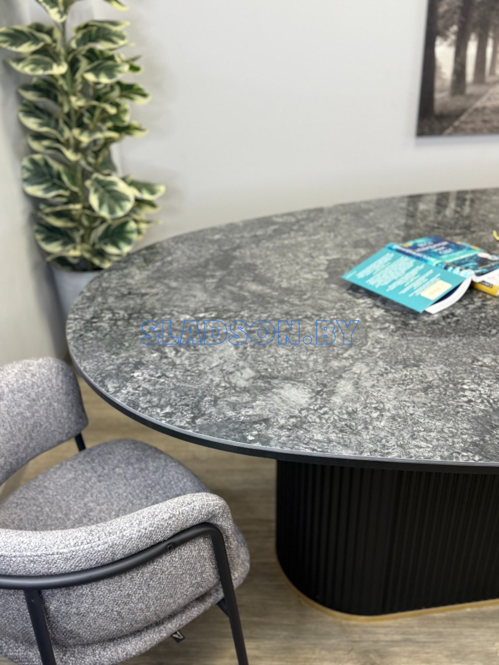 Элегантный стол без механизма трансформации. Отличается высокой устойчивостью и прекрасно сочетается с модными кухнями. Обеспечивает достаточно пространства для ног. Роскошная блестящая керамическая поверхность.