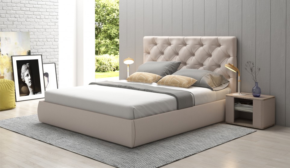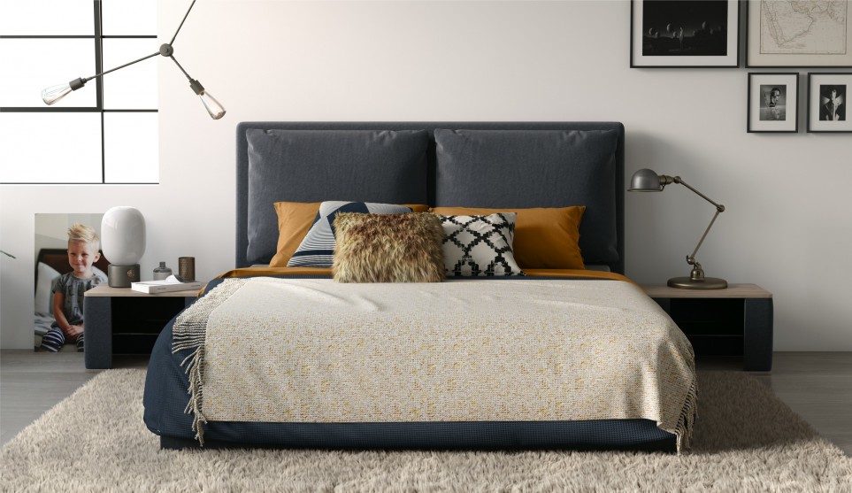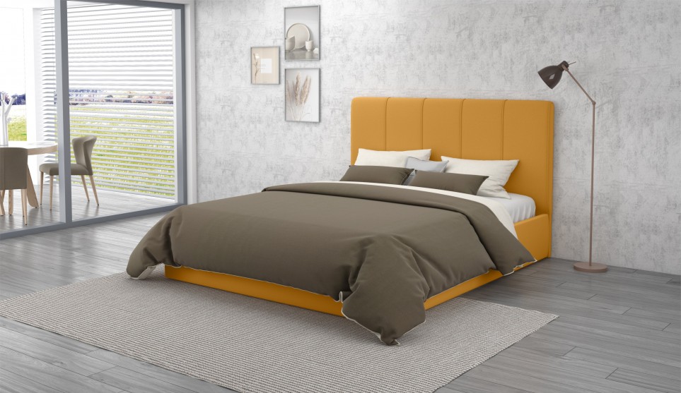 Современная удобная и эргономичная кровать с высоким мягким изголовьем, декорированным вертикальными кантами, создает в спальне комфортную и уютную атмосферу. Практичная мягкая ворсистая поверхность обивки ярких цветов, вызывающая приятные тактильные ощущения, идеально точно повторяет силуэт конструкции кровати, украшает и облагораживает спальню. Вместительный бельевой ящик увеличит полезную площадь спальни и станет дополнительным местом для хранения необходимых вещей.